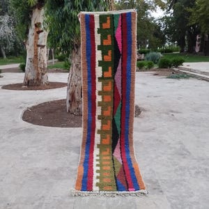 Handmade Wool Berber Runner Rug: Moroccan Geometric Style