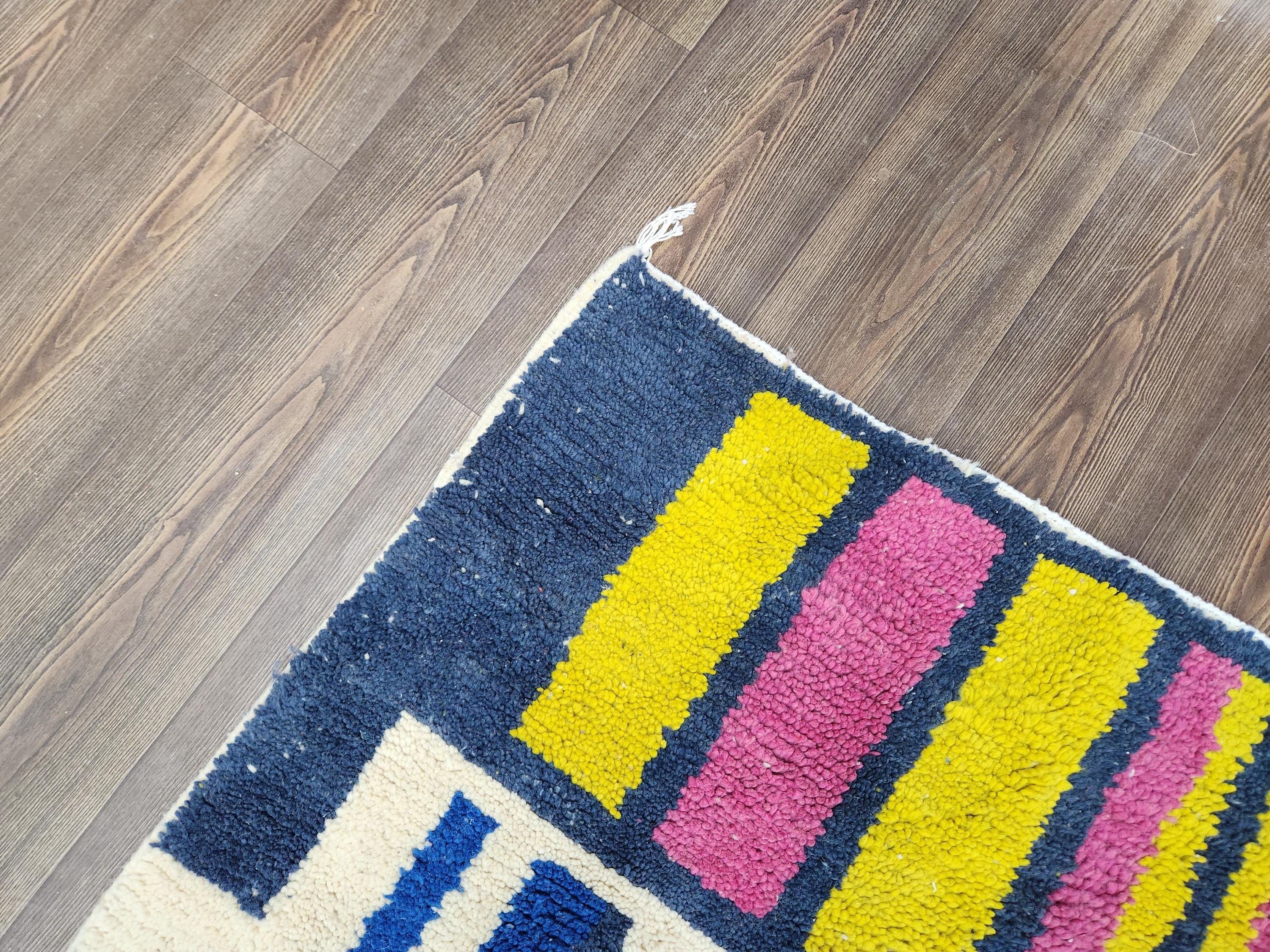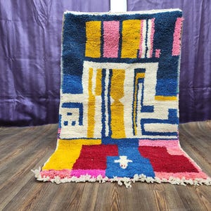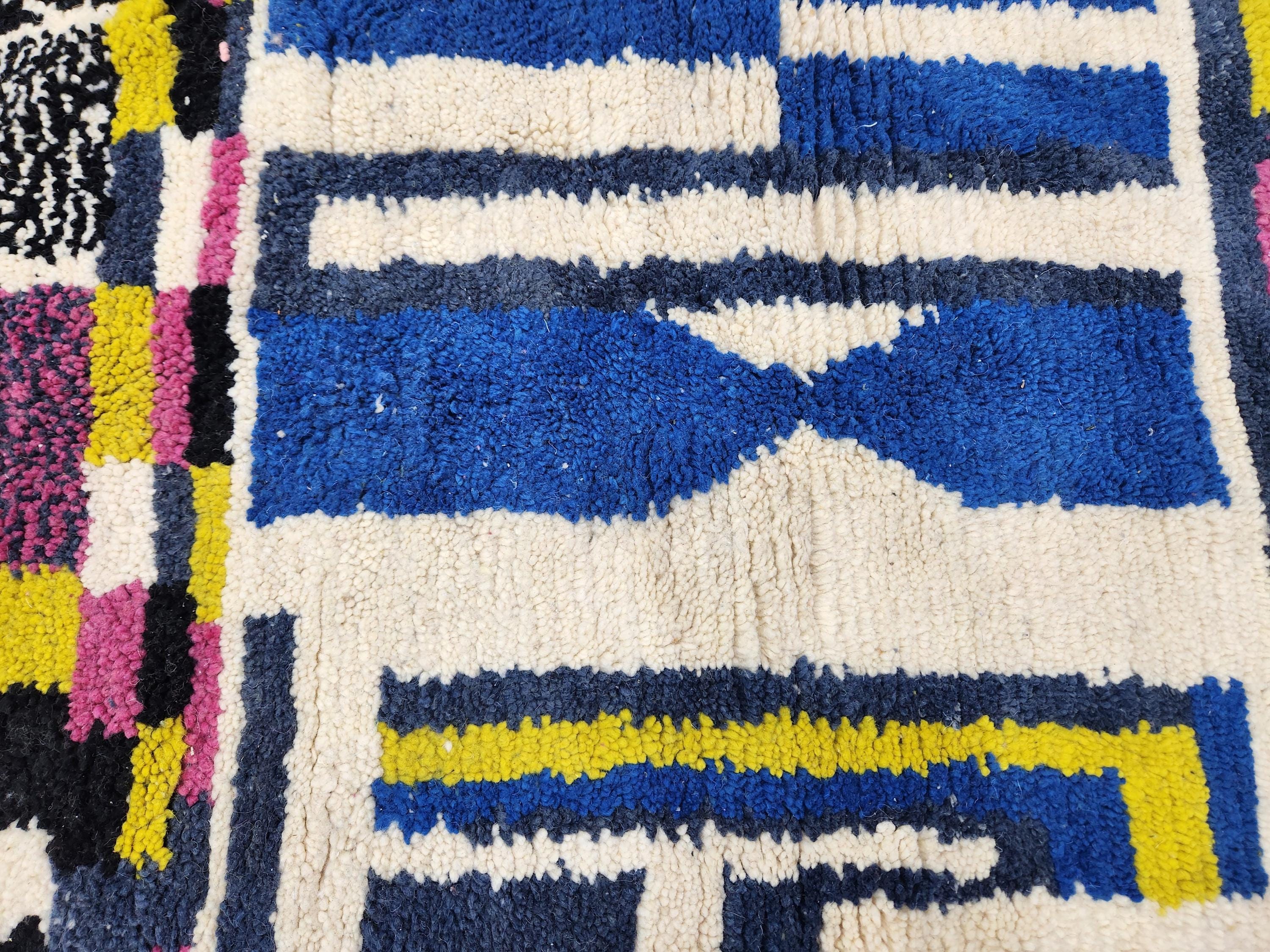 handmade moderen abstract rug,colorful geometric decor,unque blue and yellow wool carpet, contomporary floor art