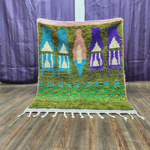 This abstract moroccan rug, available as a moroccan rug 9x12, adds a sophisticated touch to any space. The green moroccan rug tones bring a refreshing, modern vibe and fit perfectly with boho area rug trends and moroccan decor styles. Its handmade craftsmanship ensures both durability and easy maintenance, making it an excellent choice for high-traffic zones.