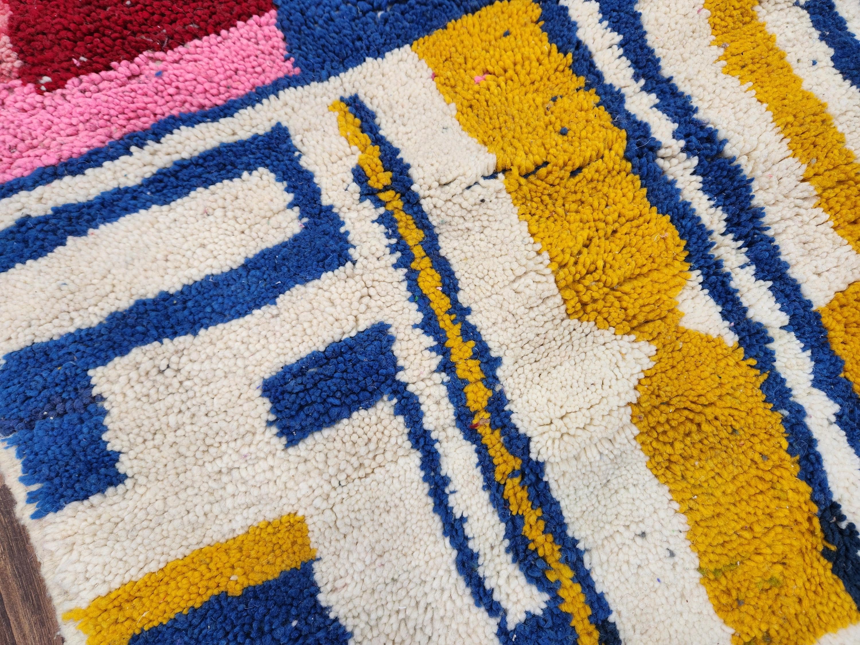 🧵 Completely handmade rug for true artisan quality ✨ Rich patterns and full color rugs for visual interest 🌈 Mixed color rug design brings warmth and character 🏡 Works as a moroccan area rug or boho rug for versatile rug decor berry ave style 🎨 Custom aera rugs available to match your unique taste 🧺 Easy to care for and made for everyday life 🖐️ One-of-a-kind with slight variations that make every rug special 🧶 Soft, shag-style texture for comfort underfoot 🌱 Natural wool material with beautiful eco-friendly dye