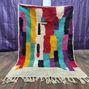 A tapis azilal rug is a Moroccan Berber tradition, known for its vibrant patterns and unique color full rugs style. Each amazing rug is crafted using soft maroccan wool, completely handmade as a tapis noué à la main. These off white rug designs often feature bold, geometric patterns, carpet with symbols, and even checkered rug berber accents. The pink boujad rugs stand out thanks to their distinct shades, adding an instant boho vibe to any living room, bedroom, office, or entryway.