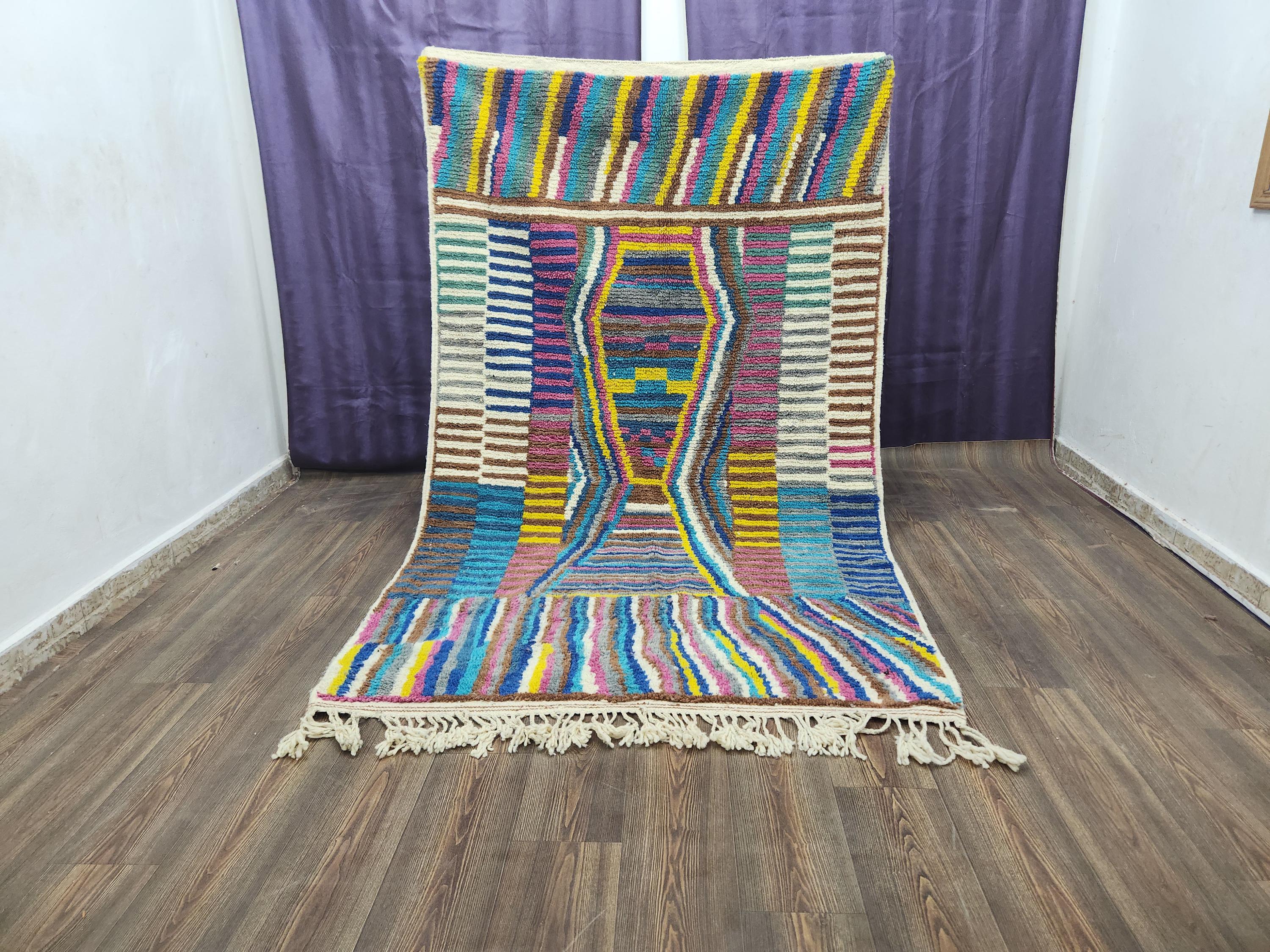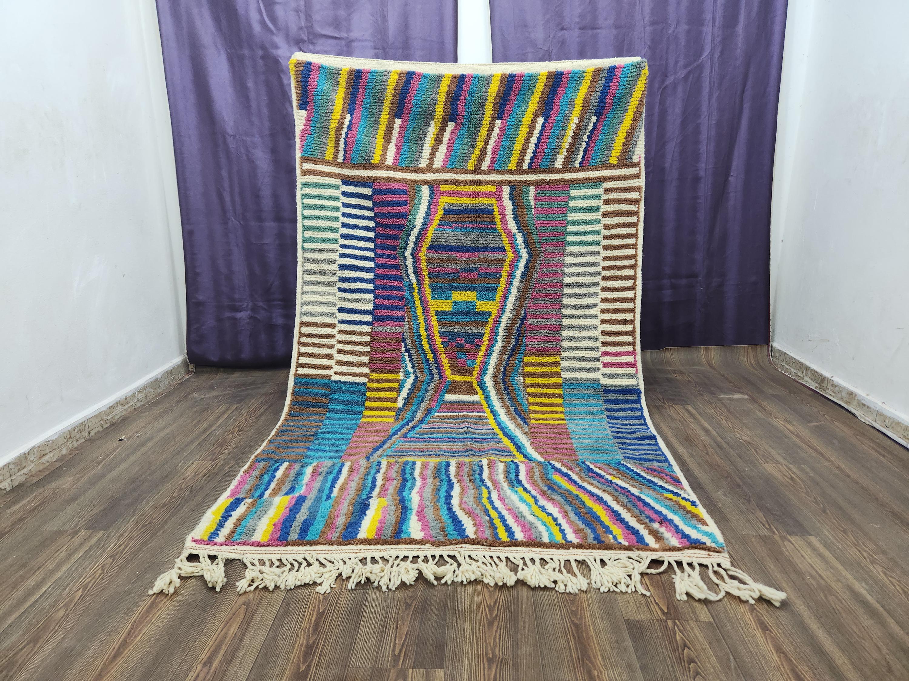 A Moroccan Berber colorful rug is a beautiful example of traditional handwovan rugs from the indigenous Berber people of Morocco. This amazigh rug is known for its intricate patterns and bold, geometric designs, created using natural dyes and high-quality wool. Whether you gravitate toward a contemporary japandi rug style or want to add a bohemian touch, you’ll enjoy how this morrocan rug 8x10 can work as a statement piece or an accent in any space.