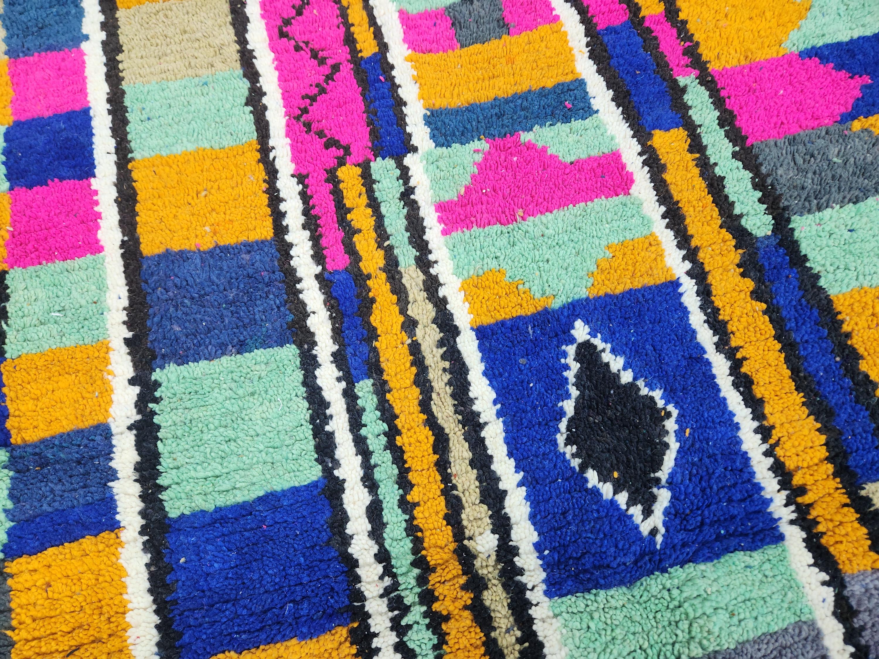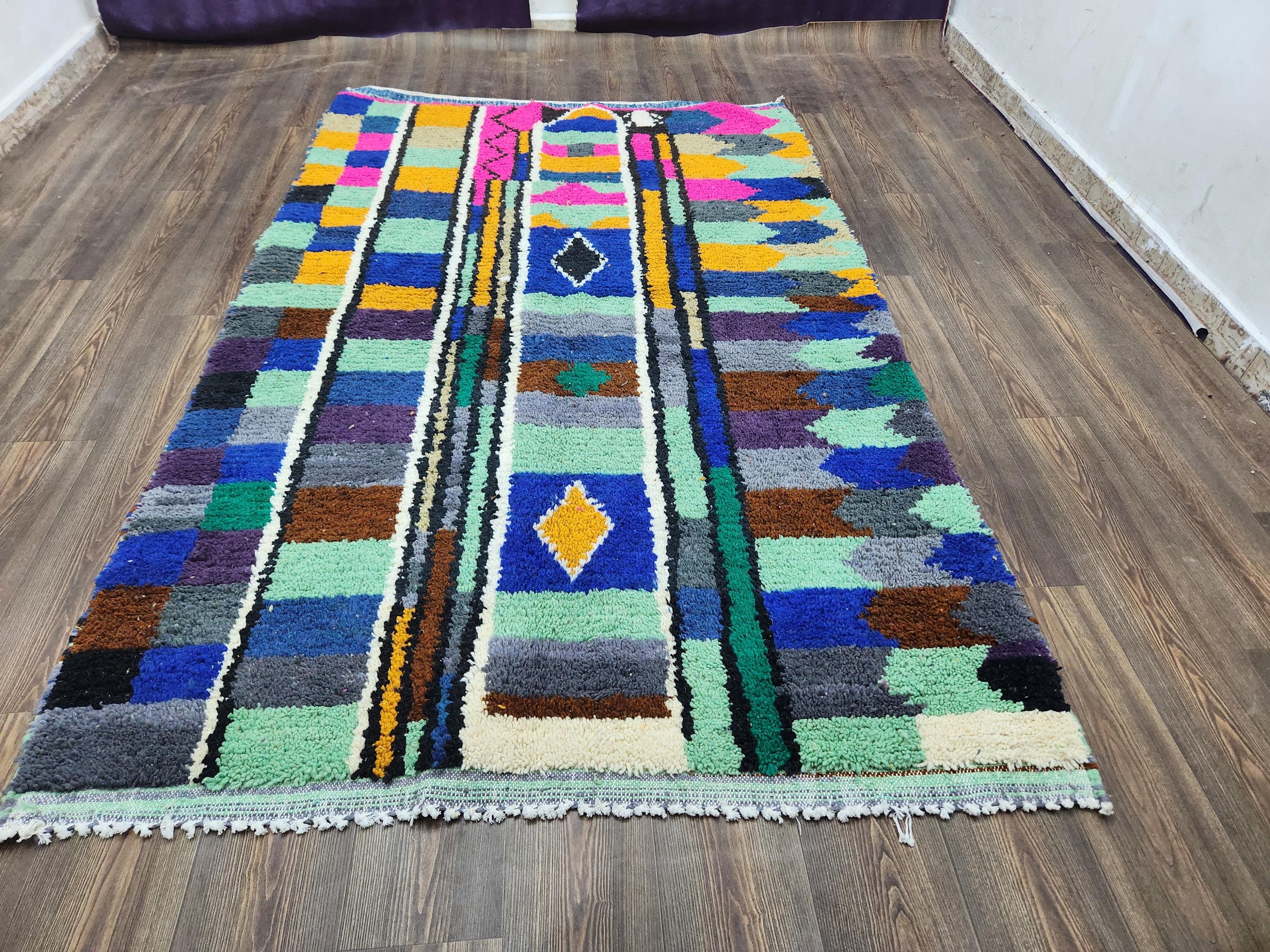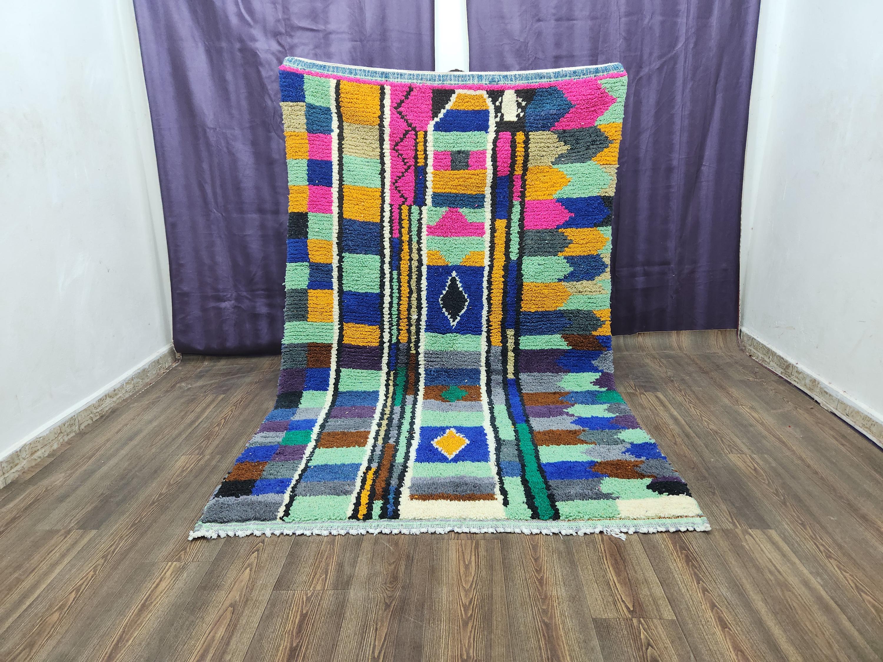 A Moroccan Berber colorful rug from rugaziz is a timeless piece of living room decor, handcrafted with intricate patterns inspired by the Berber people of Morocco. These rugs stand out for their bold geometries, natural dyes, and high-quality wool construction, making them a focal point in your home and living space. The boujad rugs add warmth and bohemian style, easily coordinating with modern wall clock designs or other wall decor accents like wall art. You can use your rug in several ways, from anchoring a living room to complementing hardware or handles in an entryway, or even beneath a door handle for a touch of traditional handmade comfort.
