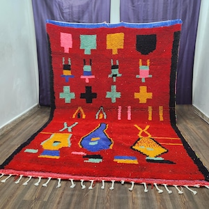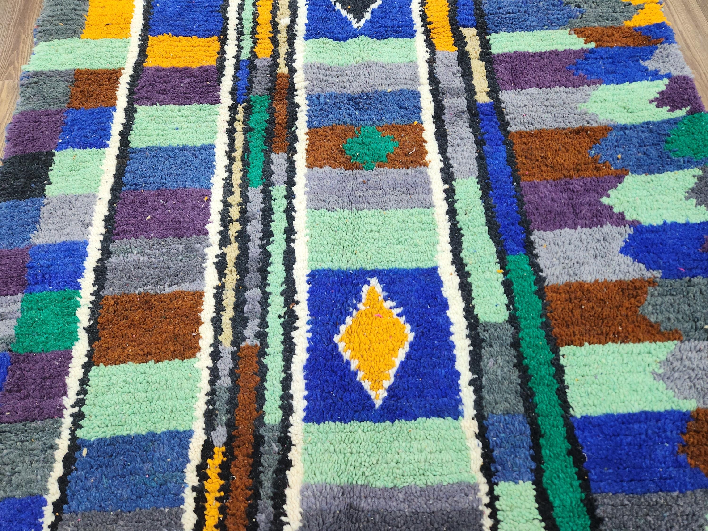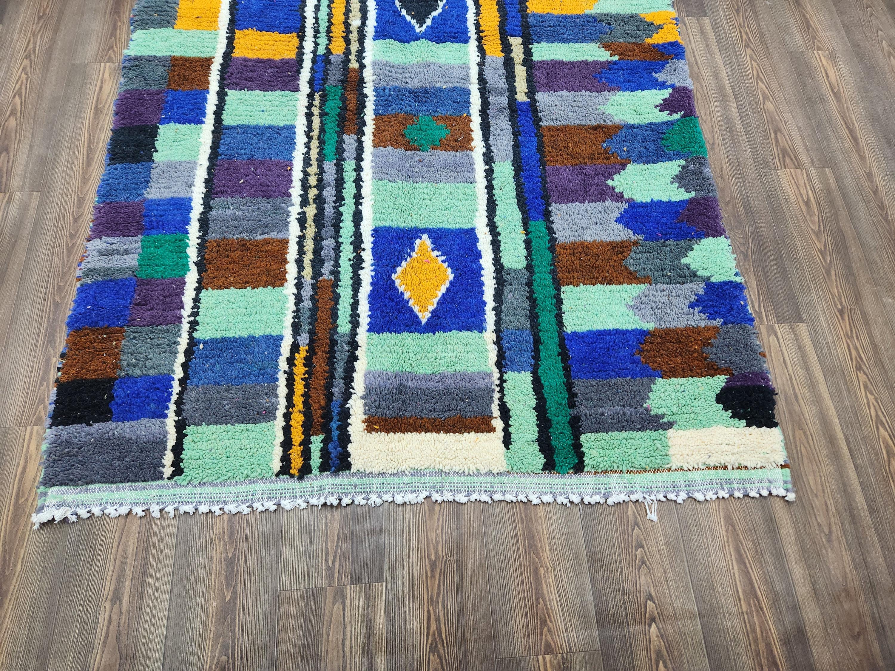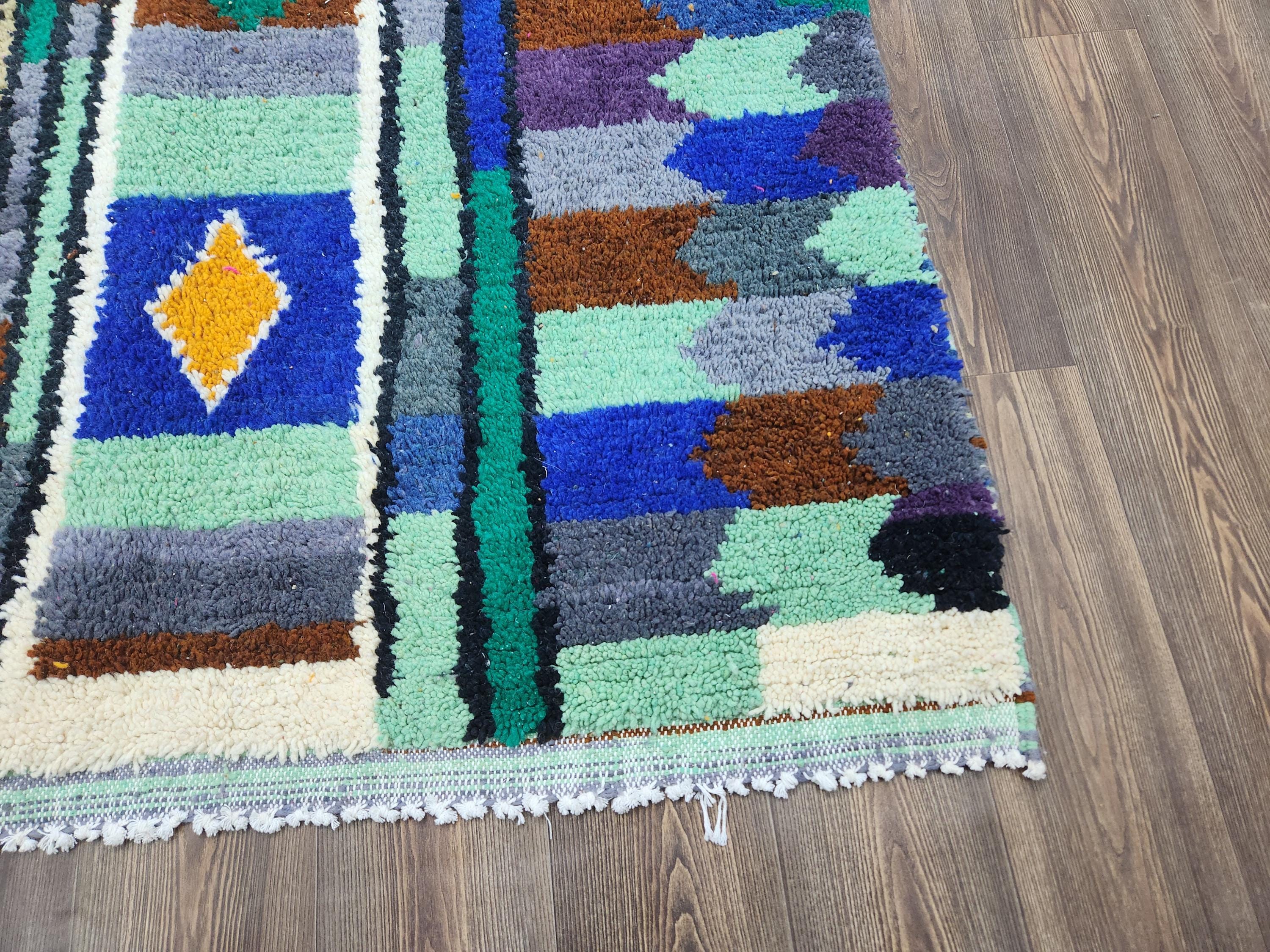 A Moroccan Berber colorful rug from rugaziz is a timeless piece of living room decor, handcrafted with intricate patterns inspired by the Berber people of Morocco. These rugs stand out for their bold geometries, natural dyes, and high-quality wool construction, making them a focal point in your home and living space. The boujad rugs add warmth and bohemian style, easily coordinating with modern wall clock designs or other wall decor accents like wall art. You can use your rug in several ways, from anchoring a living room to complementing hardware or handles in an entryway, or even beneath a door handle for a touch of traditional handmade comfort.