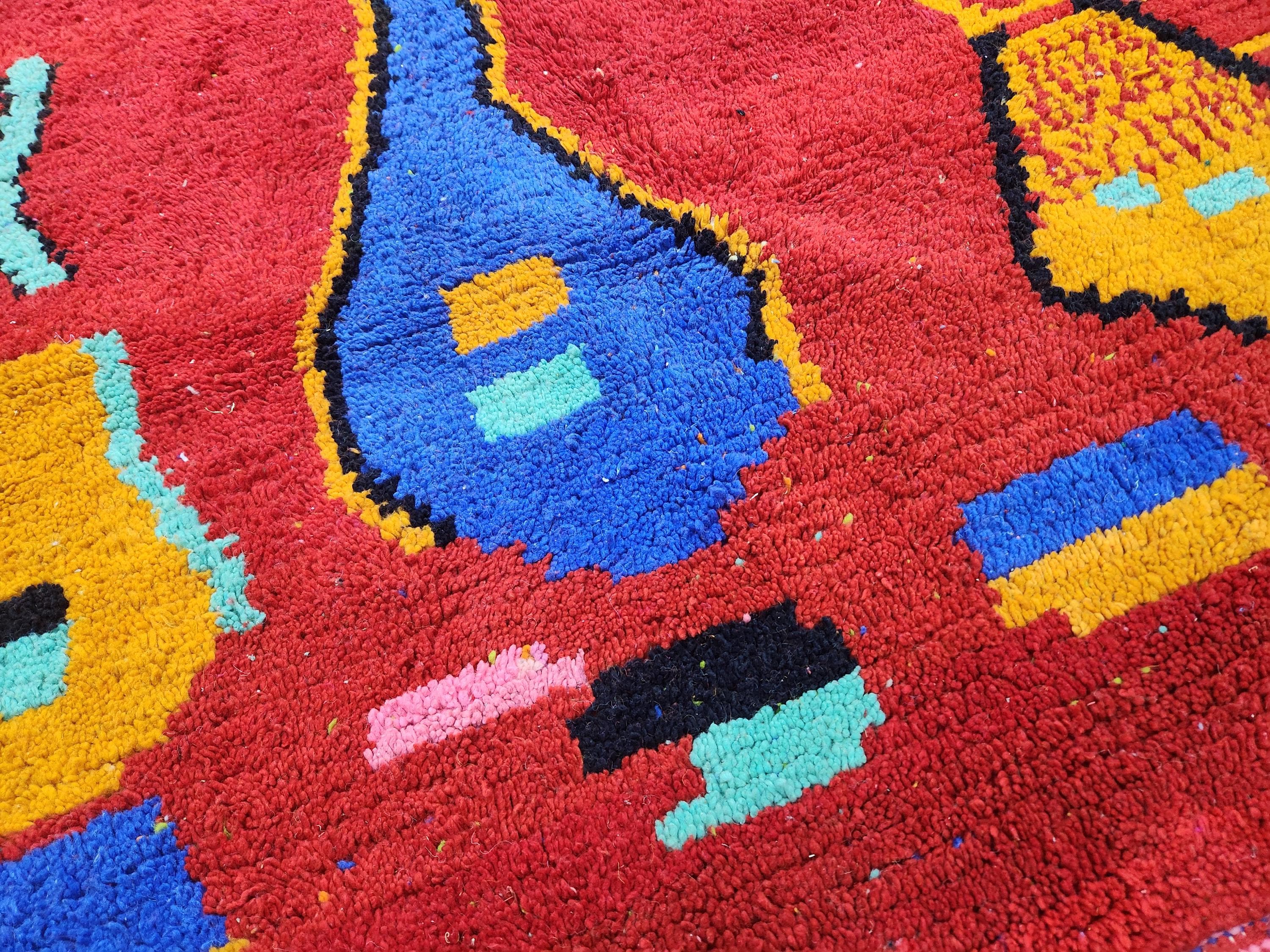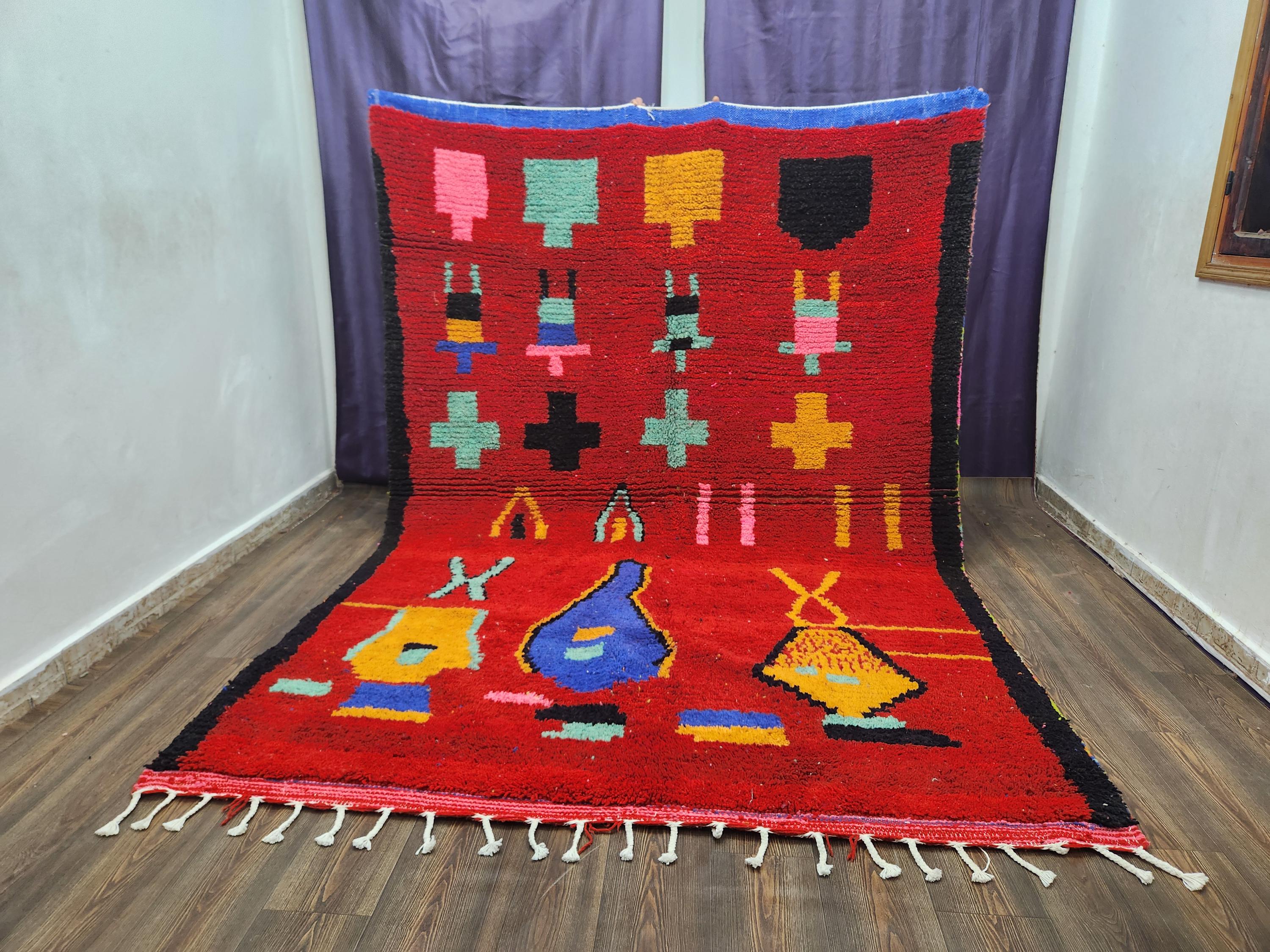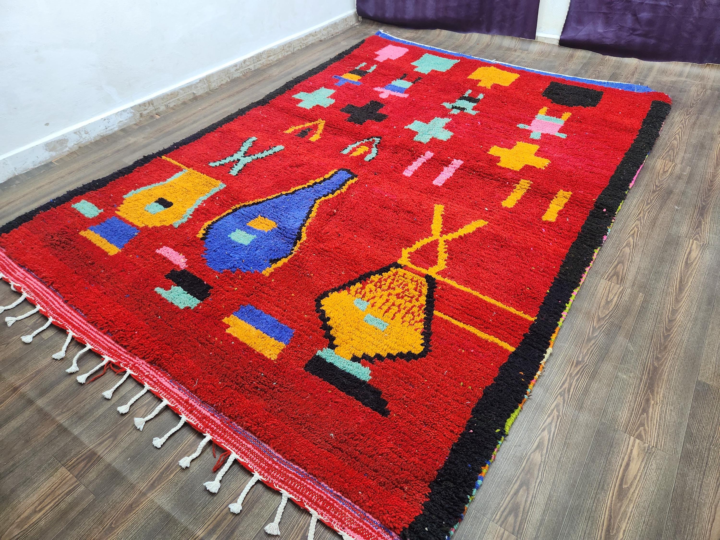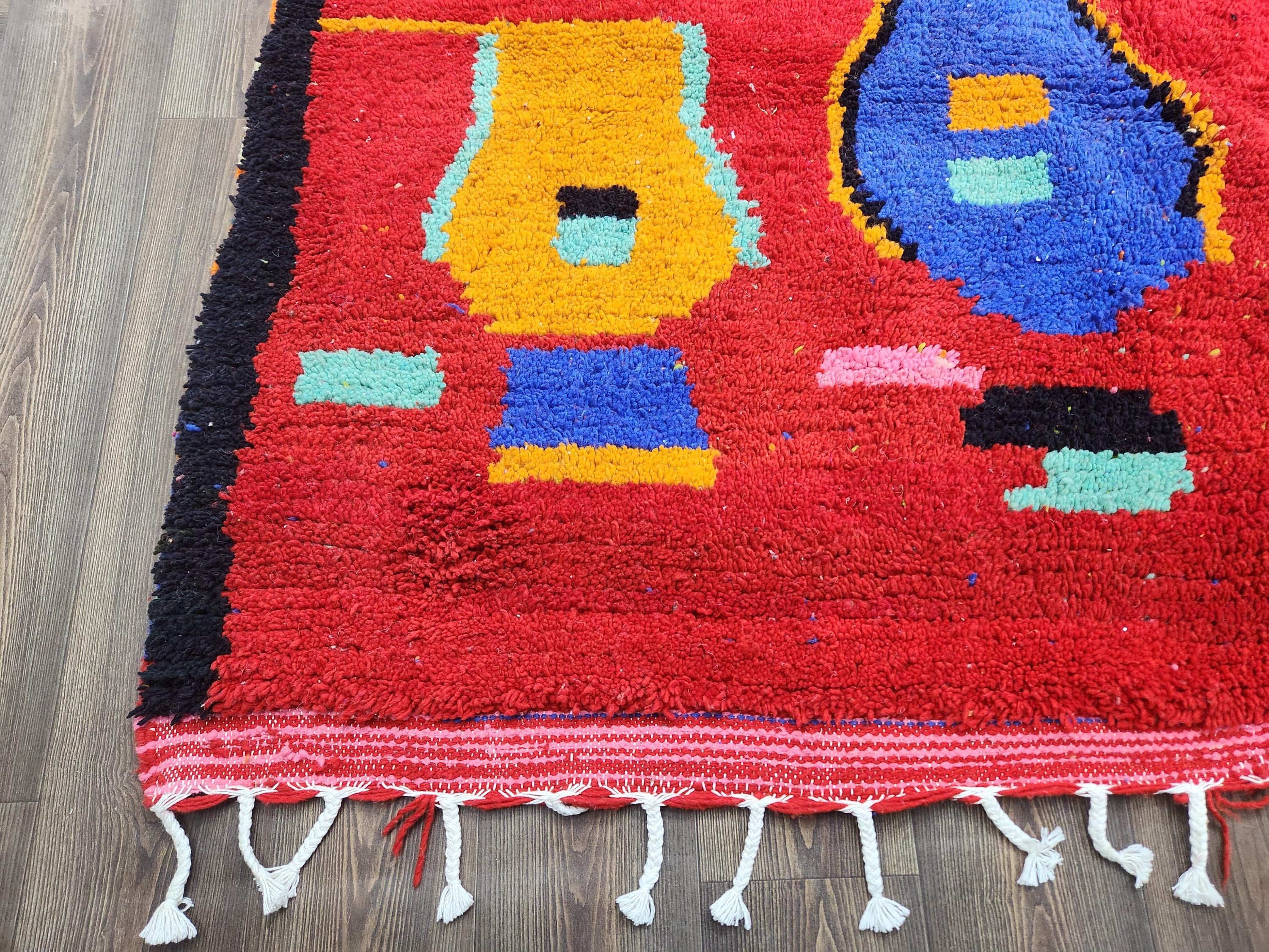 - Shipping: Insured, trackable, fast, and FREE worldwide with FedEx or DHL (2 to 5 days delivery). - Cleaning: Each rug is thoroughly cleaned before shipping. - Colors: Please view the pictures for details. - Texture: Moroccan, soft, and shag. - Technique: Hand-knotted craftsmanship.boho boujaad rugs - Construction: Fully handmade.carpet pink rug - Indoor Use: Best for indoor spaces only. - Material: Natural wool, lovingly handwoven. Expect lovely, natural variations. - Pattern: Each piece is unique due to the handmade process. - Size: Final dimensions may vary by a few inches. - Tassels: Woven on one side in traditional fashion.
