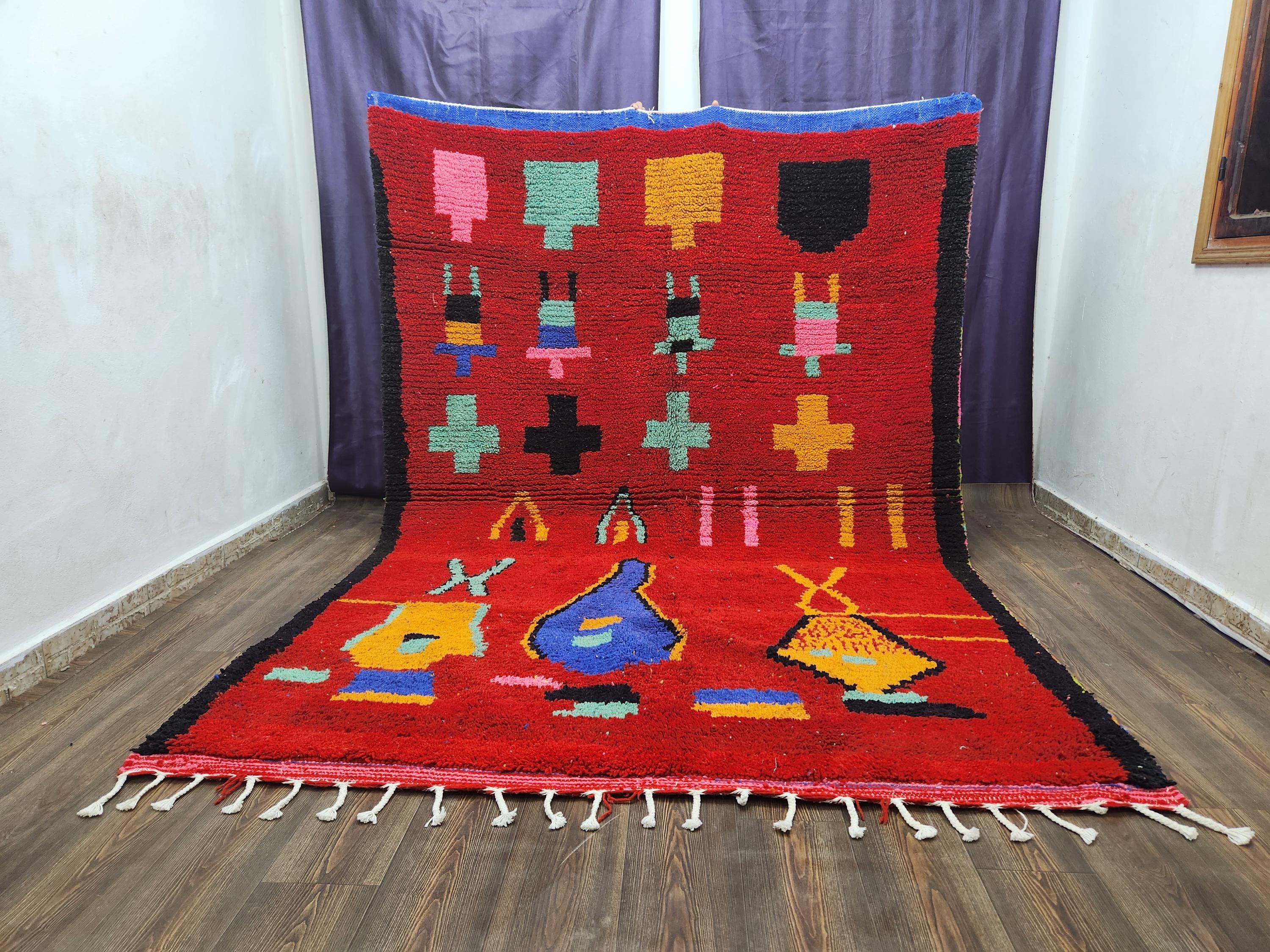 A Moroccan Berber colorful rug from rugaziz is a timeless piece of living room decor, handcrafted with intricate patterns inspired by the Berber people of Morocco. These rugs stand out for their bold geometries, natural dyes, and high-quality wool construction, making them a focal point in your home and living space. The boujad rugs add warmth and bohemian style, easily coordinating with modern wall clock designs or other wall decor accents like wall art. You can use your rug in several ways, from anchoring a living room to complementing hardware or handles in an entryway, or even beneath a door handle for a touch of traditional handmade comfort.