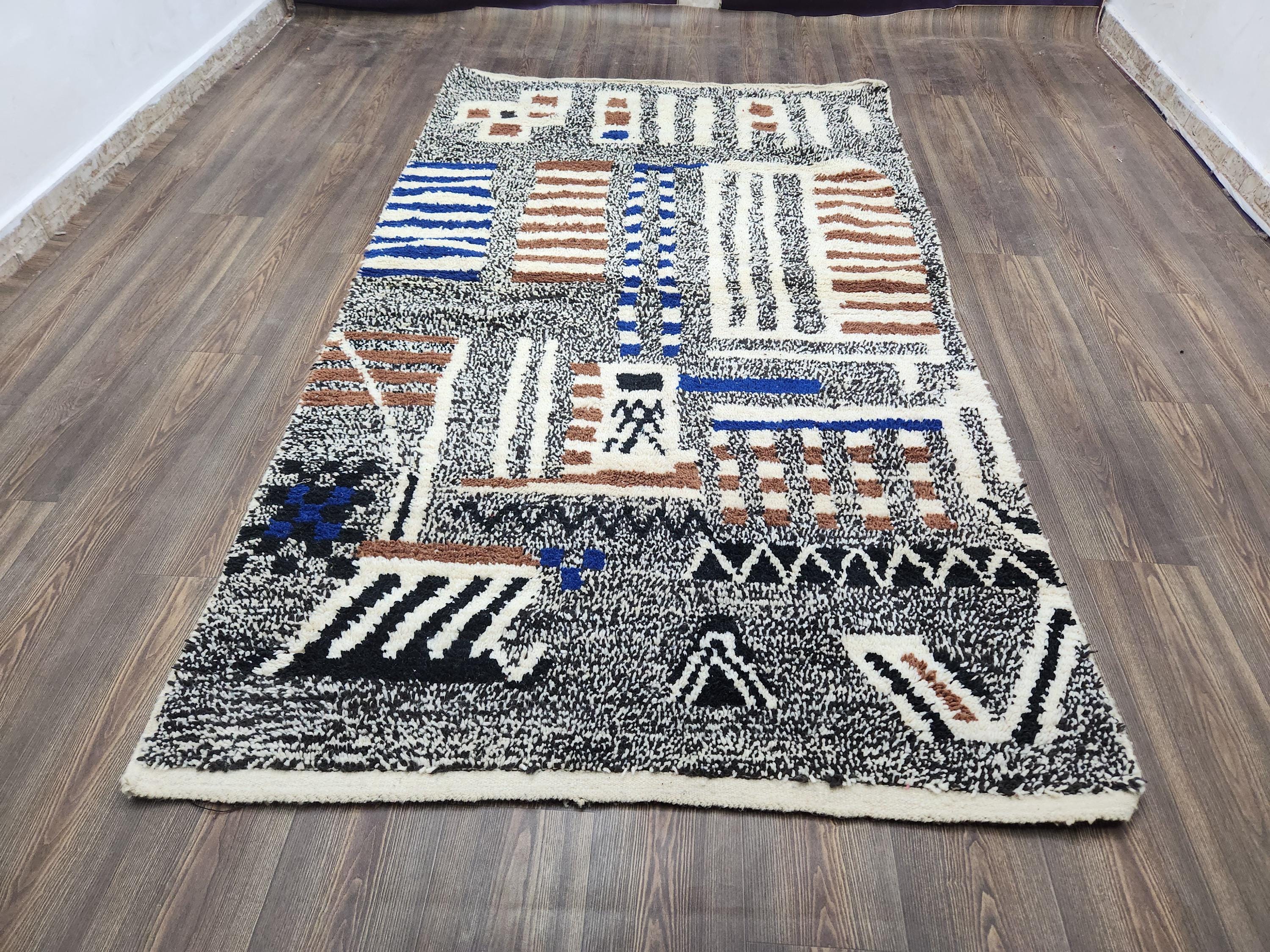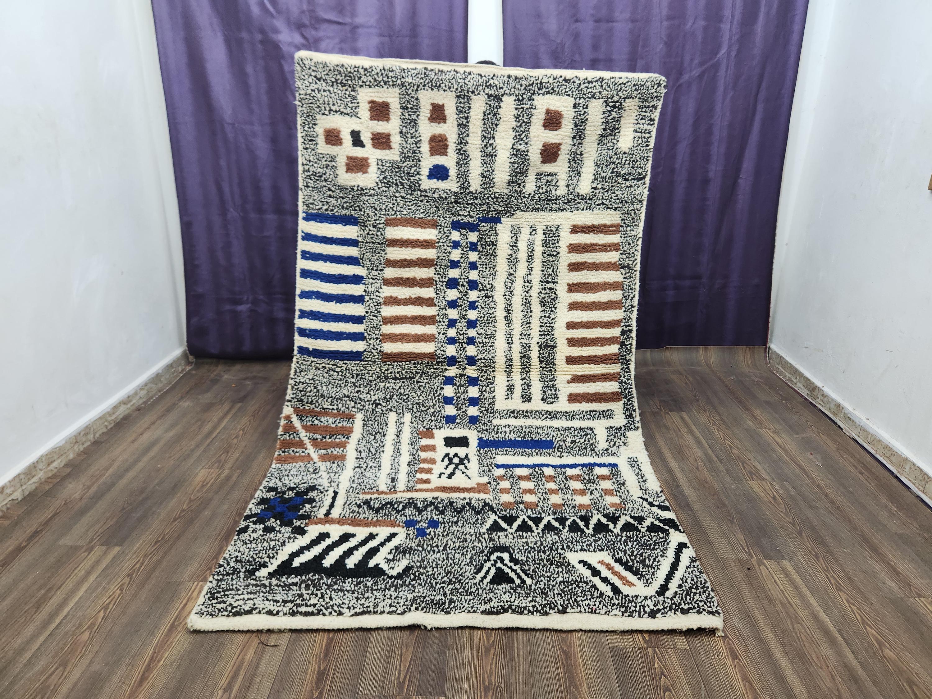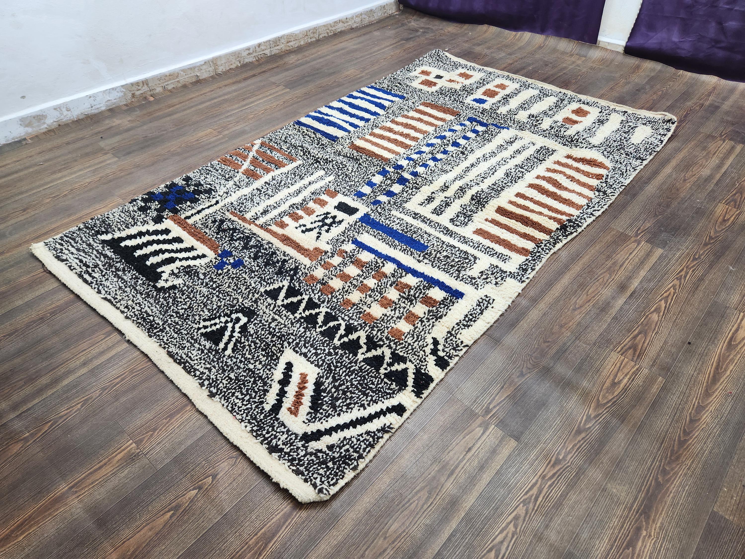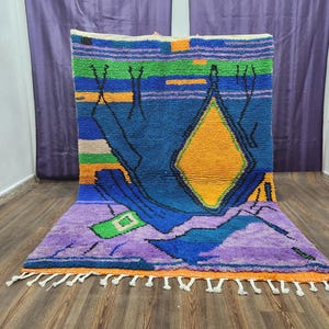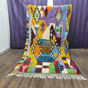 A Moroccan Berber colorful rugaziz rug brings tradition and heritage to your space, inspired by the indigenous Berber people of Morocco. Each morroccan rug is known for its bold, geometric designs, crafted using a mix of natural dyes and maroccan wool. These rugs, like the handmade benirug and handmade from carpet, showcase intricate patterns that add character to any room.