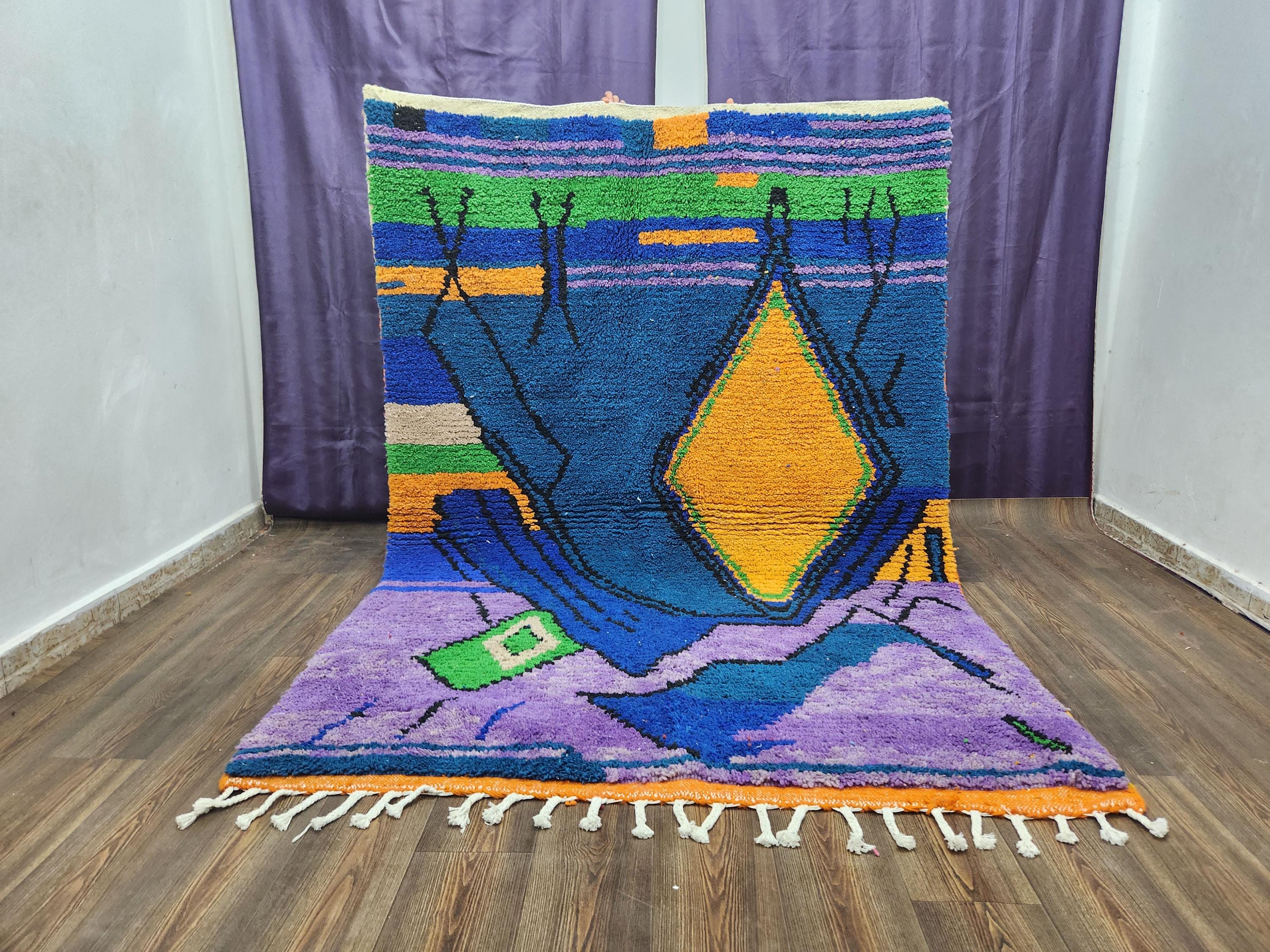 Bring color and artisan design into your home with this rugaziz Moroccan Berber rug. Each handmade rug showcases intricate patterns and bold geometric designs, reflecting the artistry of the indigenous Berber people of Morocco. Made from high-quality wool dyed with natural colors, this luxurious textile brings lasting style and warmth wherever you use it. You’ll notice the beautiful blush Moroccan rug tones, the rich shades of the morrocan orange rug, and the unique textures of a custom moss rug.