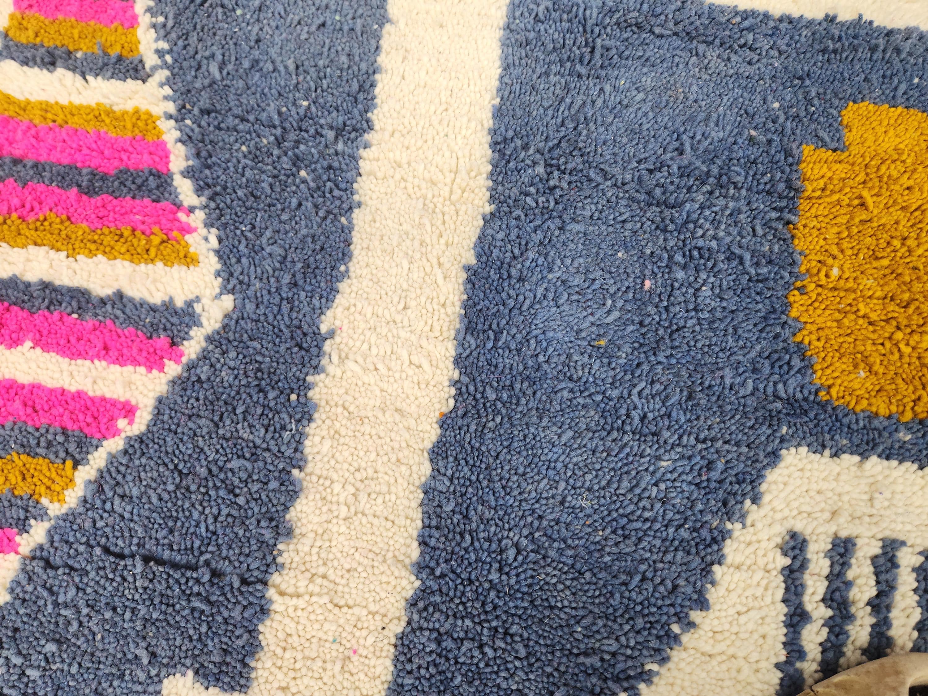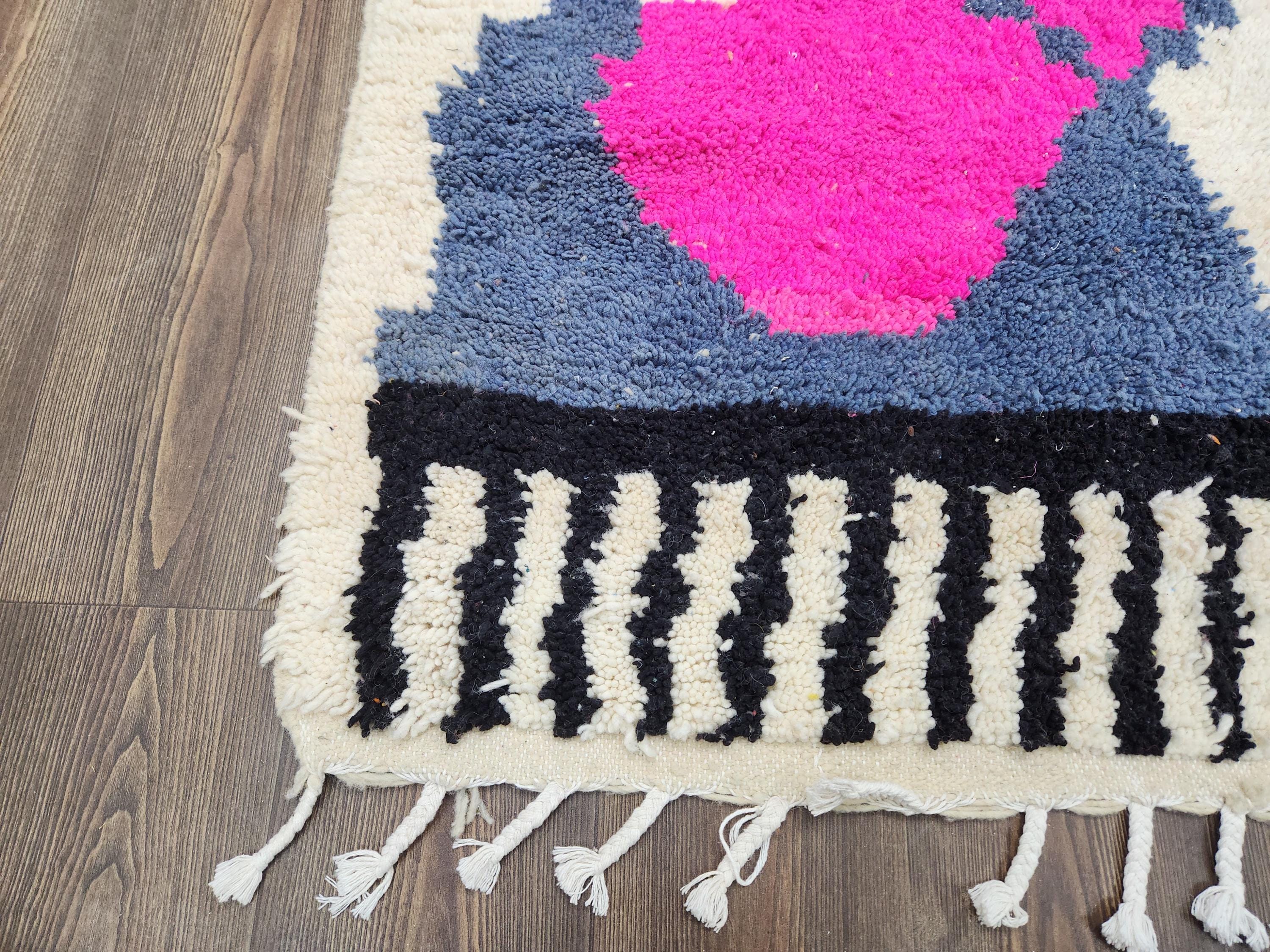 Shipping is insured, trackable, fast, and FREE worldwide by FedEx or DHL (2 to 5 days delivery). All rugs are carefully cleaned before shipping. Please check the pictures for colors and variations. The texture is Moroccan, soft, and shaggy. Technique: Hand-knotted Construction: Handmade For indoor use only. Each order is made by hand from natural wool, ensuring beautiful variations in pattern and color. Due to the handcrafted nature, the pattern and colors may vary slightly from piece to piece. We try our best to ensure consistent sizing, but sizes may vary by a few inches more or less. Tassels are placed on one side, keeping with tradition. Rugs ship tightly rolled in a protective bag; slight creasing may occur and fade within days. Shedding of loose fibers is normal and will diminish with regular vacuuming.