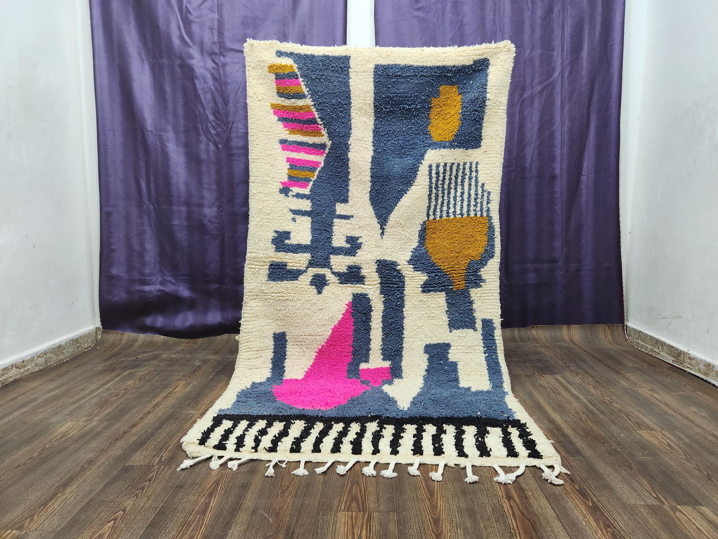 Moroccan rugs are versatile and add a bohemian touch to your living room, bedroom, home office, or entryway. Made from natural undyed wool, these handwoven pieces are durable and easy to maintain—ideal for high-traffic areas.