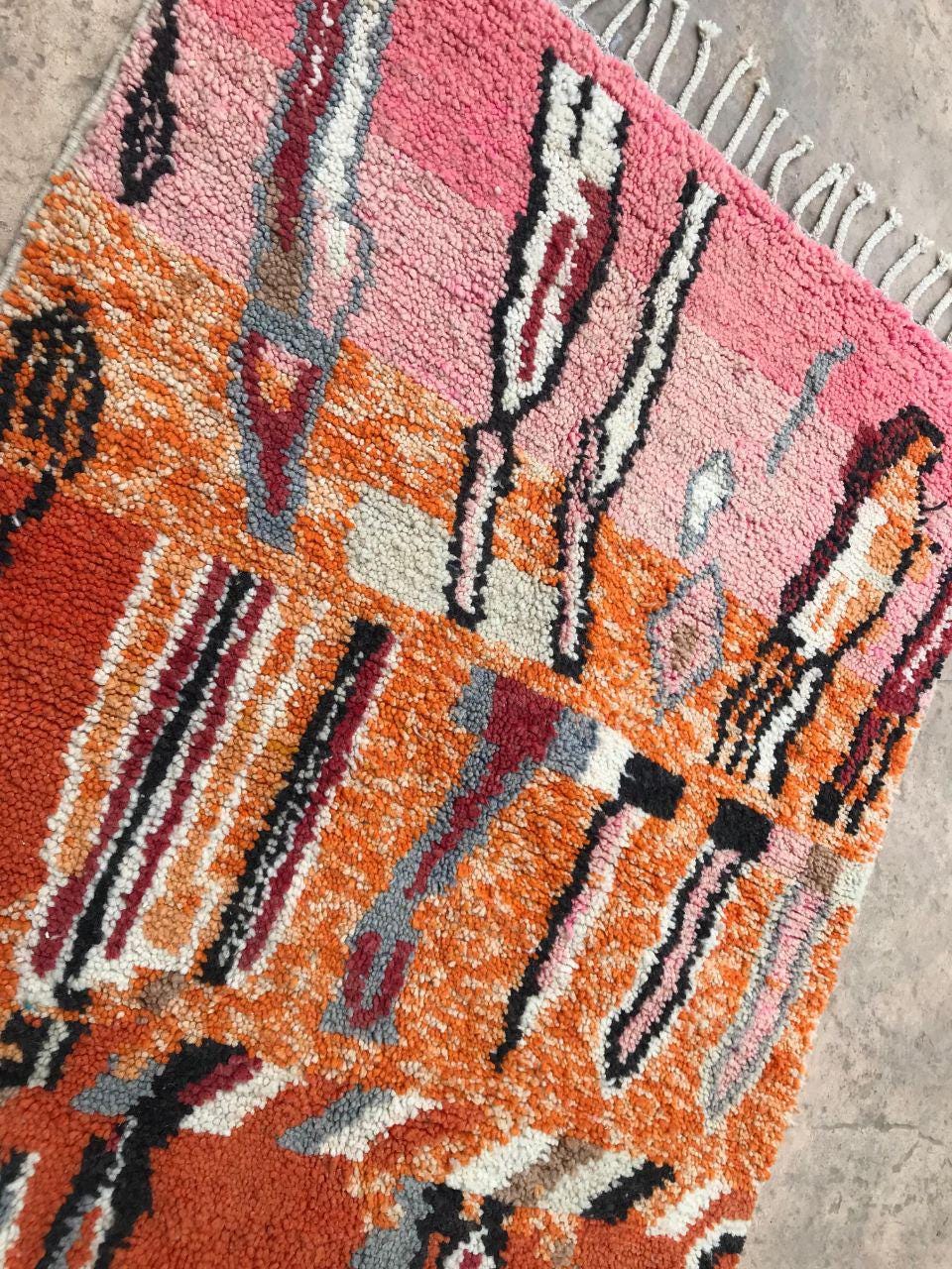 The burnt orange rug, also known as tapis orange or tapis morocco orange, offers a distinctive Moroccan touch. This hand-kontted rug provides a plush, soft texture underfoot and is ideal for high-traffic areas thanks to its durable construction. The orange washable rug is easy to care for, so you can keep it looking fresh for years.