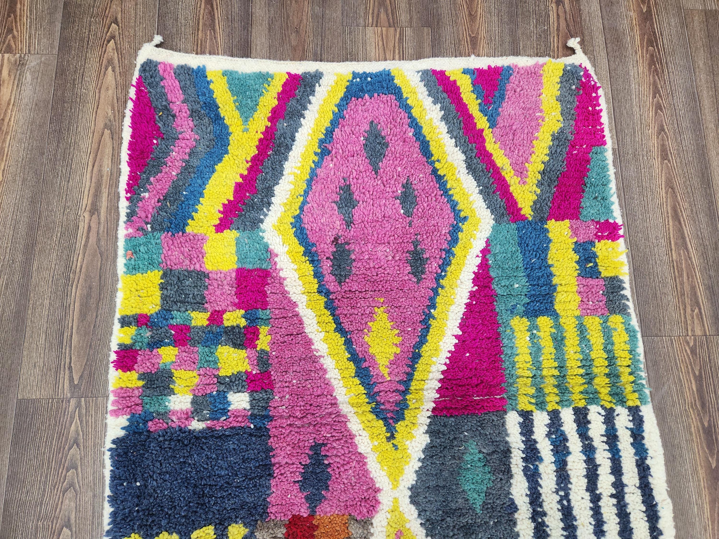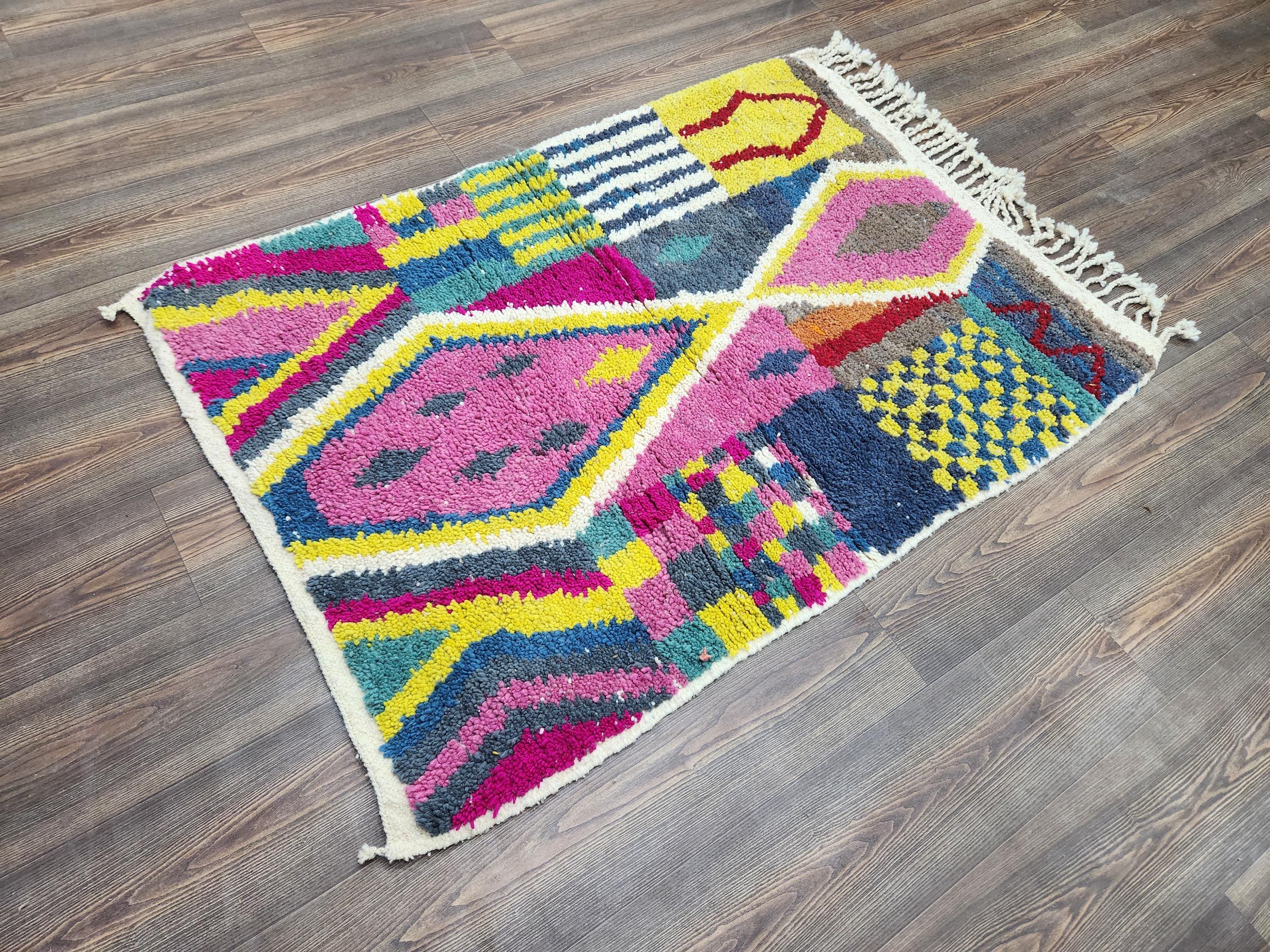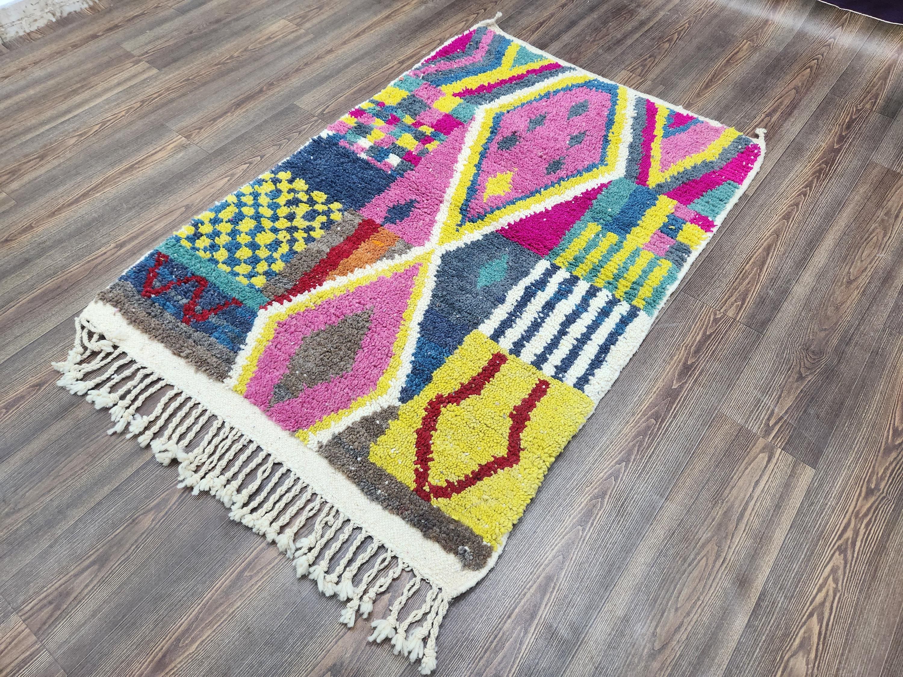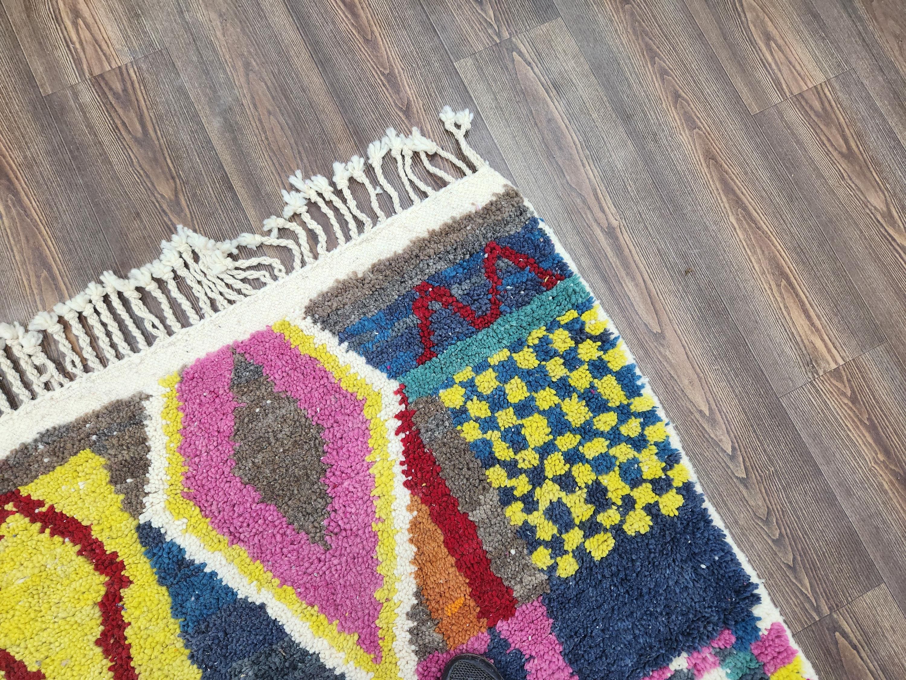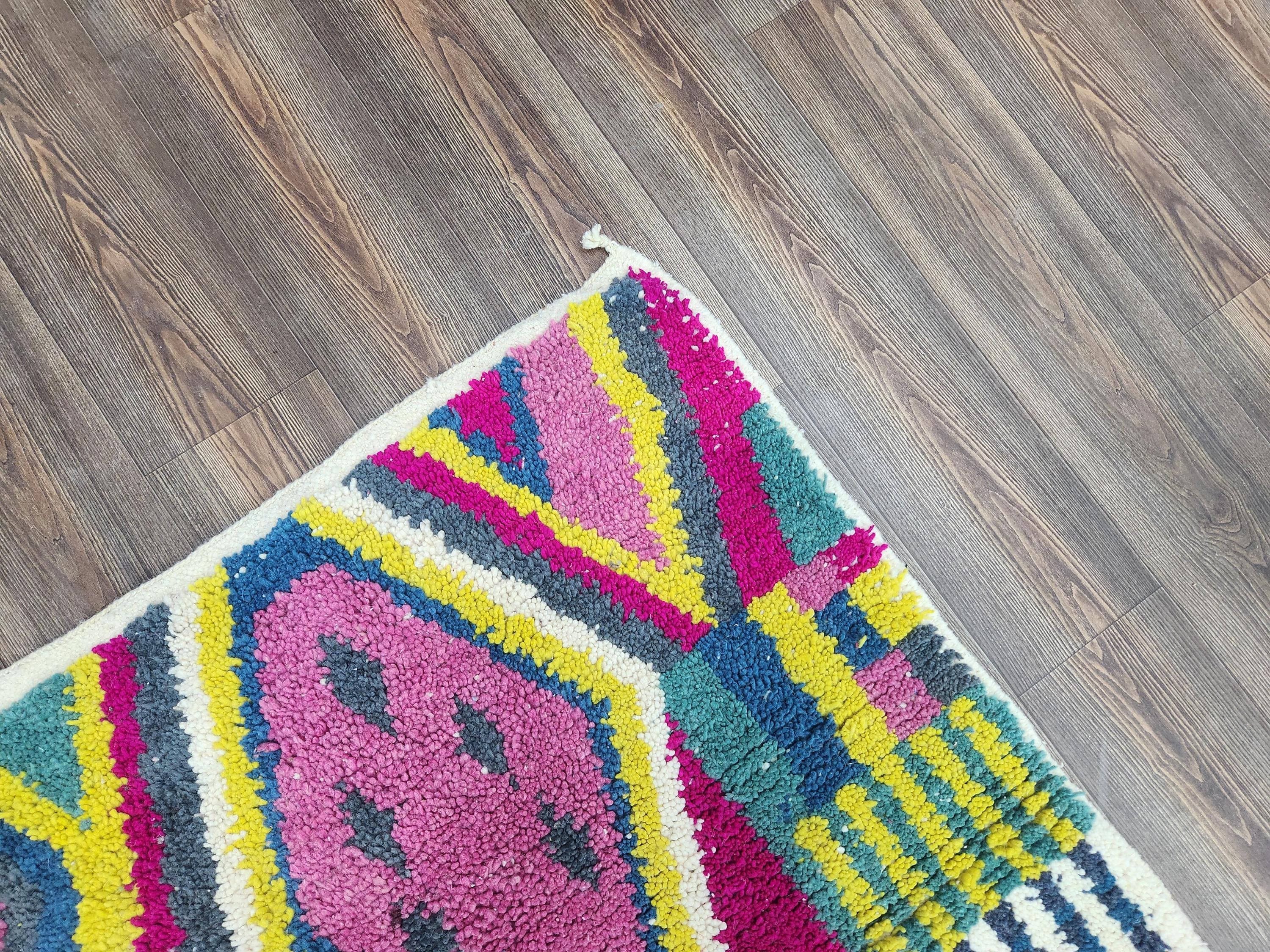 modern runner wool 7 feet long berber,moroccan rug red pink yellow,morrocan wool rug 5 x 5.5 feet
