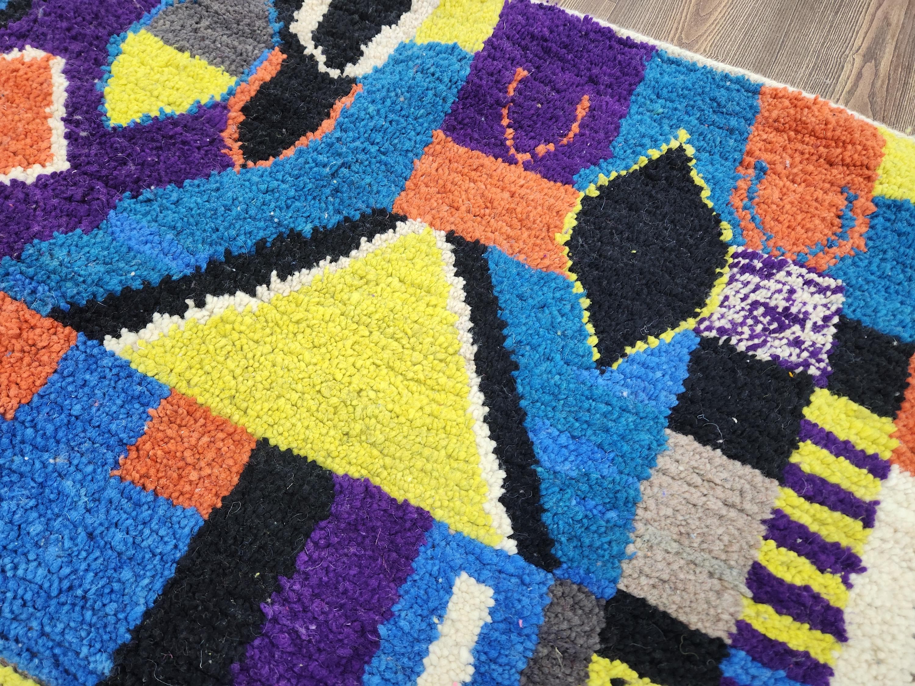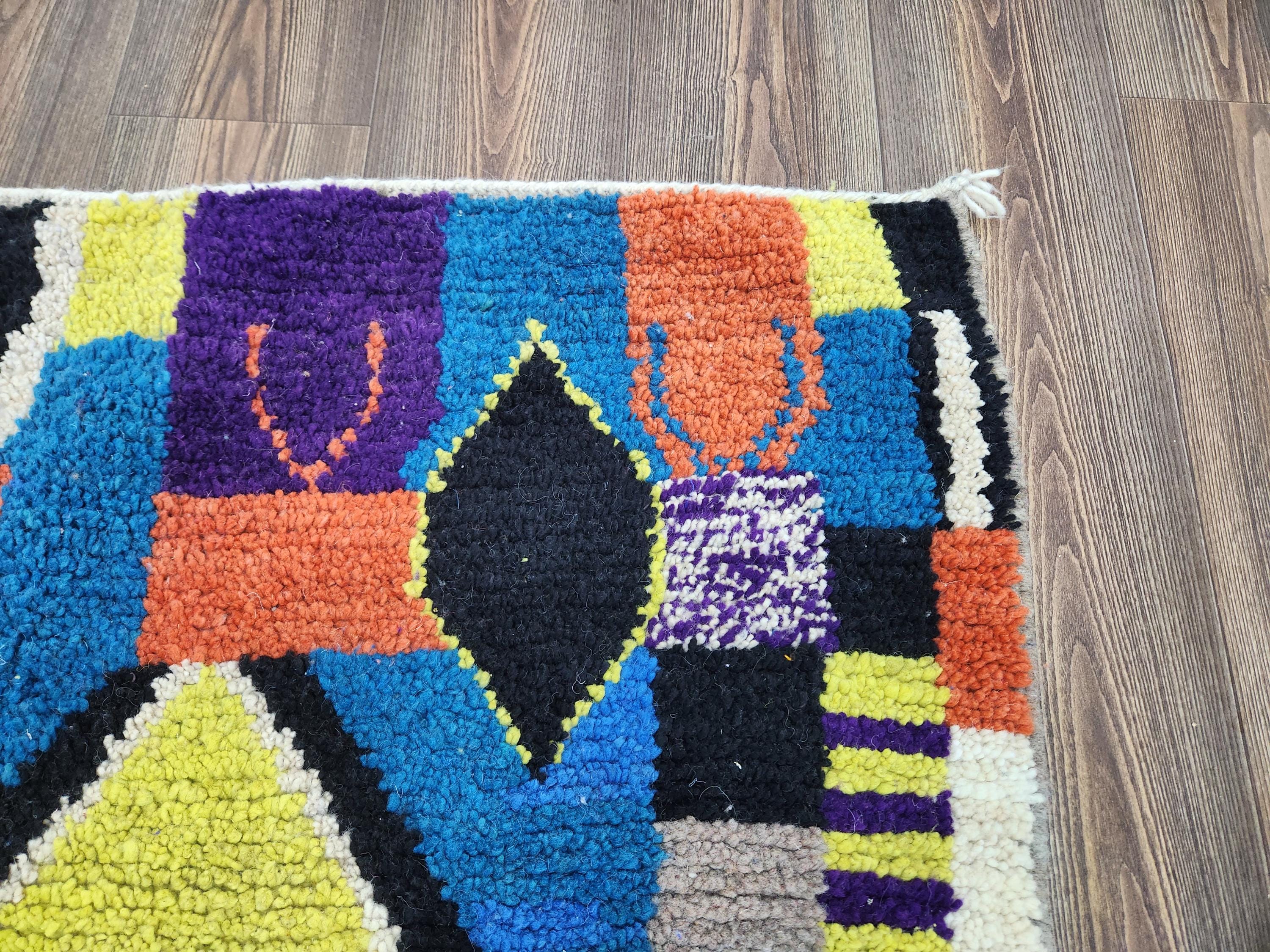 A Moroccan Berber colorful rug, such as this beautiful handmade rug, brings traditional craftsmanship from the indigenous Berber people of Morocco to your home. Inspired by the classics like tapis marocain and the rug company rugs, every piece showcases bold, geometric patterns and vibrant hues created from natural dyes and high-quality wool. This mixy rug is not only visually stunning but also adds a playful touch, with colors reminiscent of an anthropologie rug or those found in the best anthropologie rugs collections.