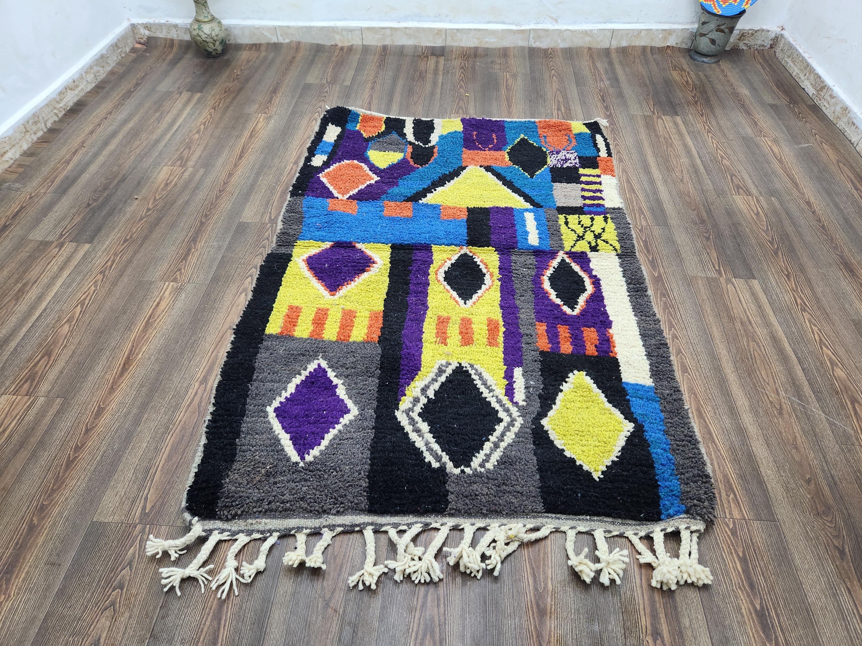 carpet black and colour wool beni ouarain,custom rug handmade moroccan,berber area boujaad