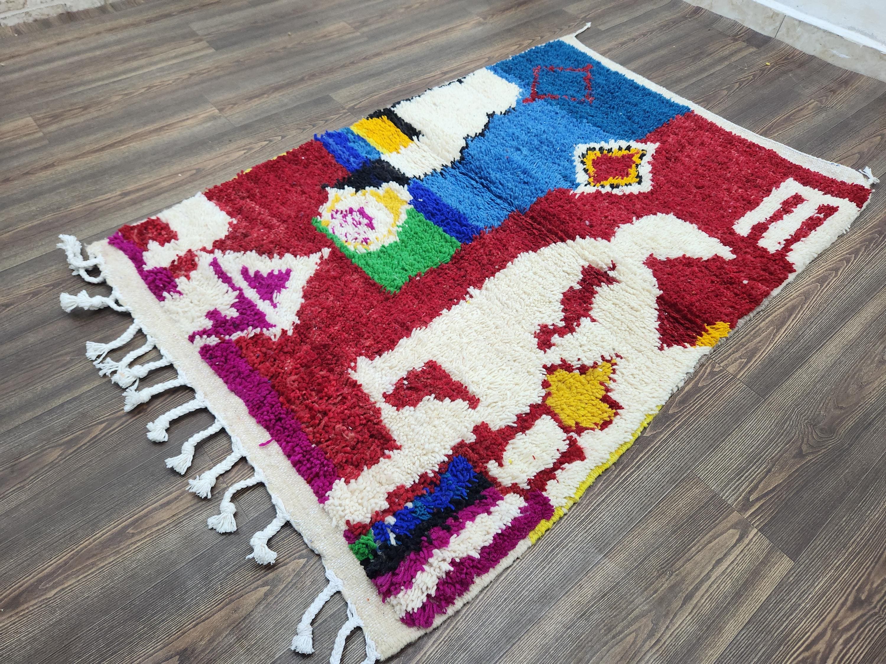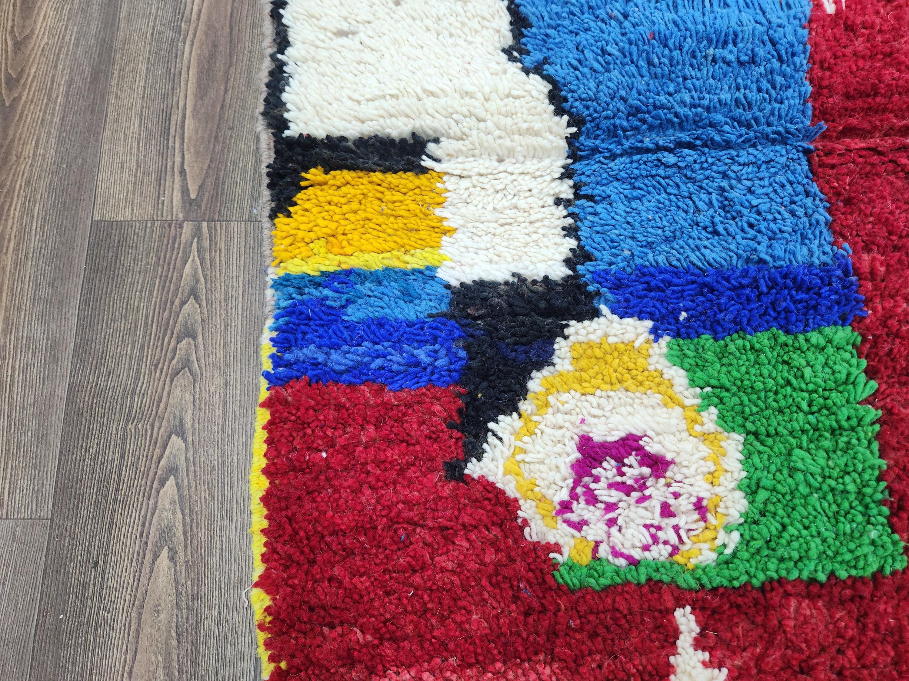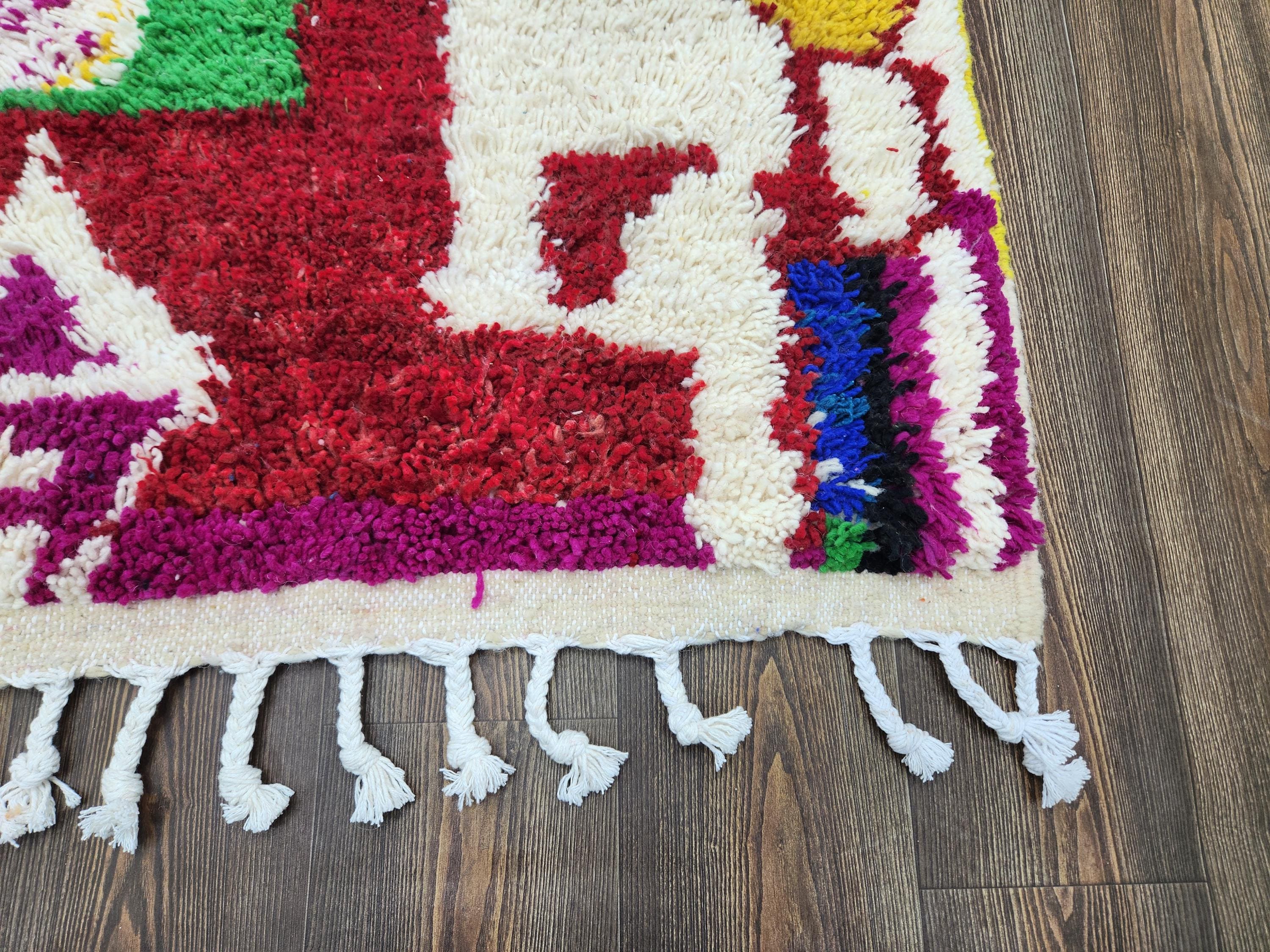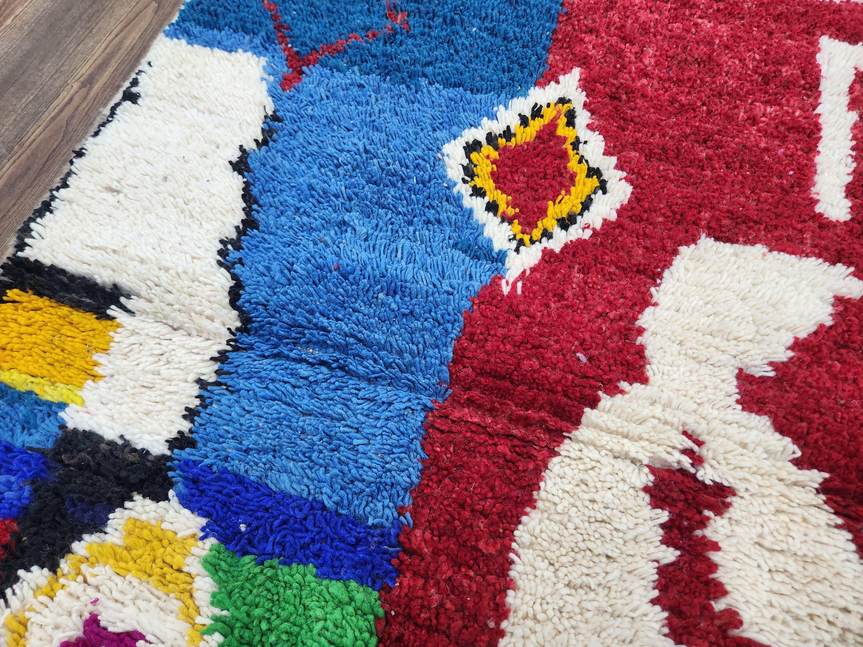 A Moroccan Berber colorful rug is a traditional handwoven floor covering crafted by the indigenous Berber people of Morocco. Known for intricate patterns and bold, geometric designs, these rugs use a variety of natural dyes and high-quality wool for a truly unique look. Our selection includes styles inspired by vintage taznakht and custom morrocan rug craftsmanship, including the sought-after rugaziz feel and wool rug runer gree tones.
