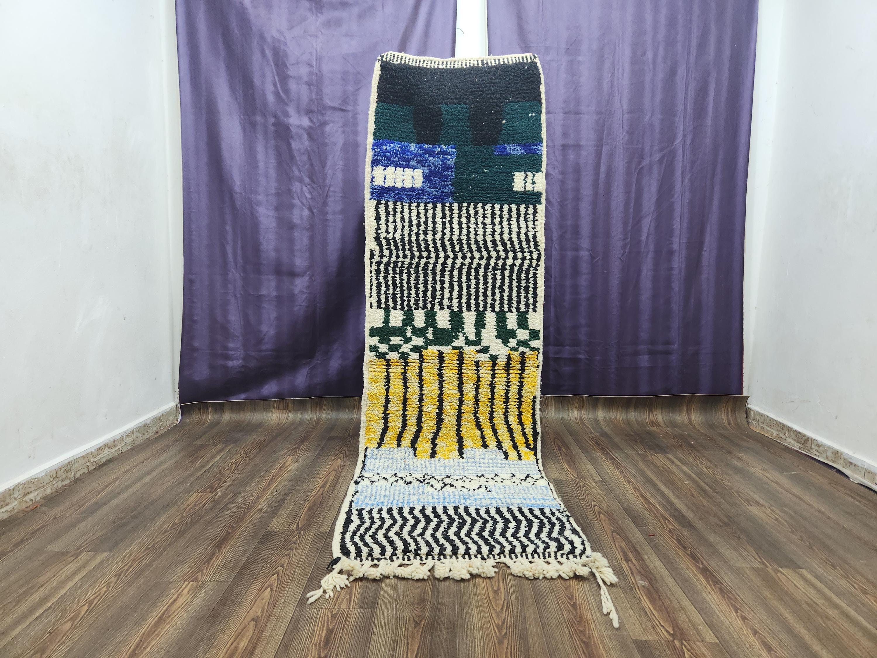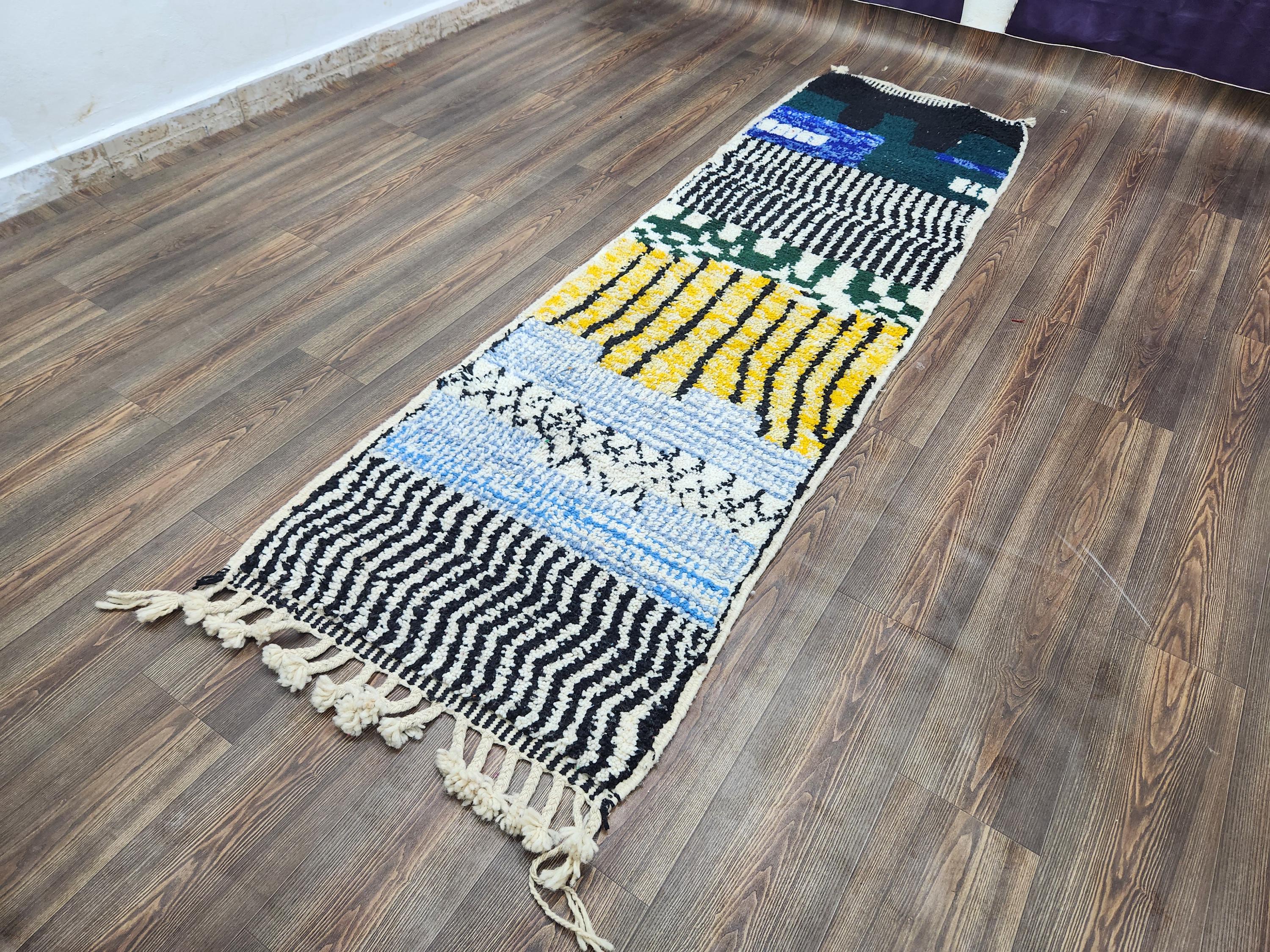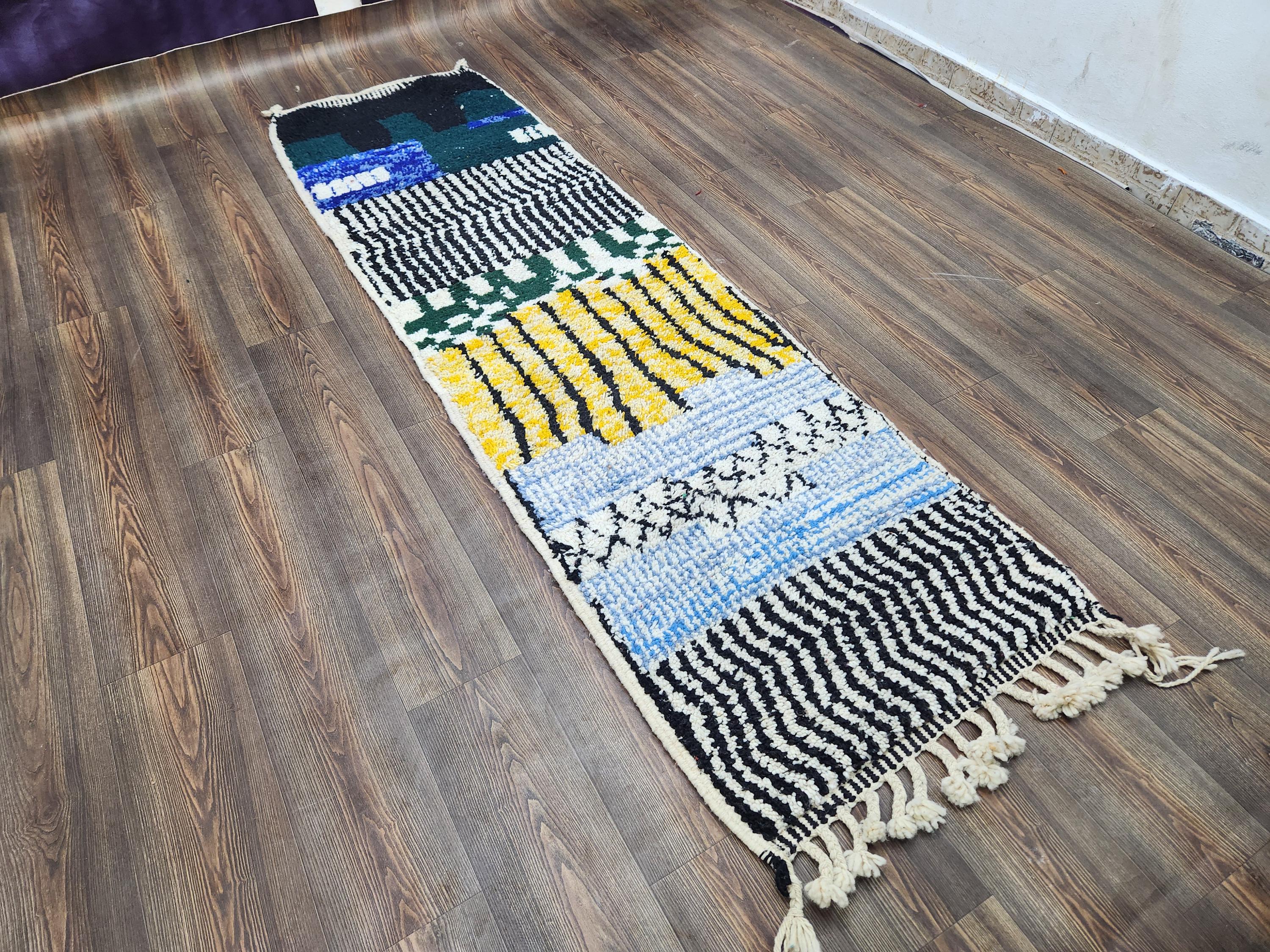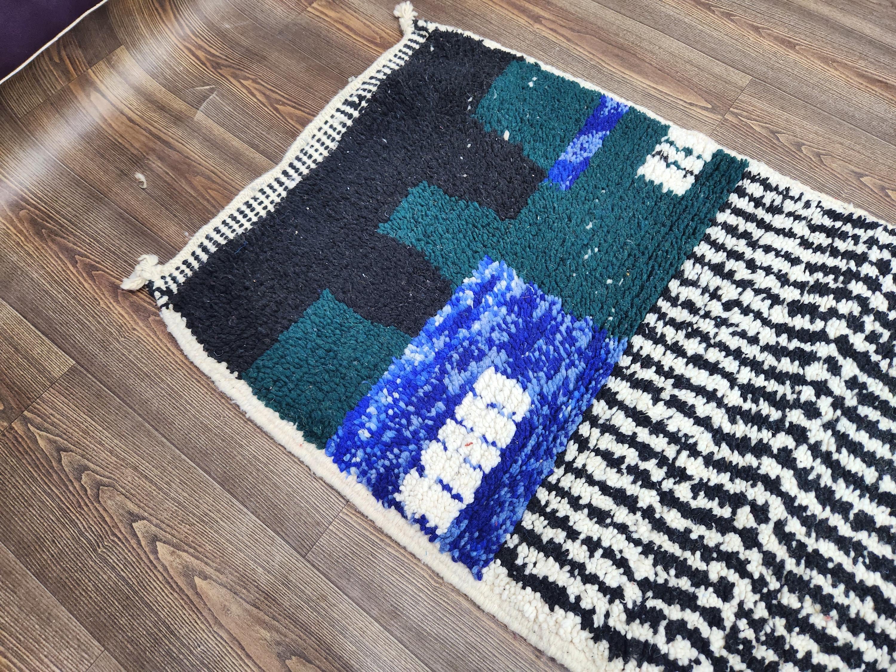 handmade runner rug blue,moroccan runner beni ouarain ,runner 2x8 2x7