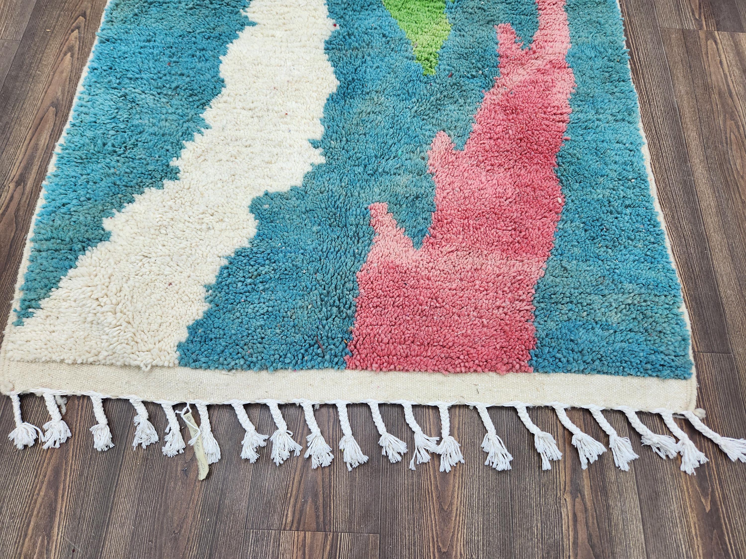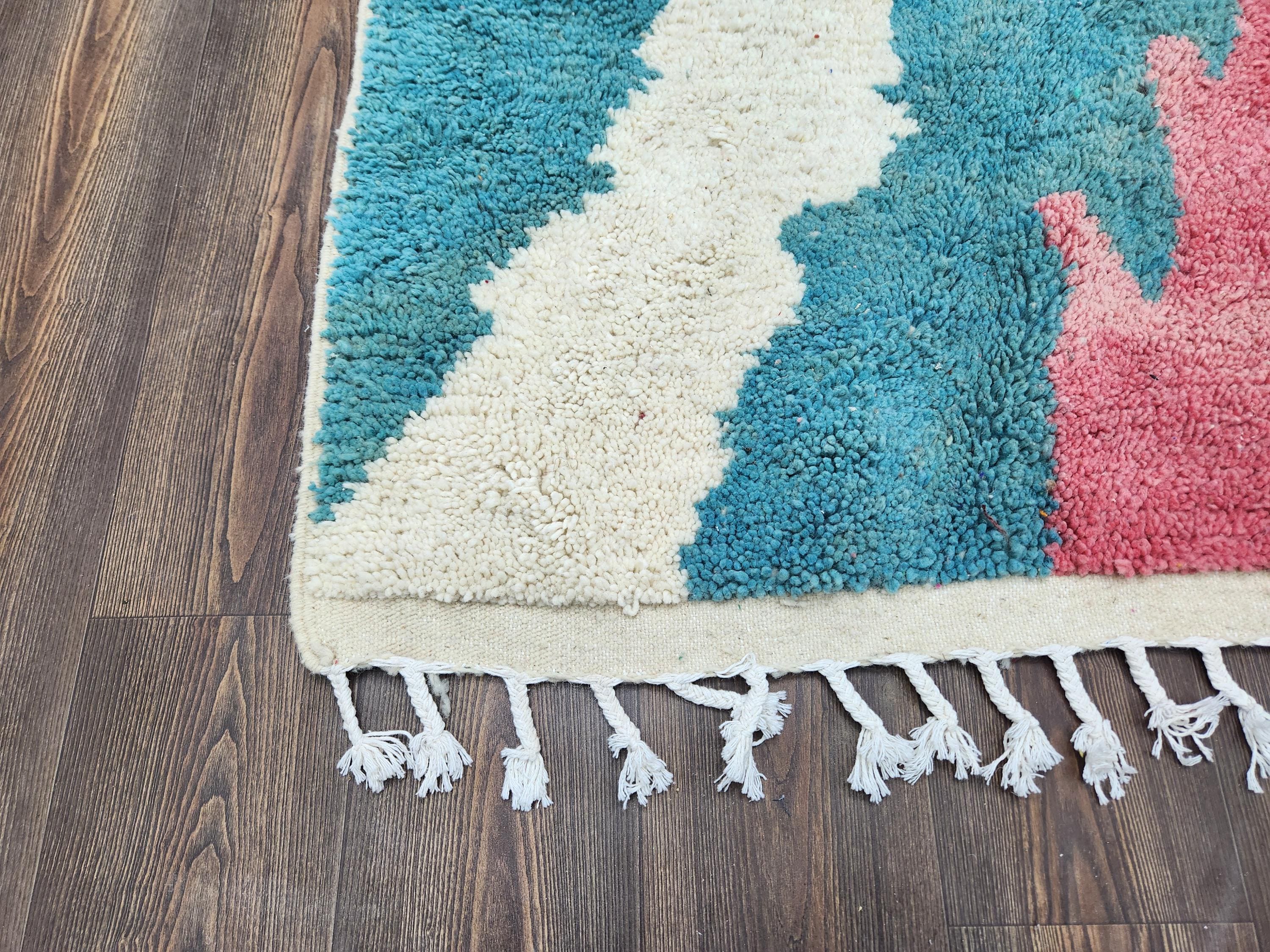 ❖ Cleaning: All rugs are carefully cleaned before shipping. ❖ Colors: Please review the photos provided. ❖ Texture: Moroccan / soft / Shag. ❖ Technique: Hand-Knotted by rugaziz artisans. ❖ Construction: Handmade from natural wool. ❖ Location: Indoor use only. ❖ Material: Each rug is crafted entirely by hand from natural wool, resulting in beautiful, natural variations in pattern and color. Wool shrinks. ❖ Pattern: As each product is handcrafted, pattern and colors may vary slightly from one piece to another. ❖ Size: While we strive for consistent sizing, final dimensions may vary by a few inches. ❖ Tassels: One side features traditional Moroccan tassels.