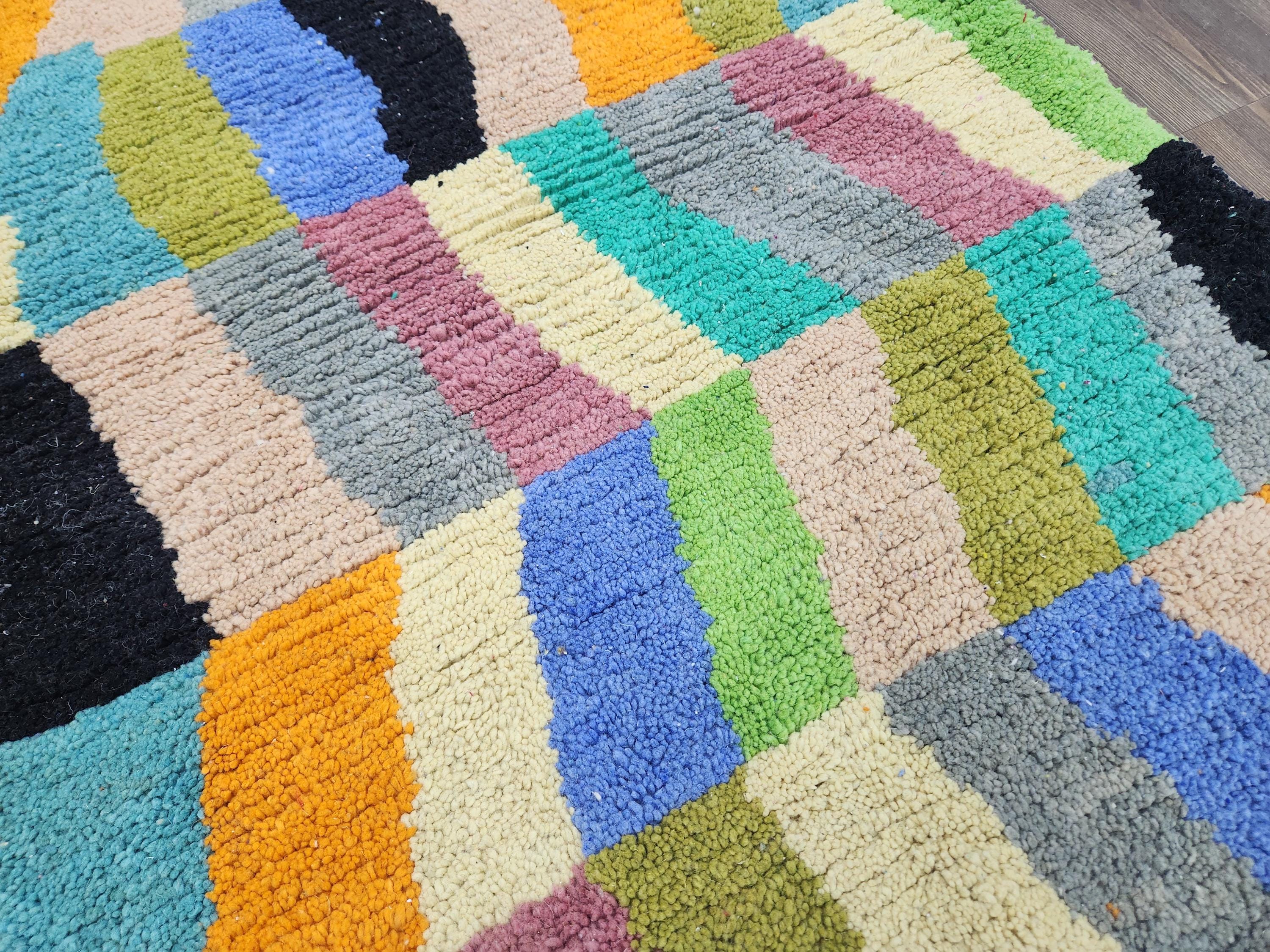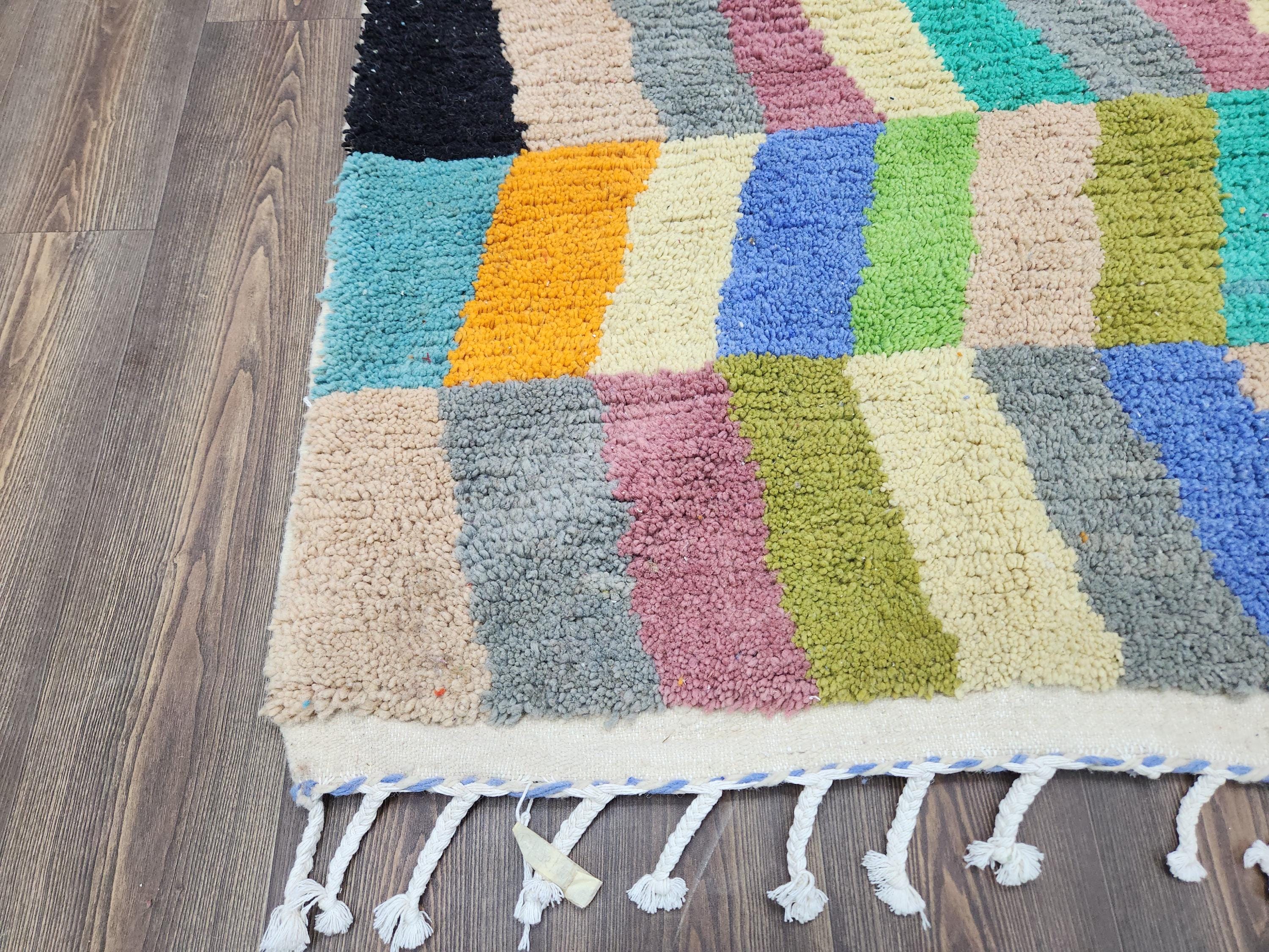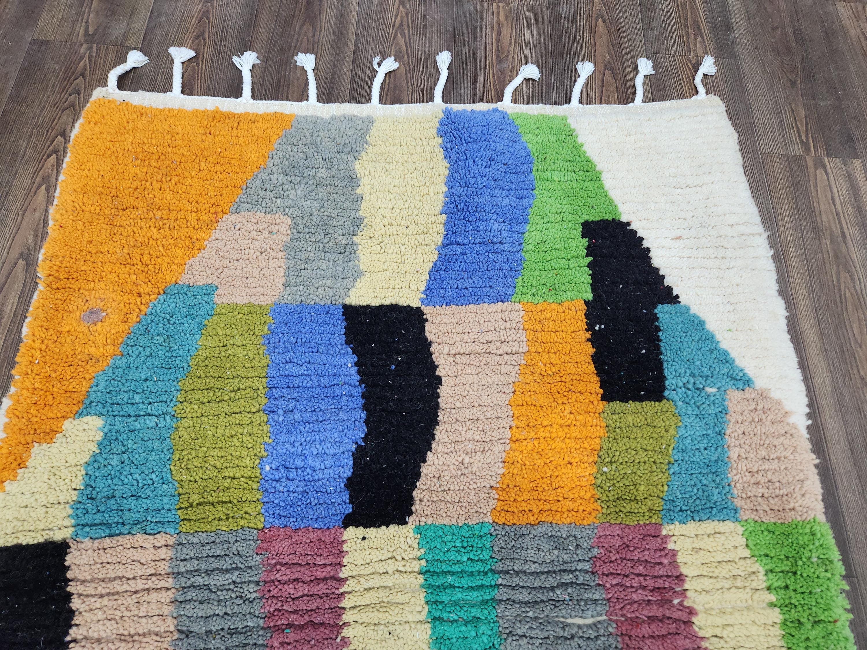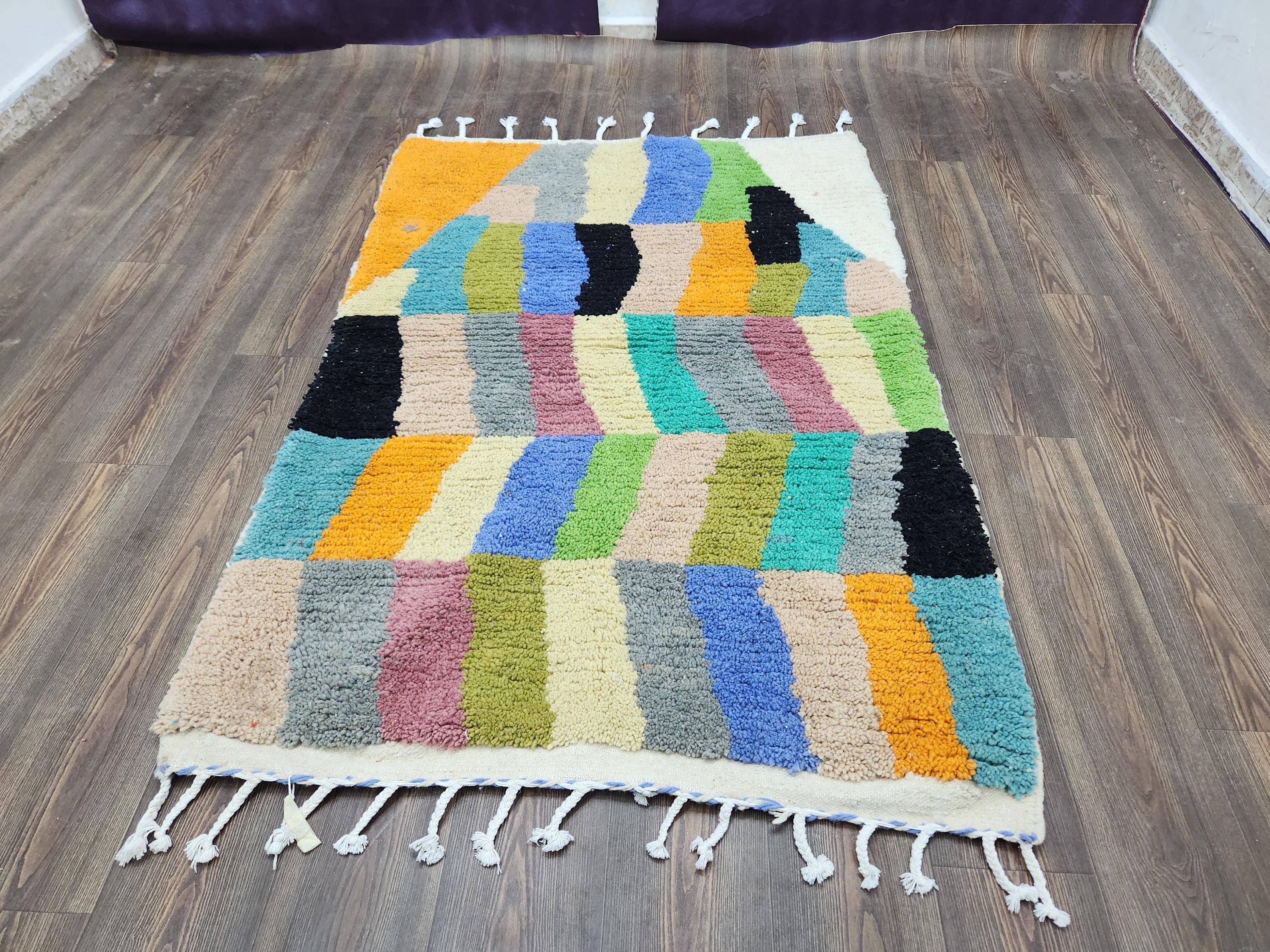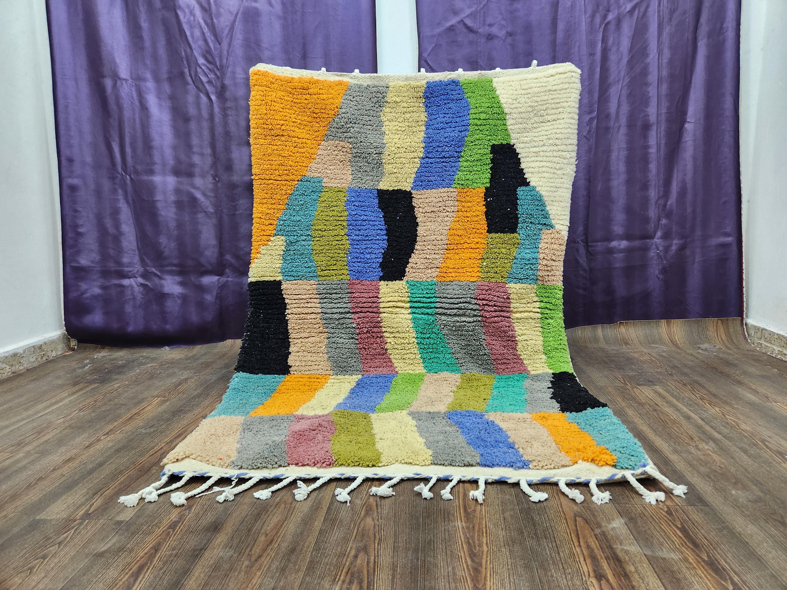 A rugaziz Moroccan Berber colorful rug is a traditional handwoven floor covering made by the skilled Berber artisans of Morocco. Known for their intricate patterns and bold, geometric shapes, these rugs use natural dyes and high-quality wool for timeless appeal. Our custom morrocan rug options include the elegant beni mrirt rug style, showcasing a unique blend of heritage and modern tastes.