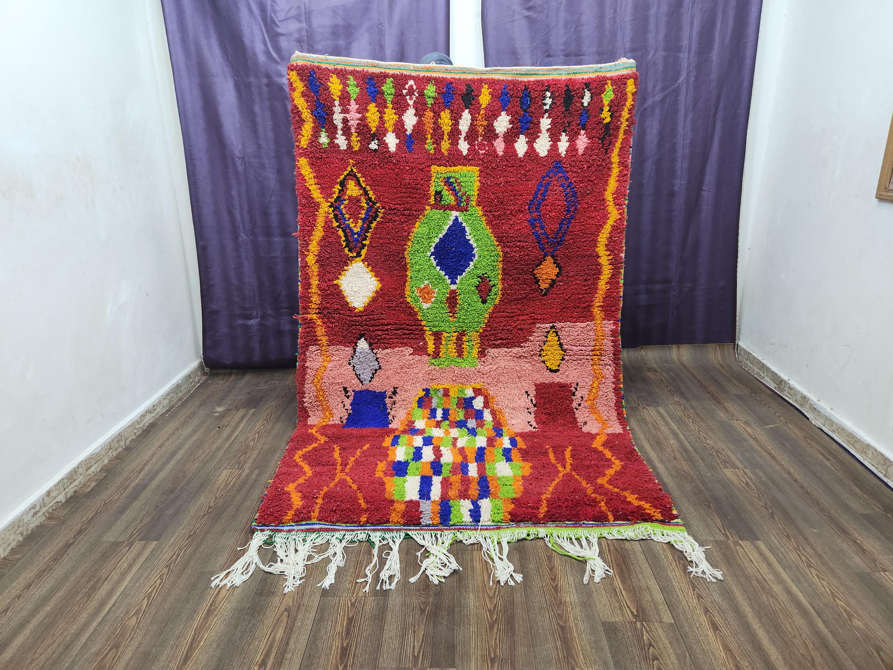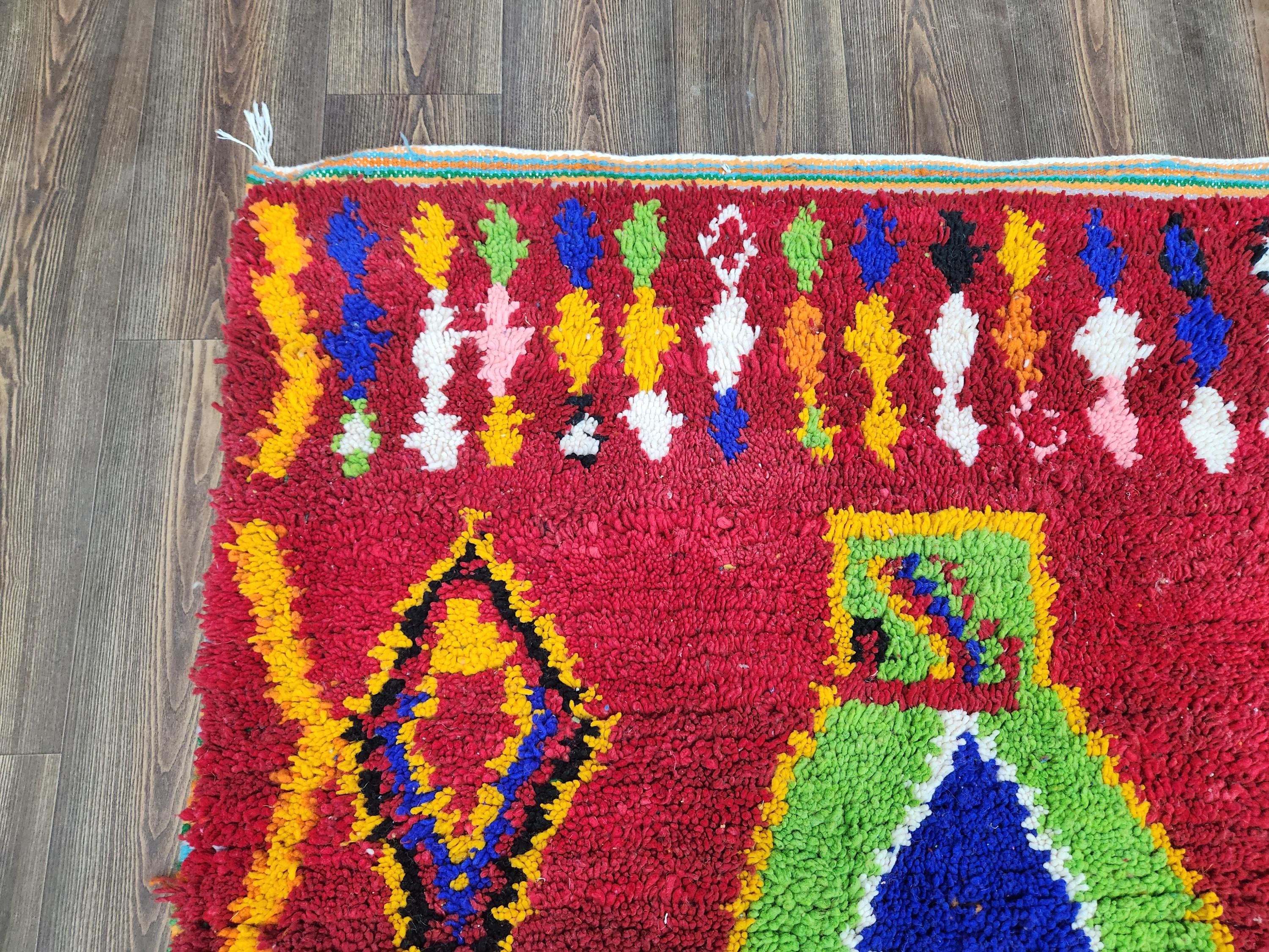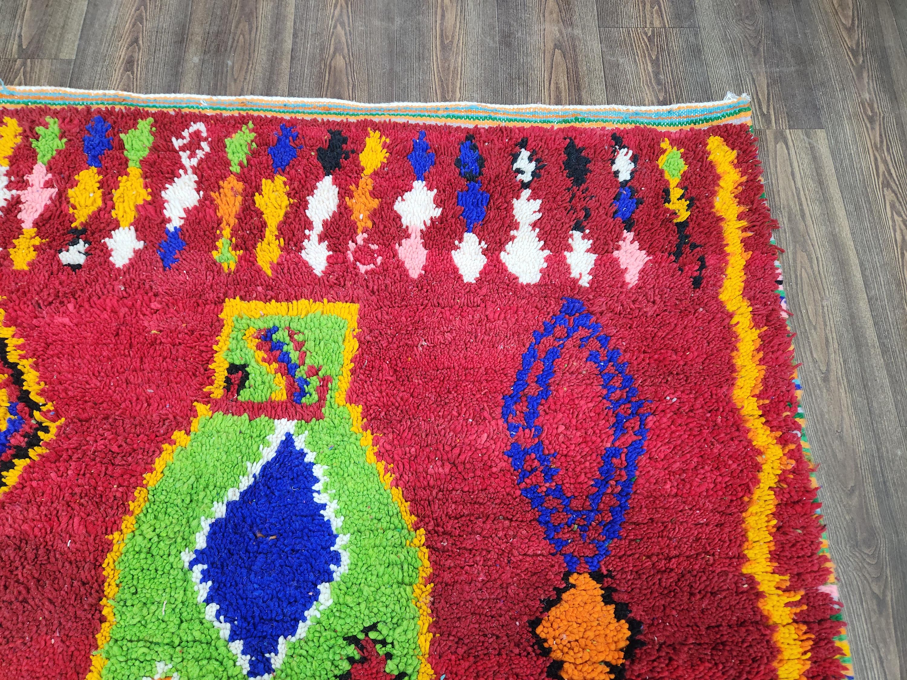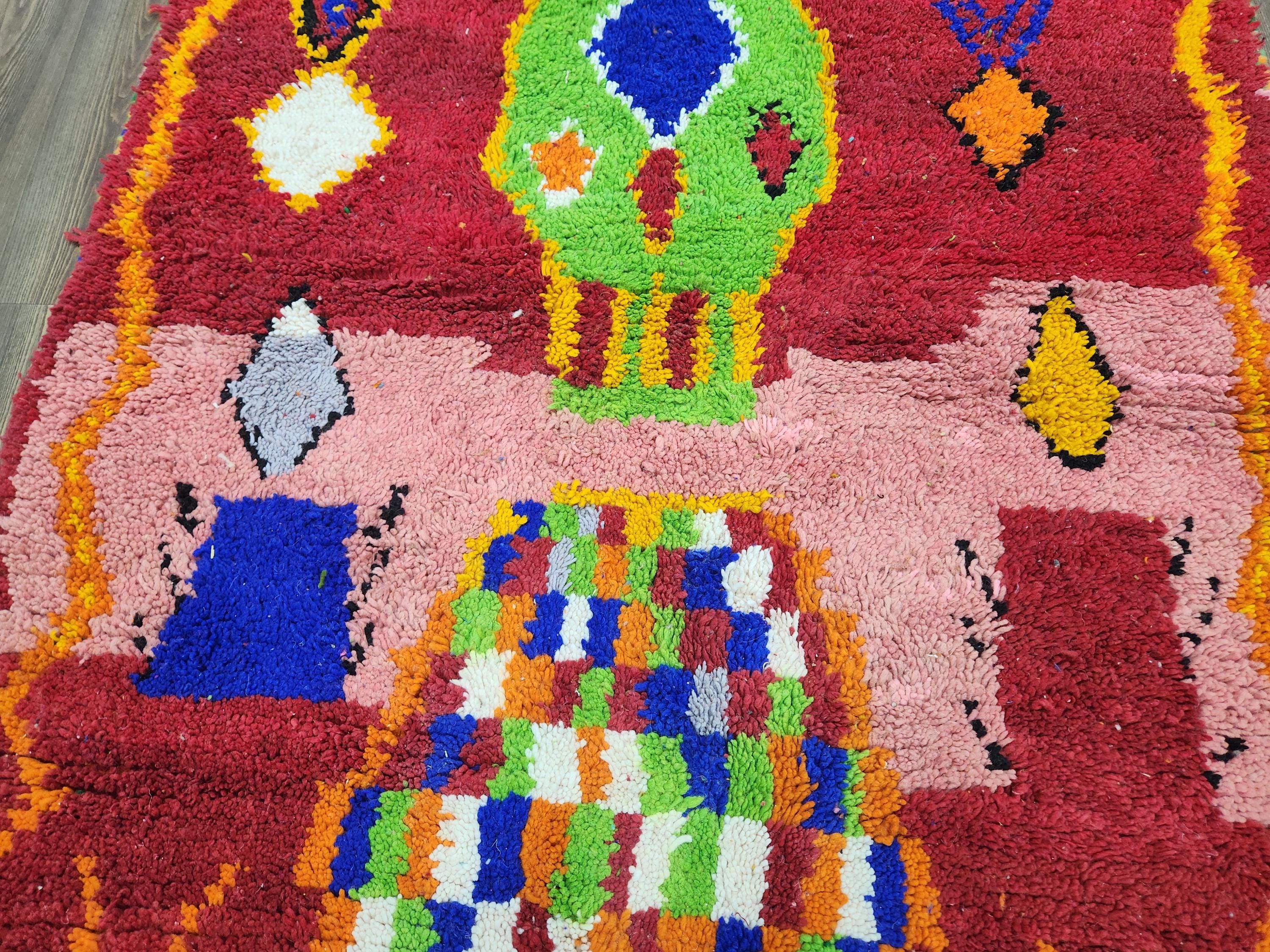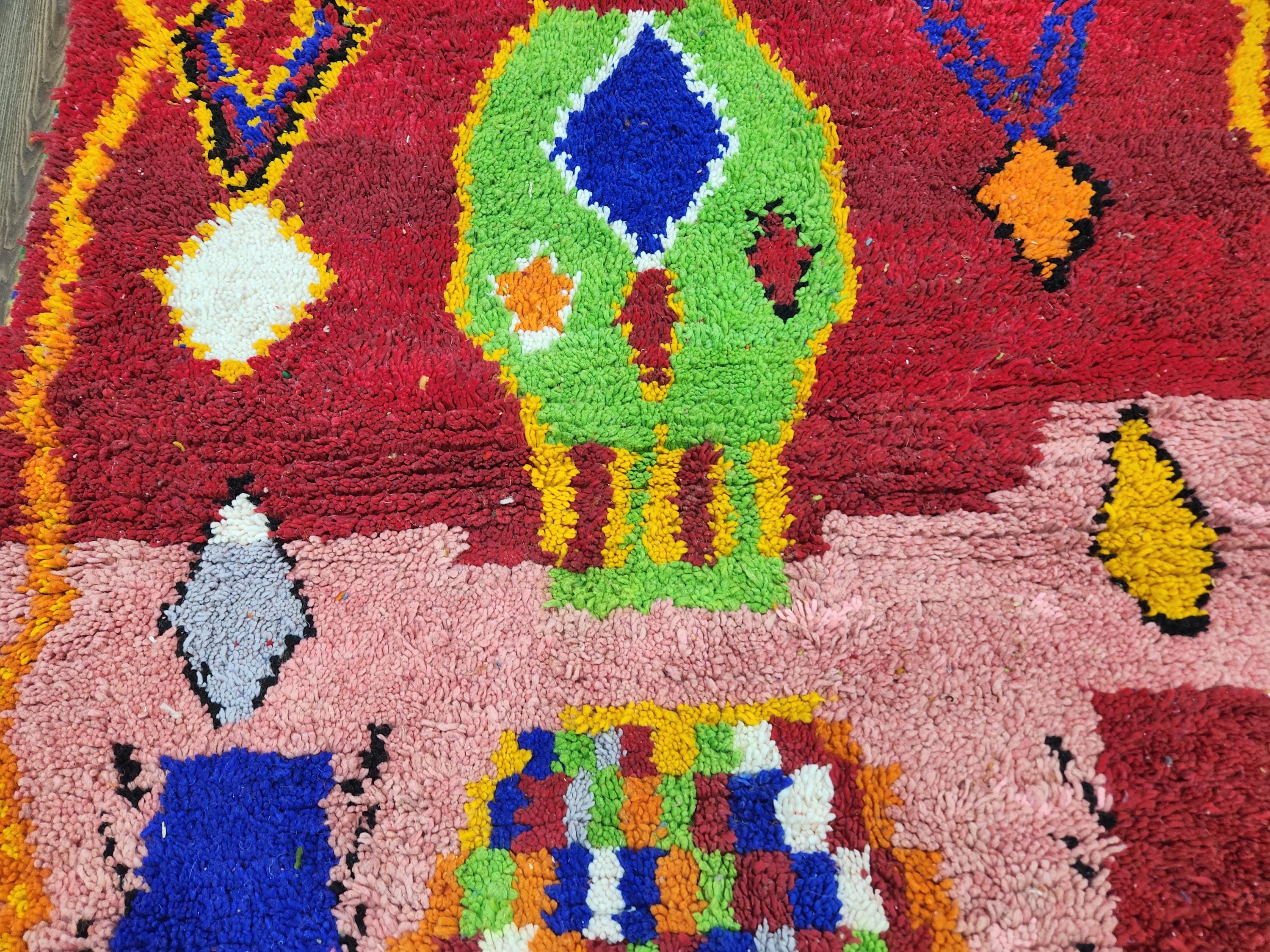 These Moroccan boujad rugs double as beautiful oriental carpets, reflecting rich heritage and captivating colorways. The hand-knotted, handmade technique ensures each rug is unique, adding warmth and a welcoming vibe to any room.