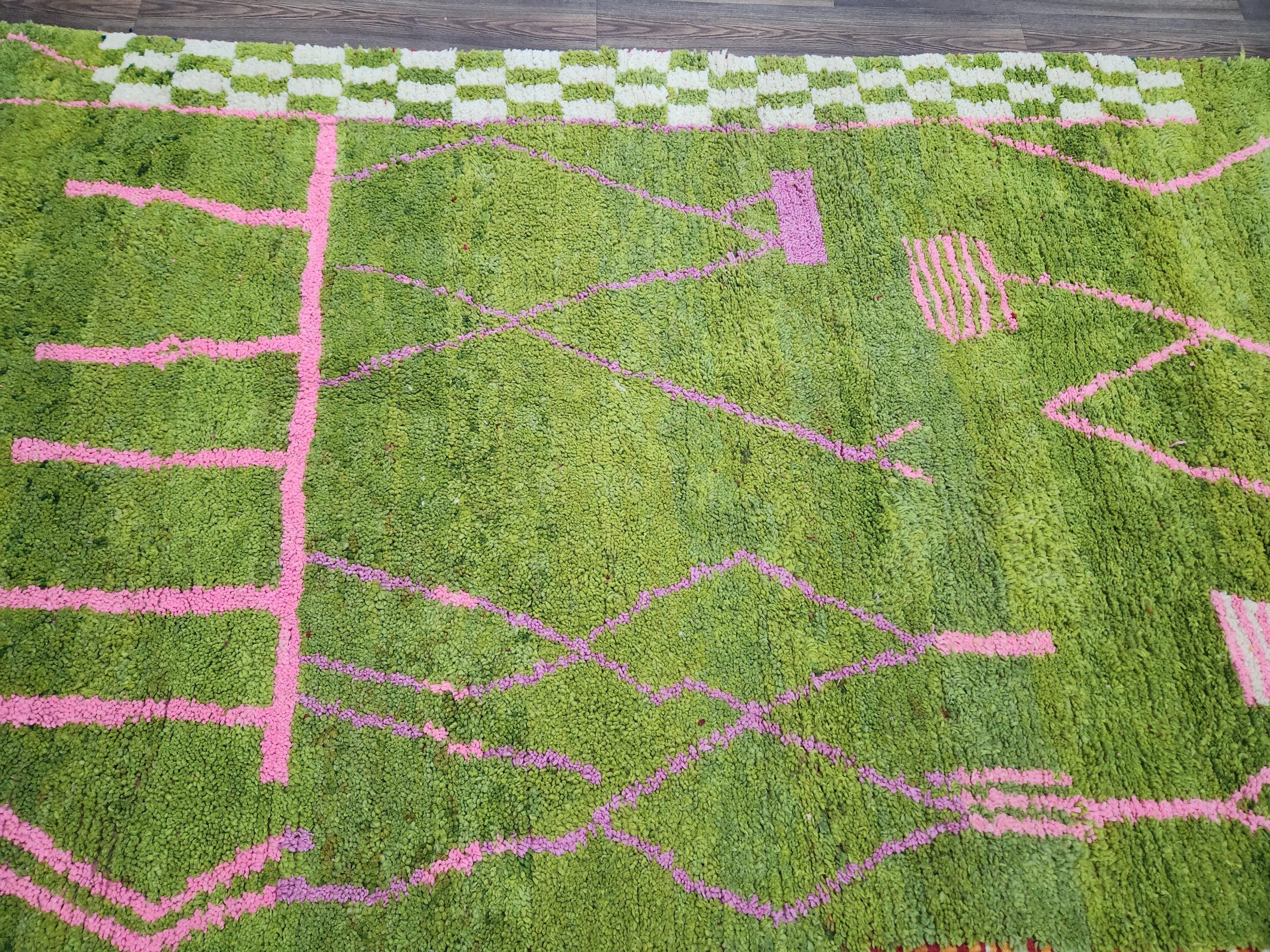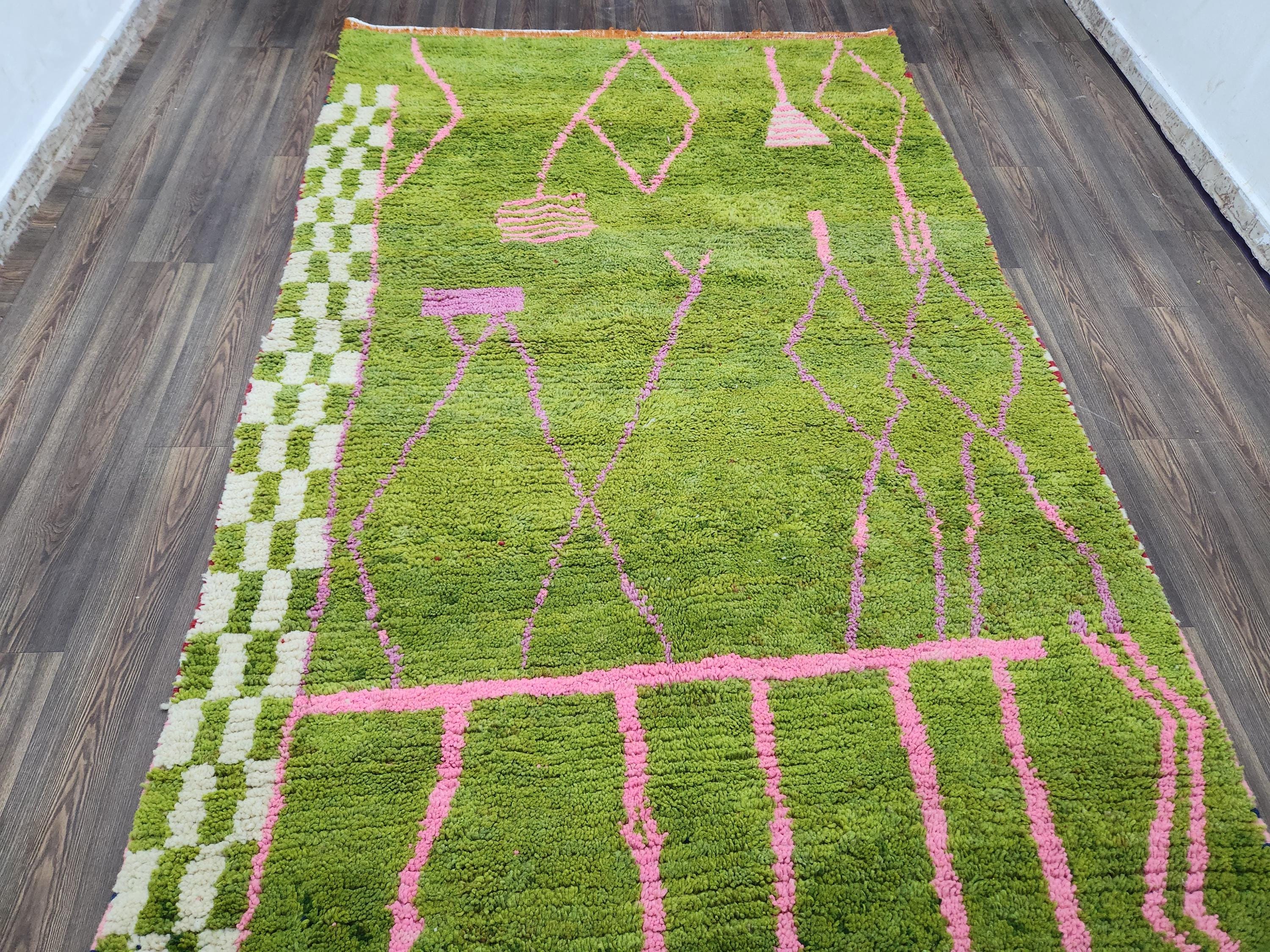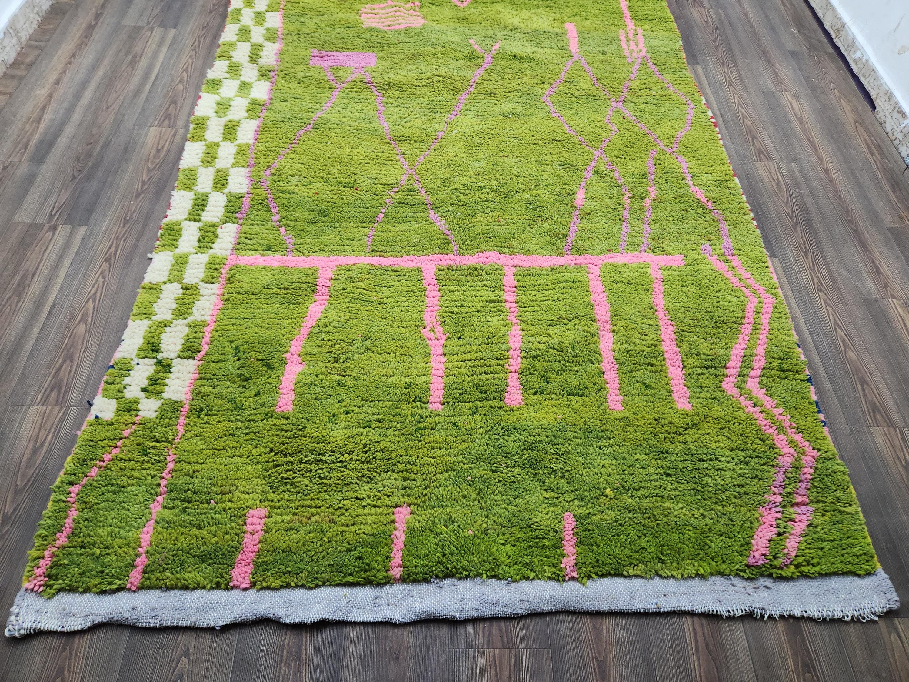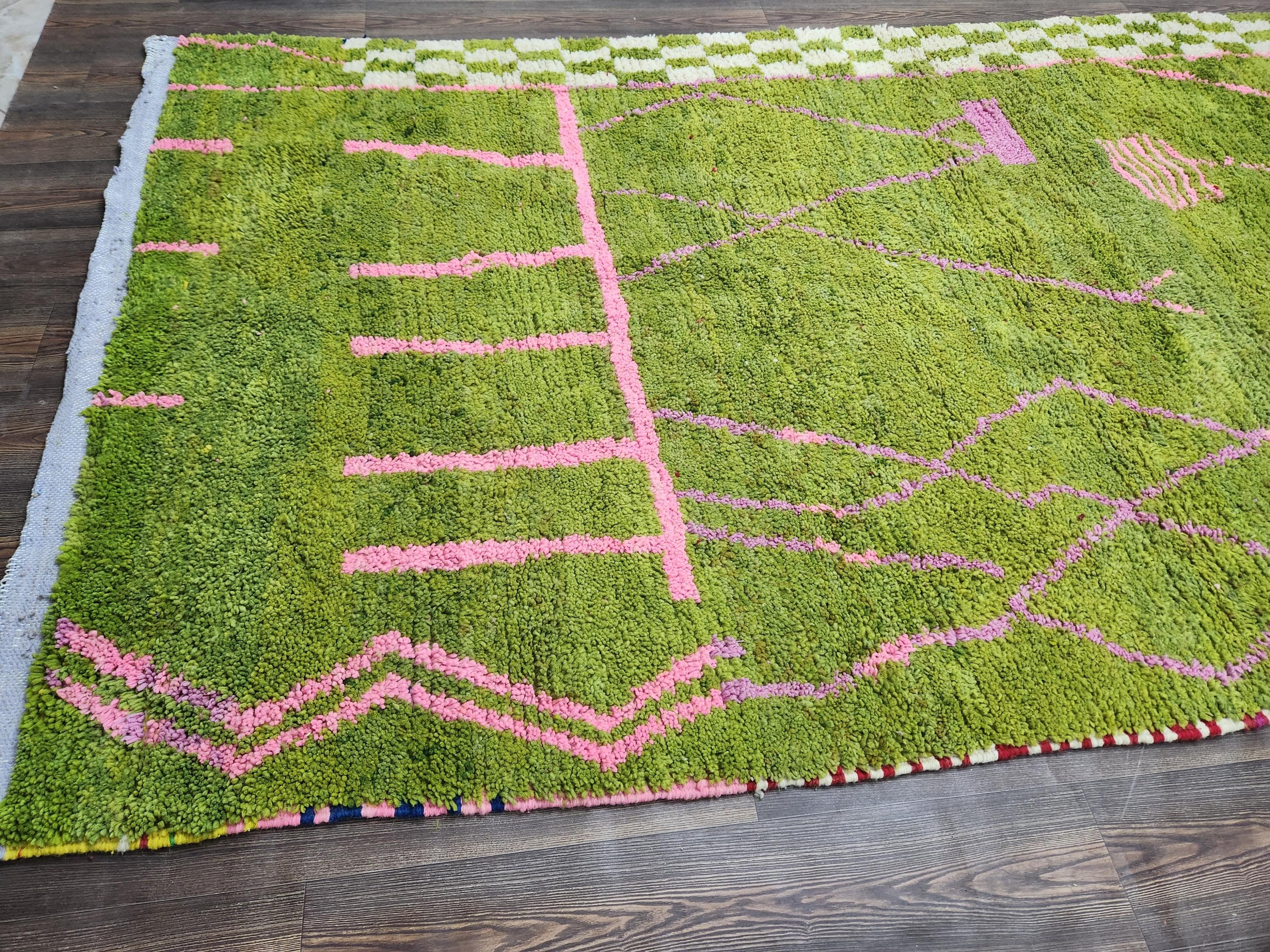 Bring a bold touch to your space with this handmade Moroccan Berber rug by rugaziz. Inspired by moss-style area rugs and crafted from sustainable wool, each piece is a unique irregular rug that stands out in any room.