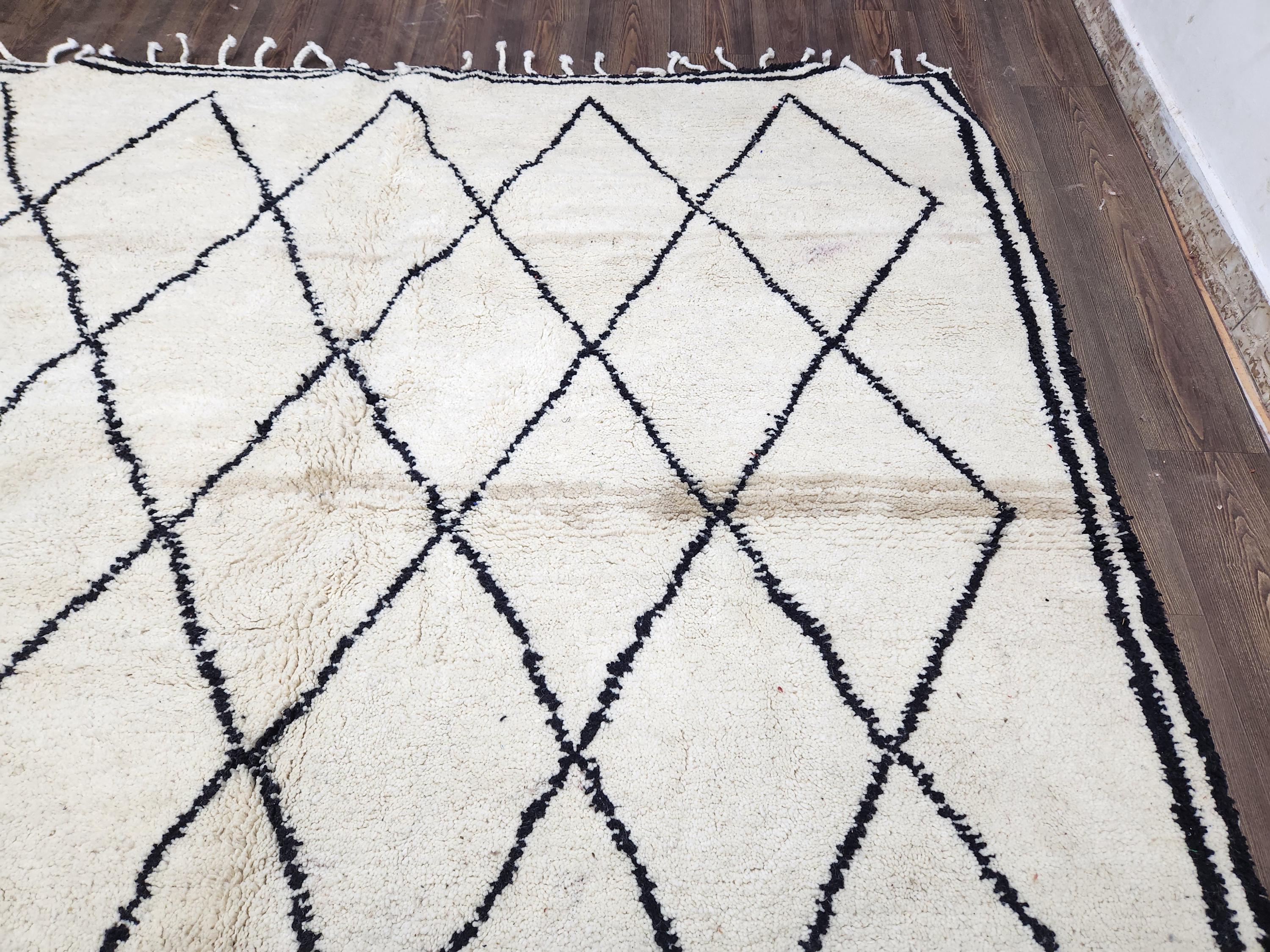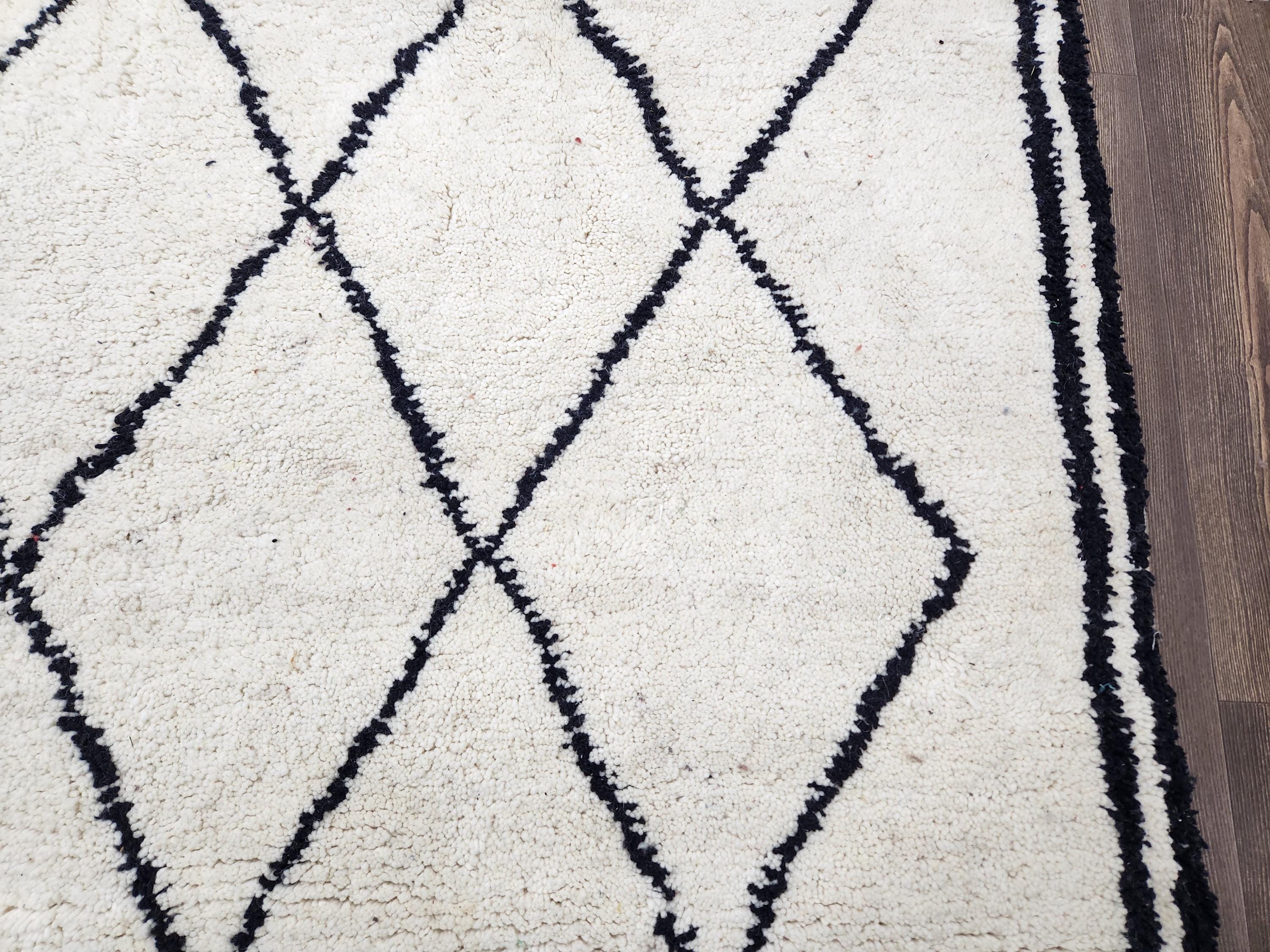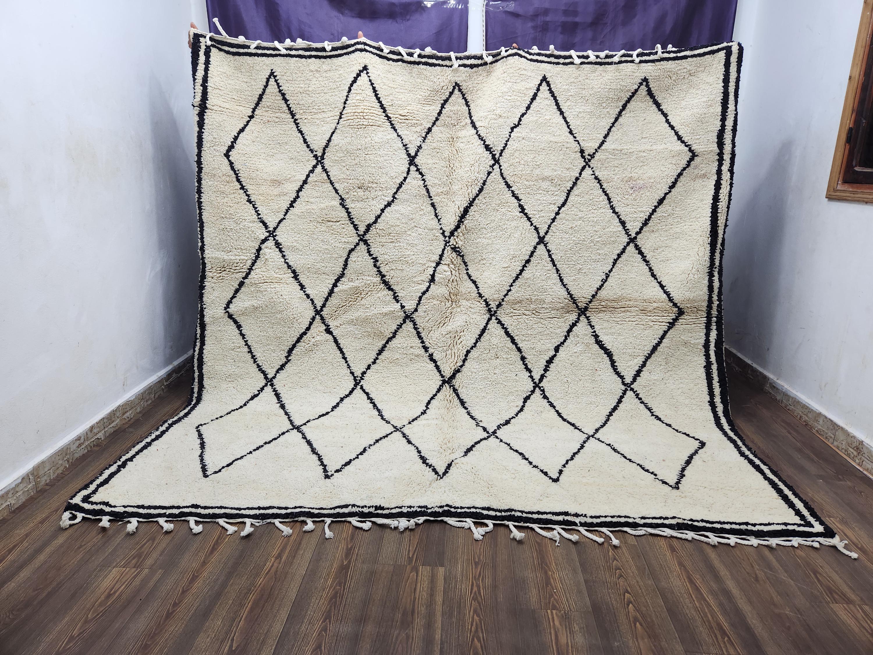 - ✅ Handwoven from premium sheep wool using authentic Moroccan techniques - ✅ Measures approximately 7x9 feet, with custom size options available - ✅ Durable hand tufted wool suitable for high-traffic indoor areas - ✅ Natural dyes create unique black and cream patterns with subtle variations
