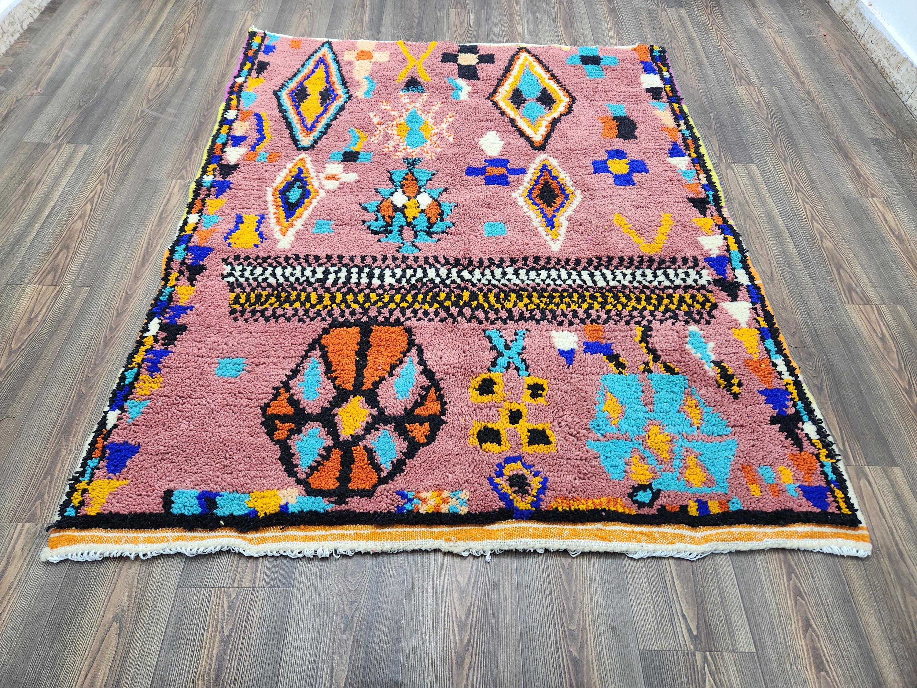 Immerse yourself in the timeless beauty of our handwoven Moroccan rug, a perfect blend of tradition and artistry. Crafted with natural wool, this Moroccan area rug brings warmth and character to any space, inspired by the rich heritage of Berber style carpets. Each piece is an artisan-crafted treasure, designed to add a cozy, colorful accent to your home.