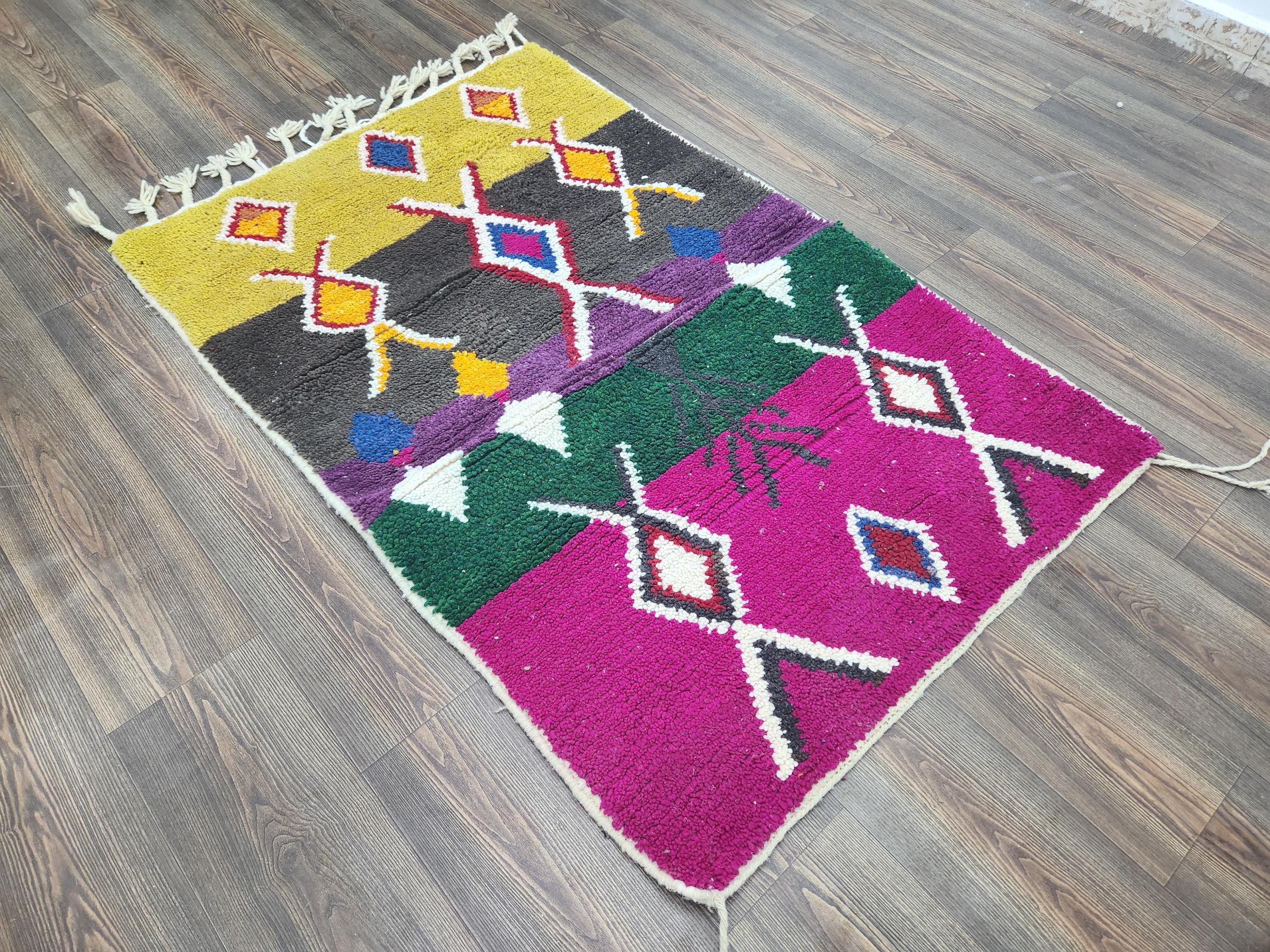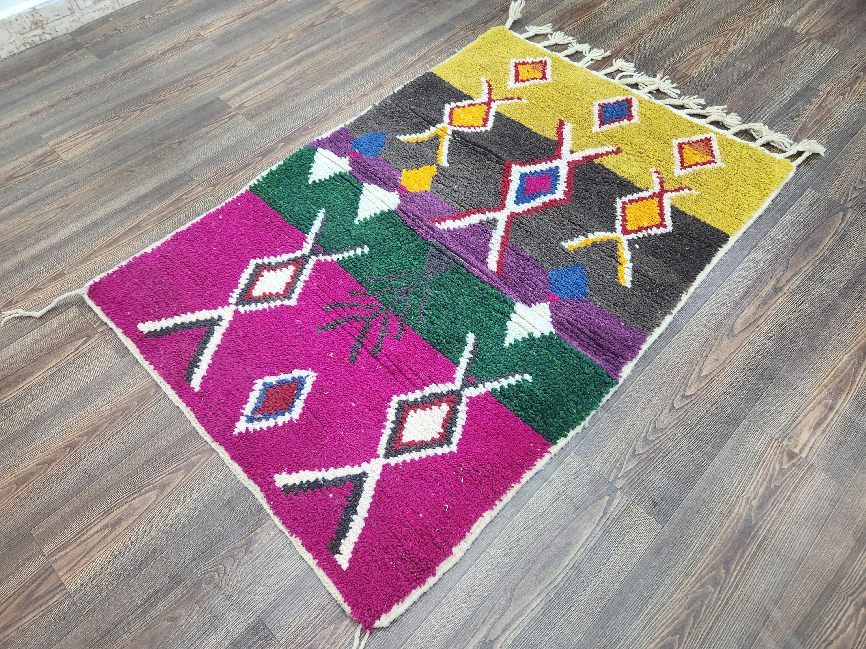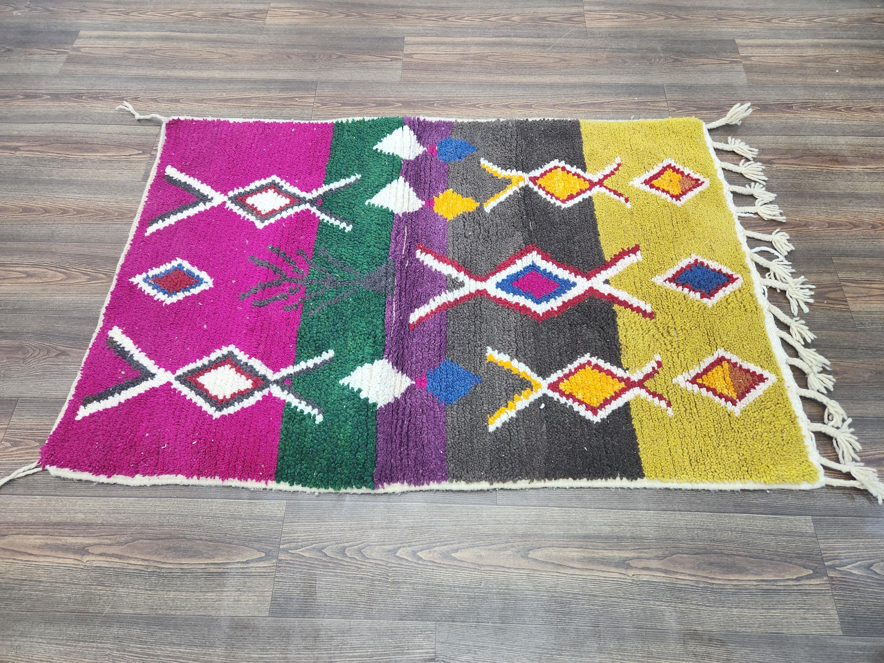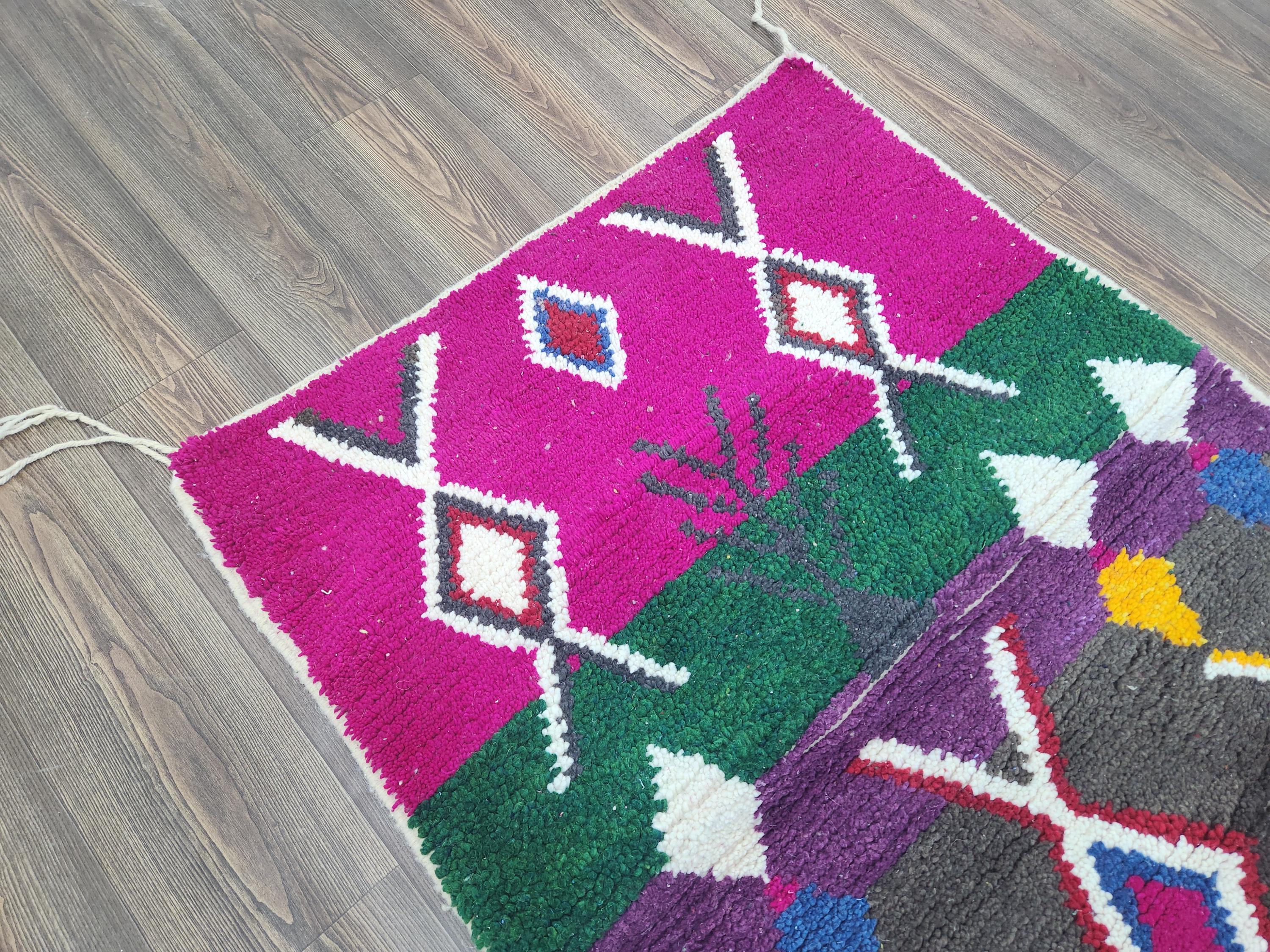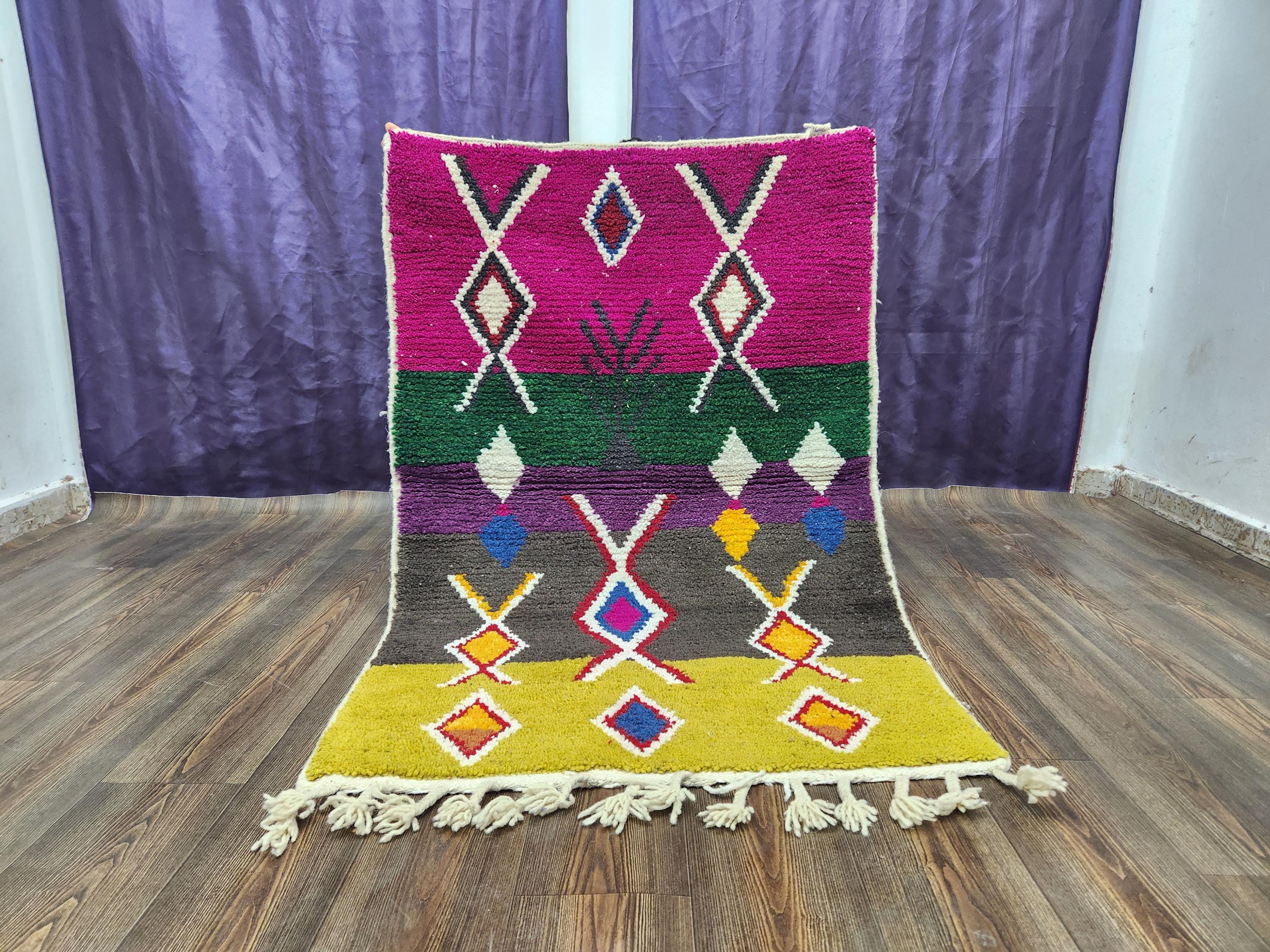 - Handwoven from 100% natural wool for durability and softness - Features a harmonious blend of green and rose tones enhancing bohemian charm - Cozy texture perfect for living rooms, bedrooms, or reading nooks - Dimensions designed to fit various spaces while adding warmth and style