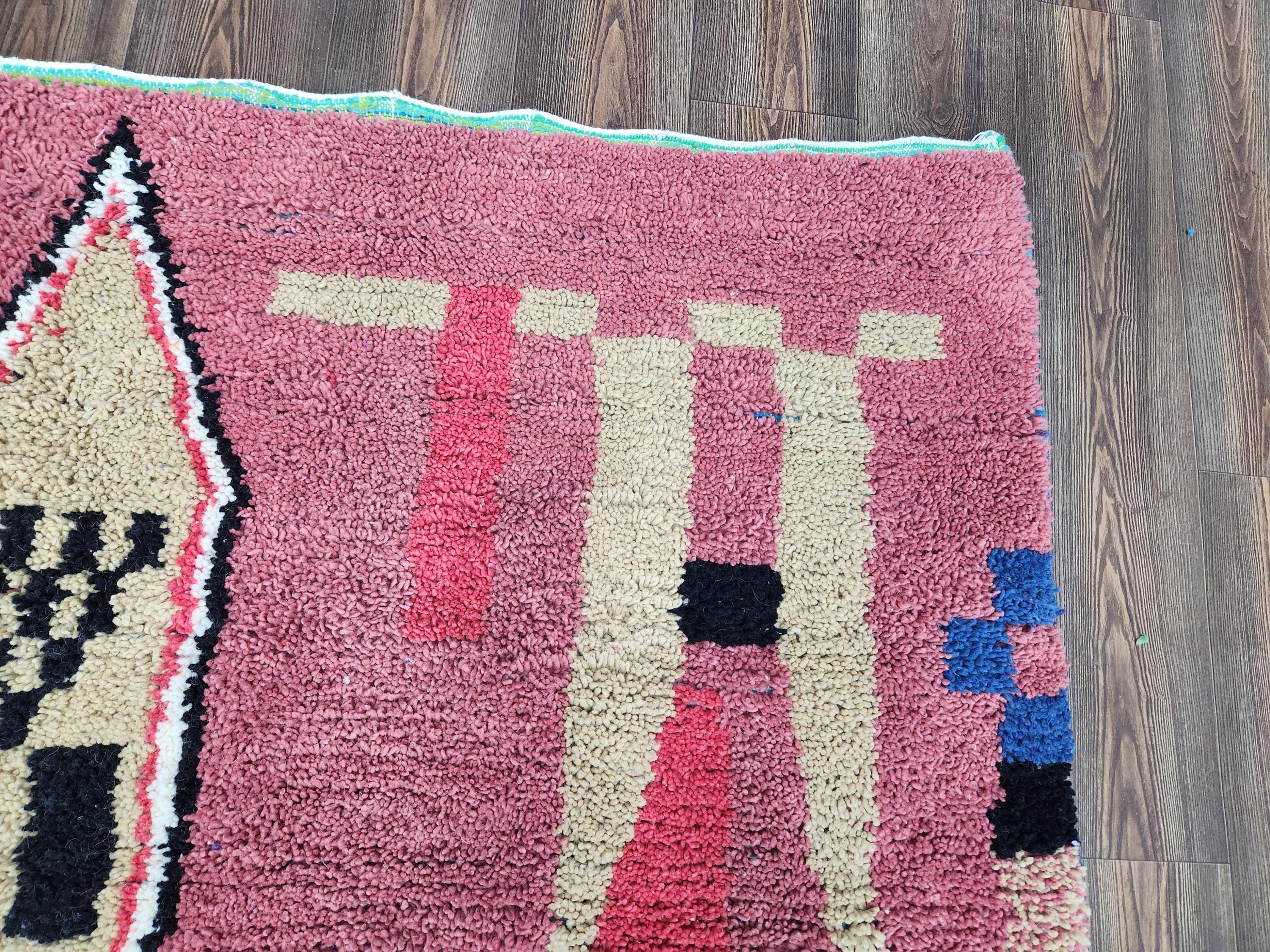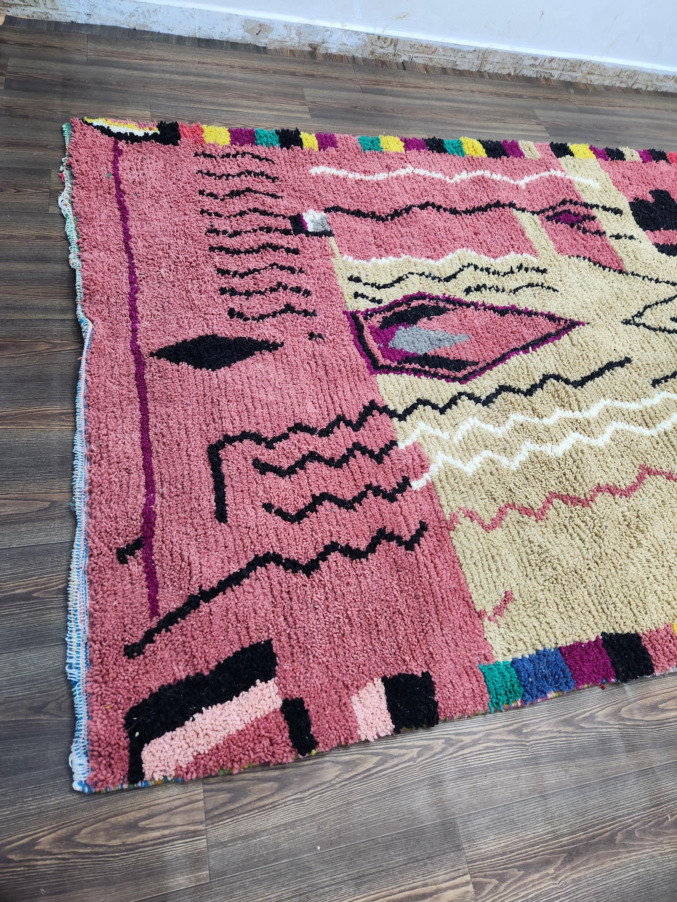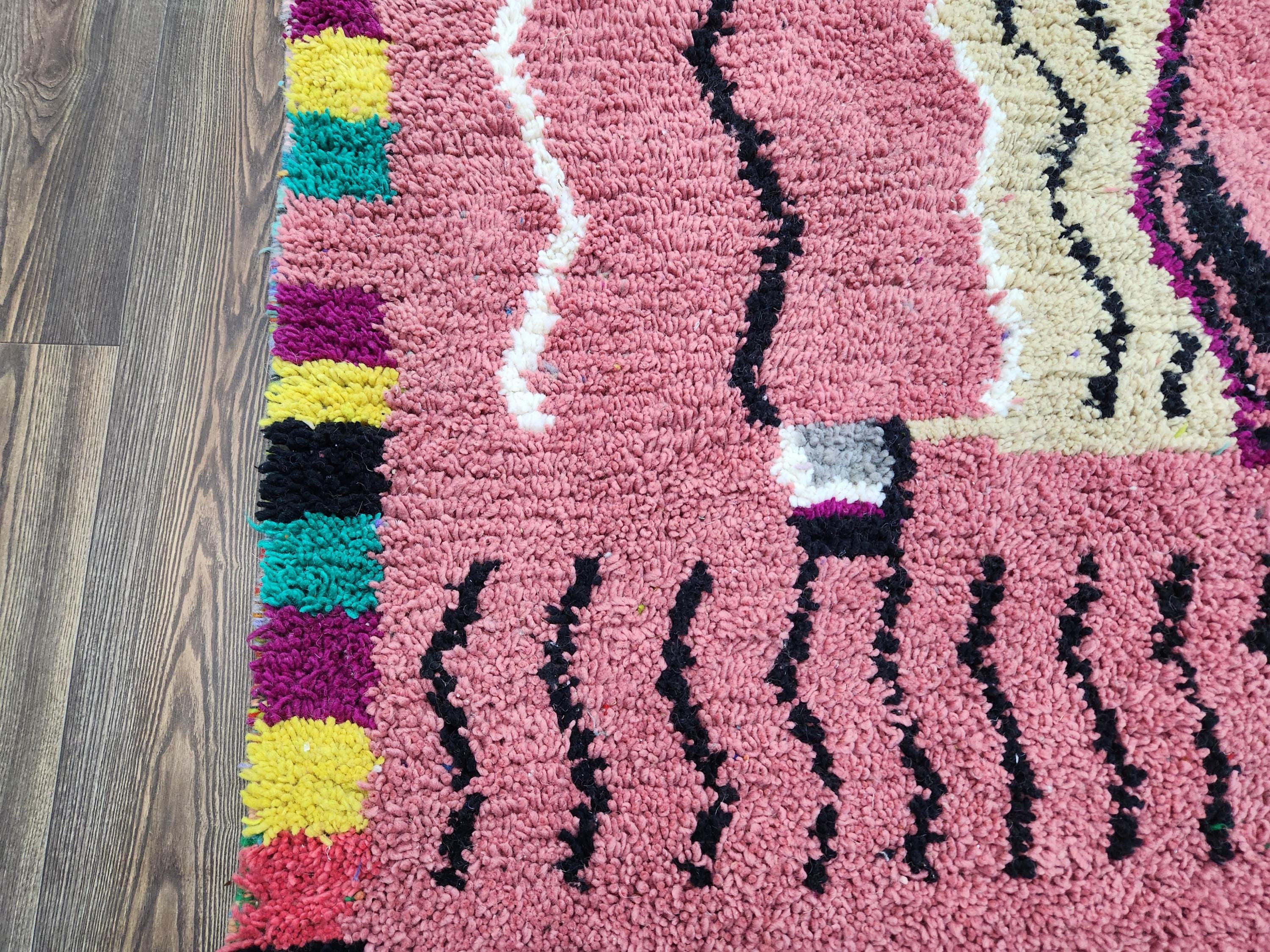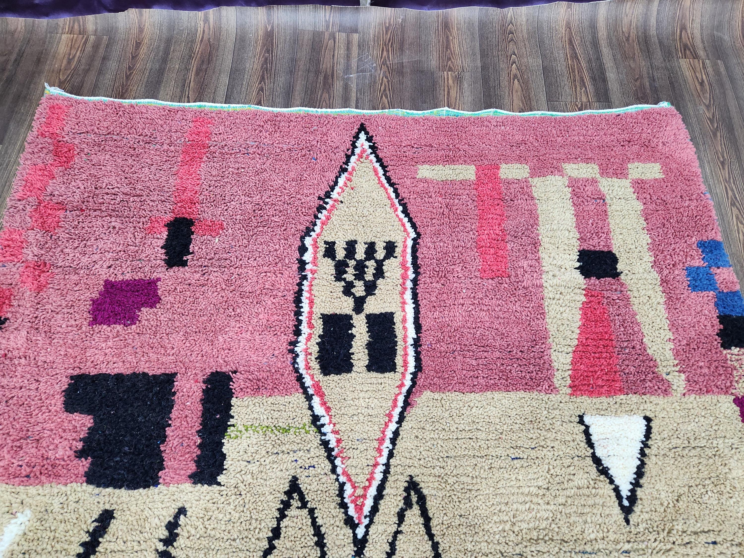 Moroccan Berber Rug: Handwoven Wool pink Geometric Pattern