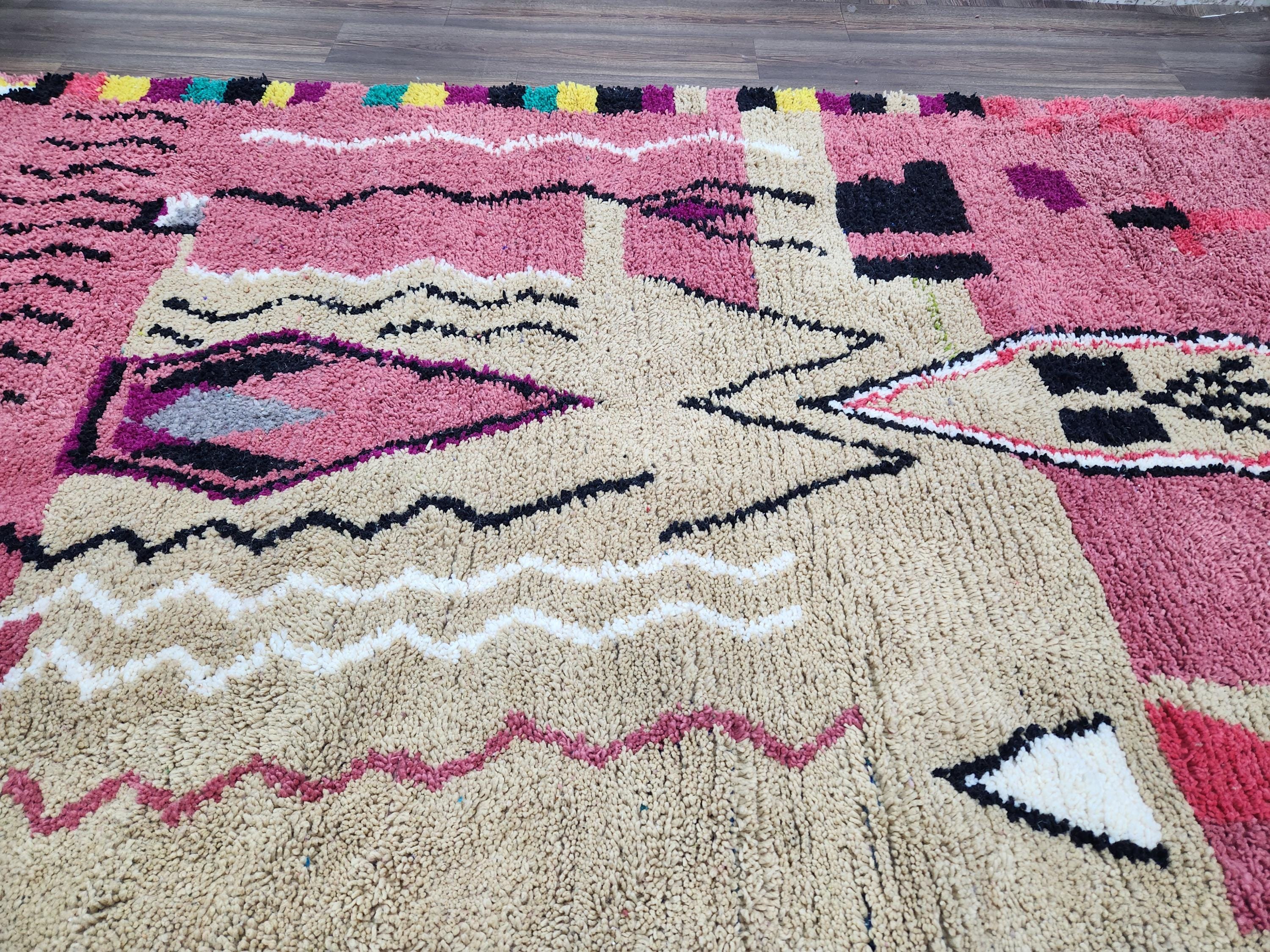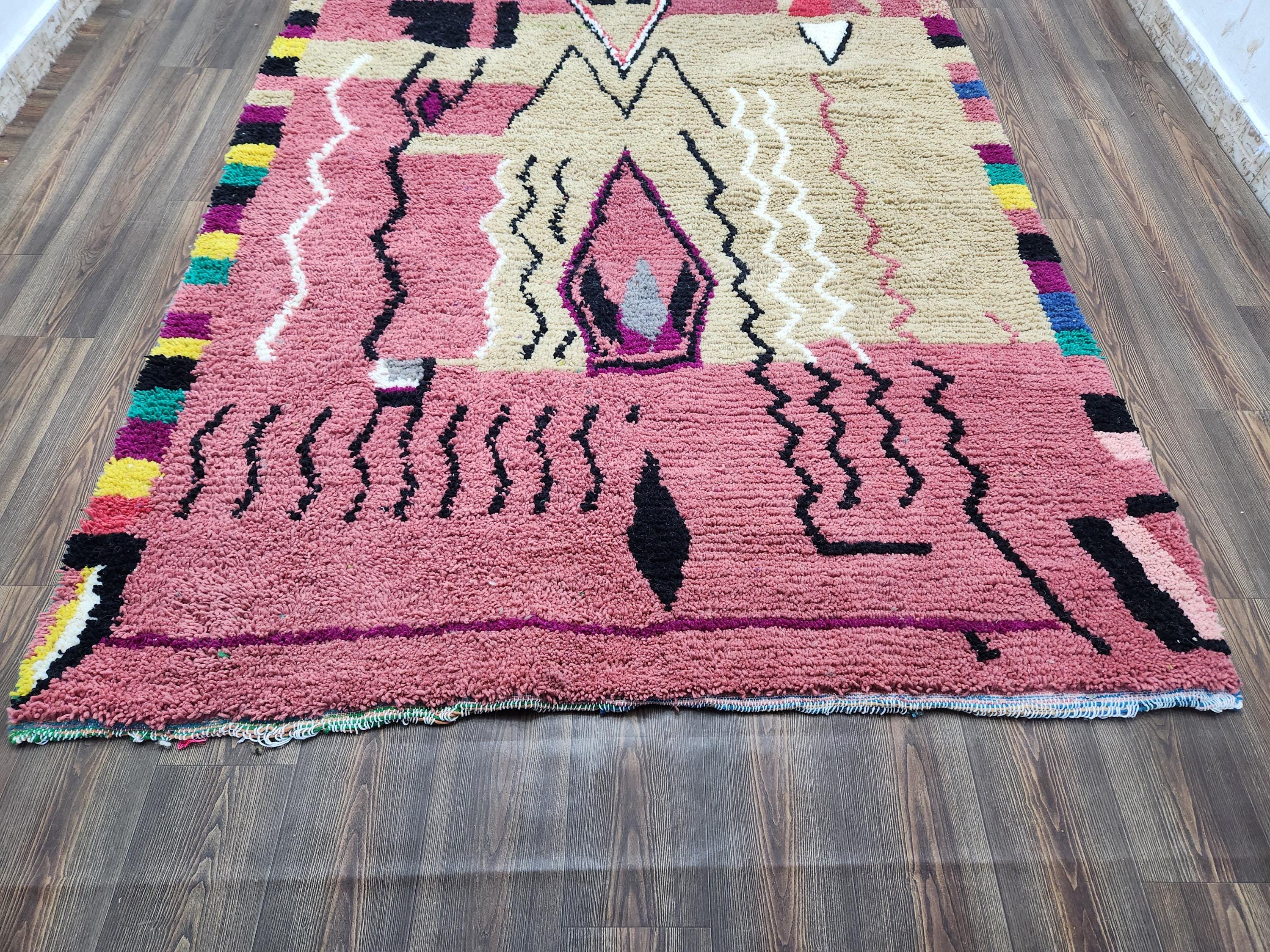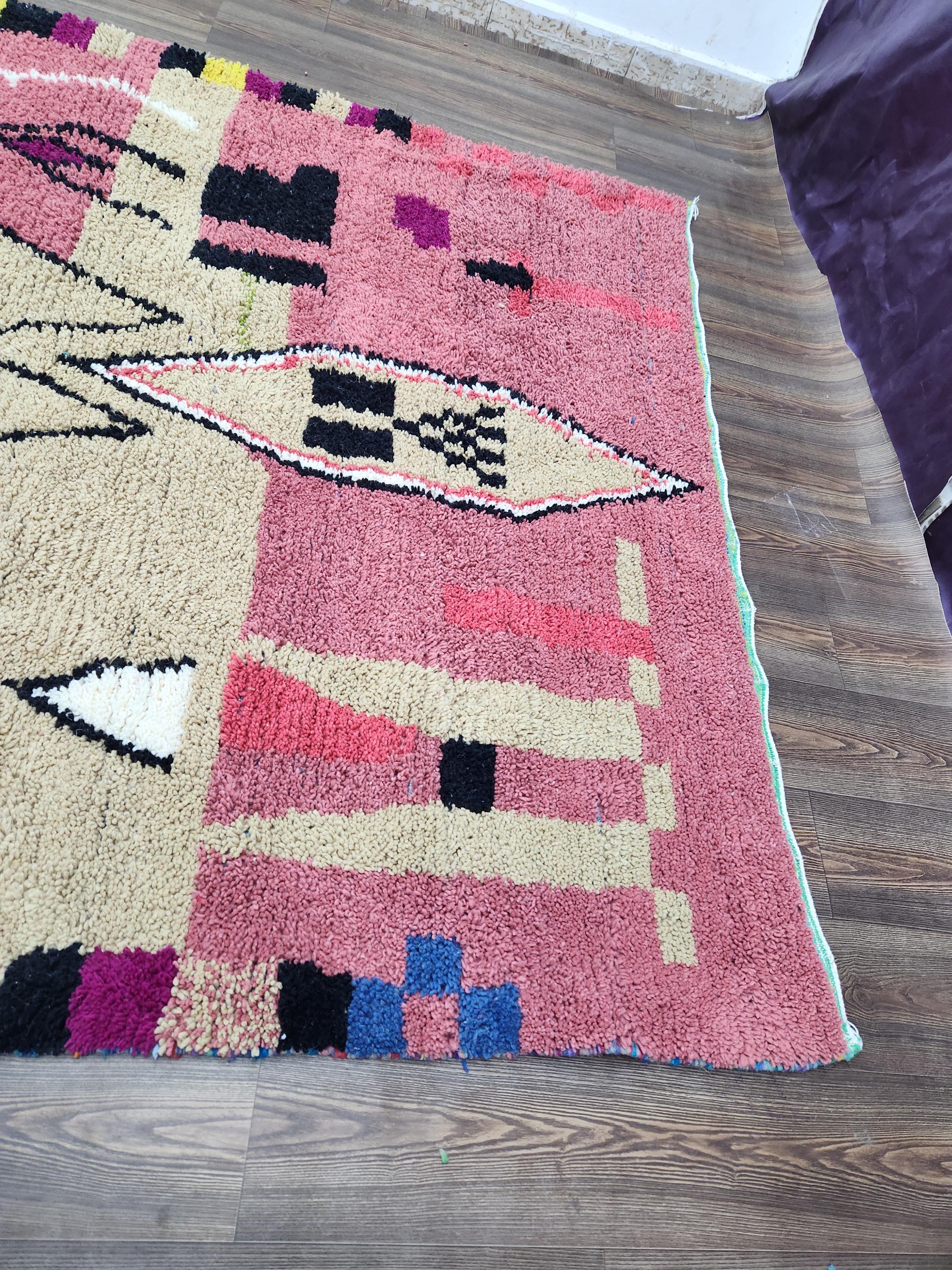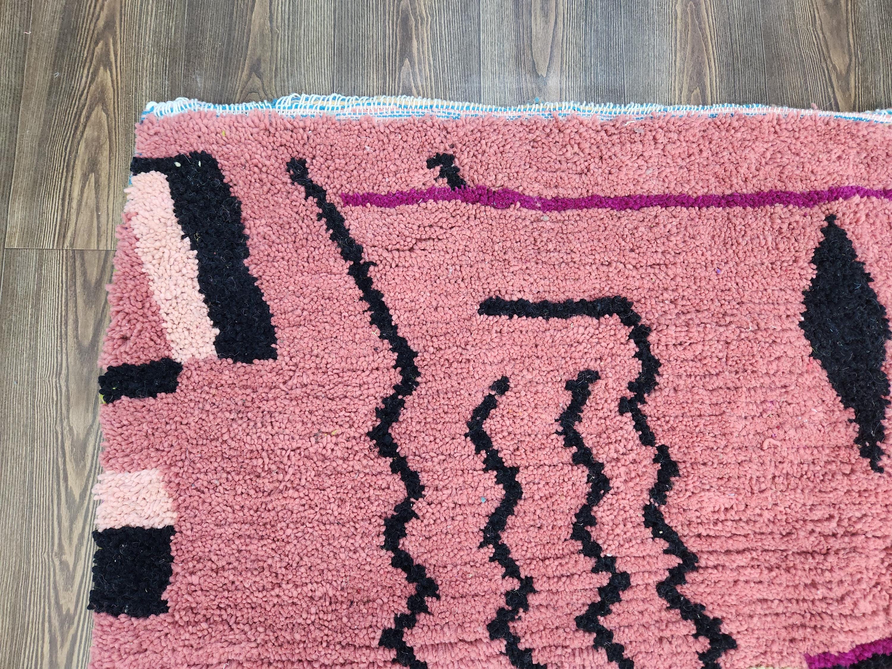 Moroccan Berber Rug: Handwoven Wool pink Geometric Pattern