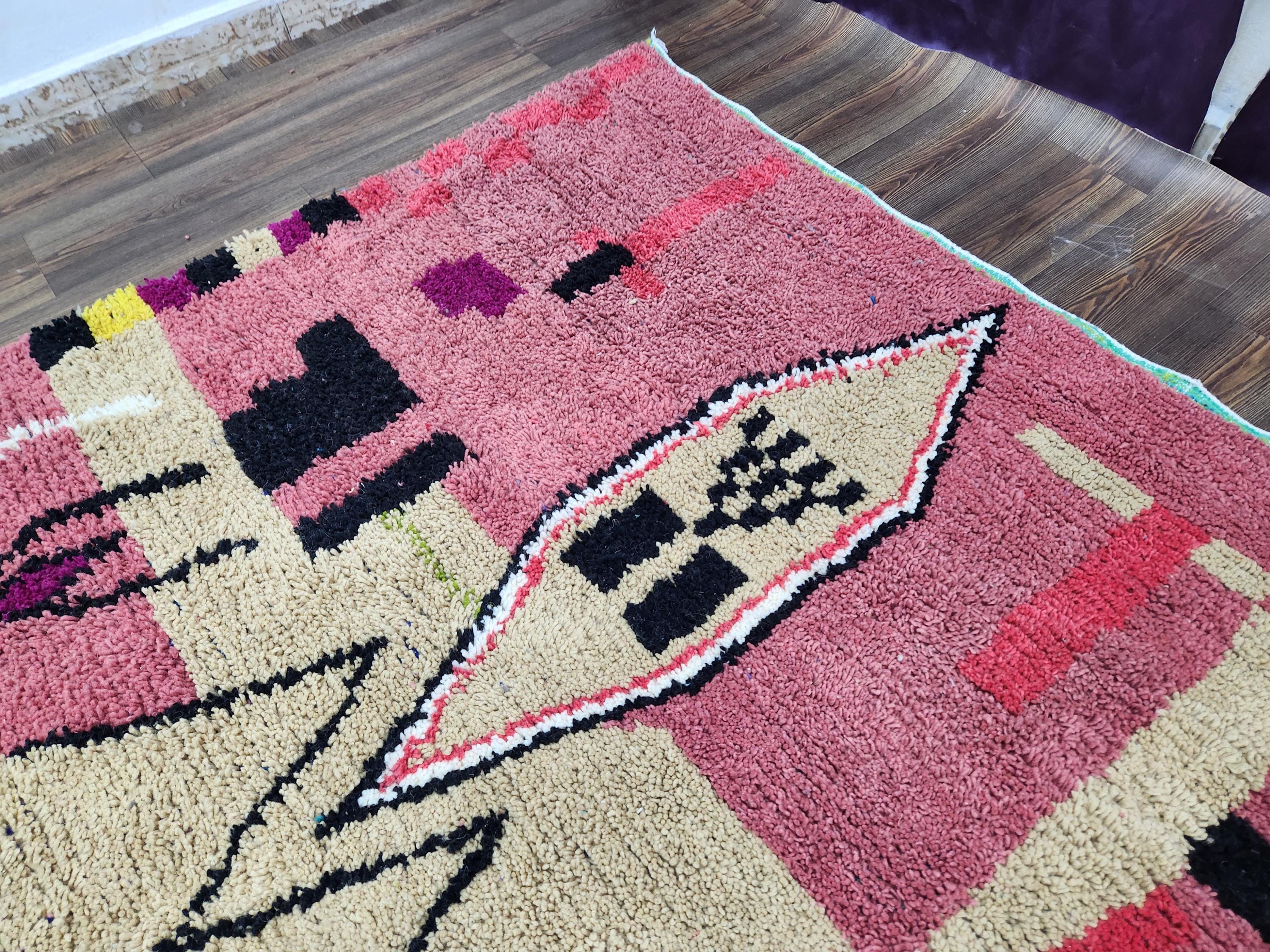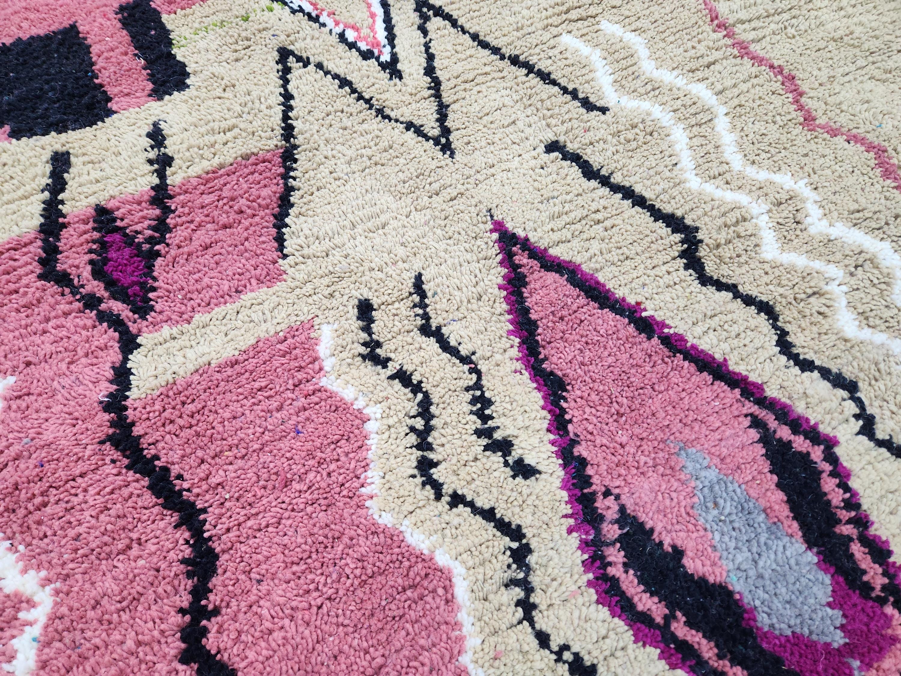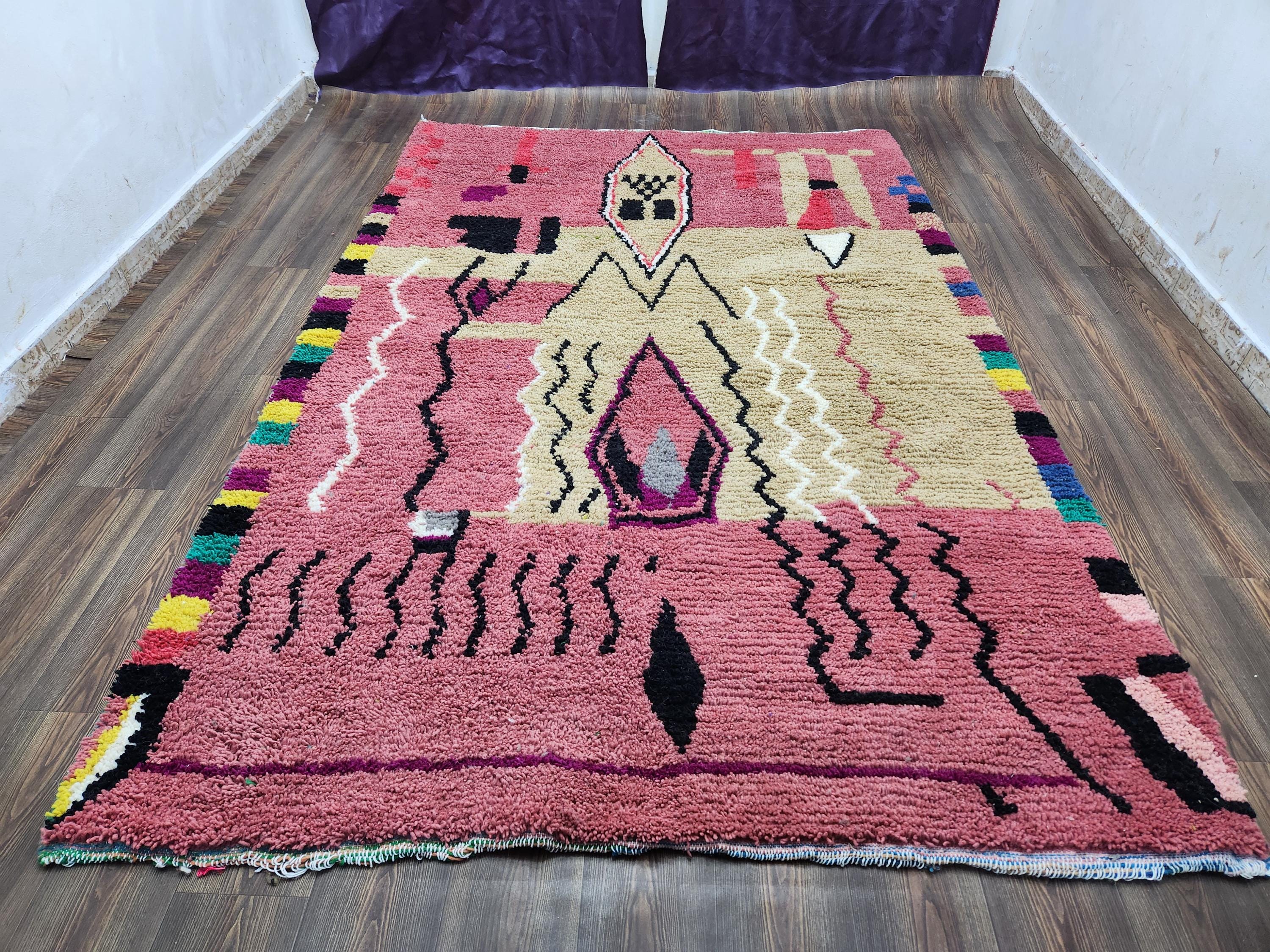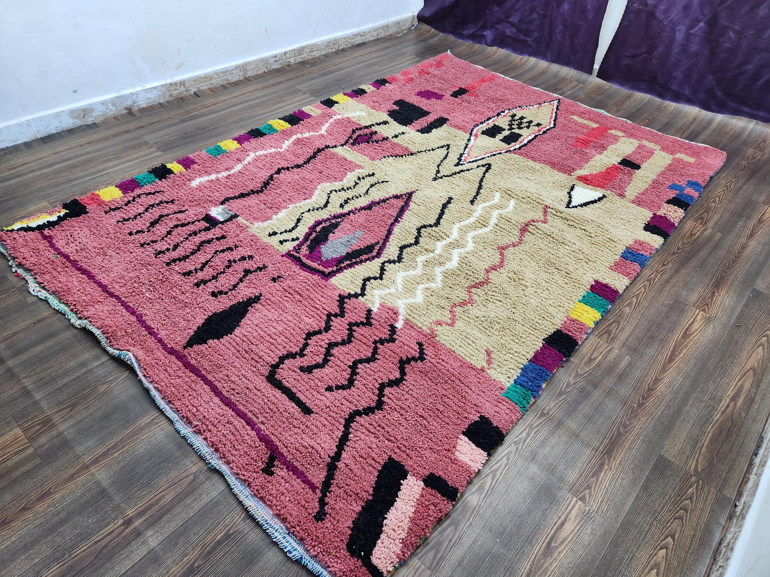 Moroccan Berber Rug: Handwoven Wool pink Geometric Pattern
