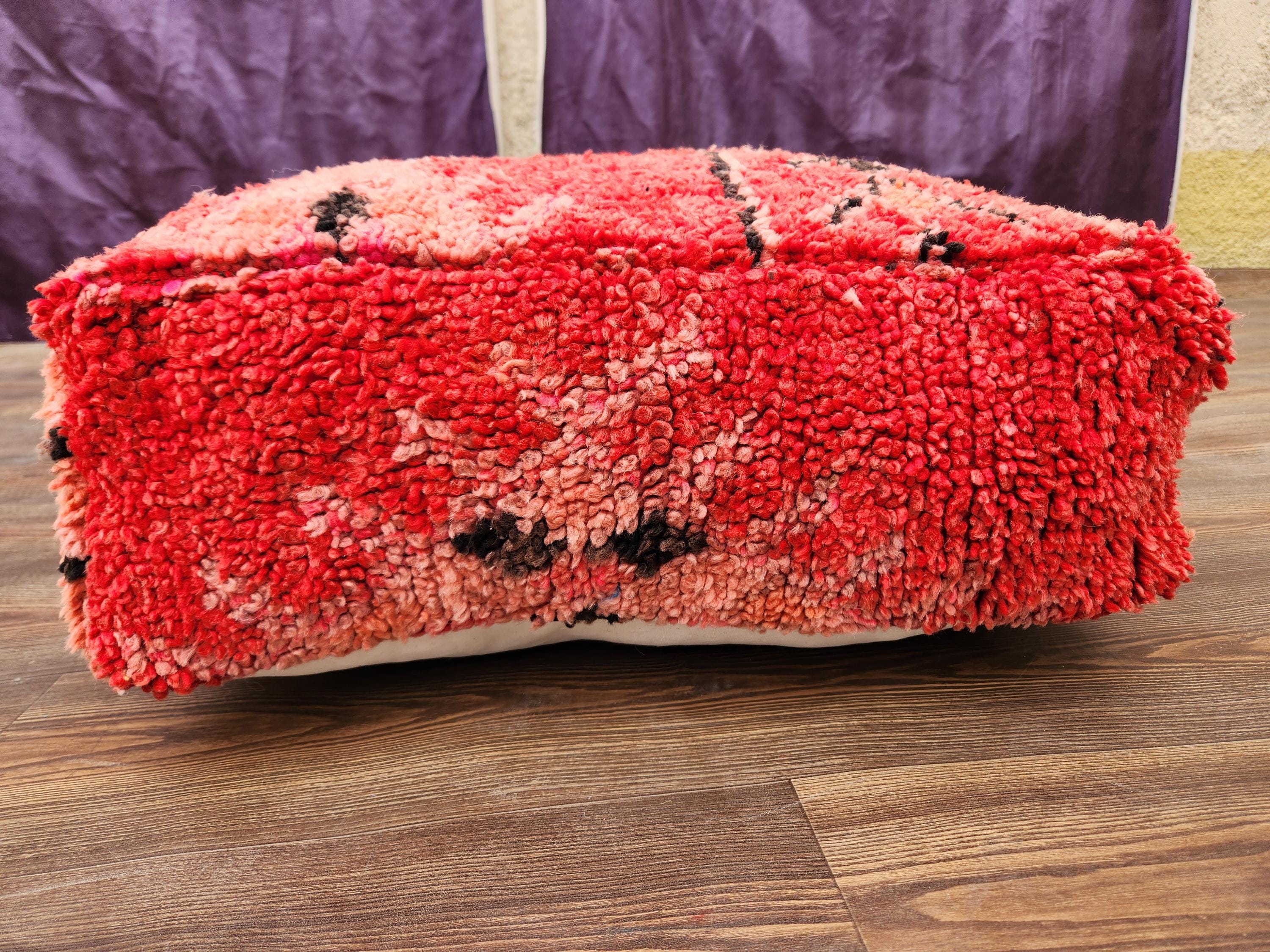Elevate your home decor with our stunning red mocaccan pouf rug, meticulously handmade for a unique touch. This vibrant piece adds warmth and character to any room, making it the perfect accent for your living space. Whether used as a cozy seating option or a playful statement piece, its plush design and rich color will enhance your interior style. Each pouf rug is crafted with love, ensuring quality and a one-of-a-kind charm. Transform your home with this exquisite addition!