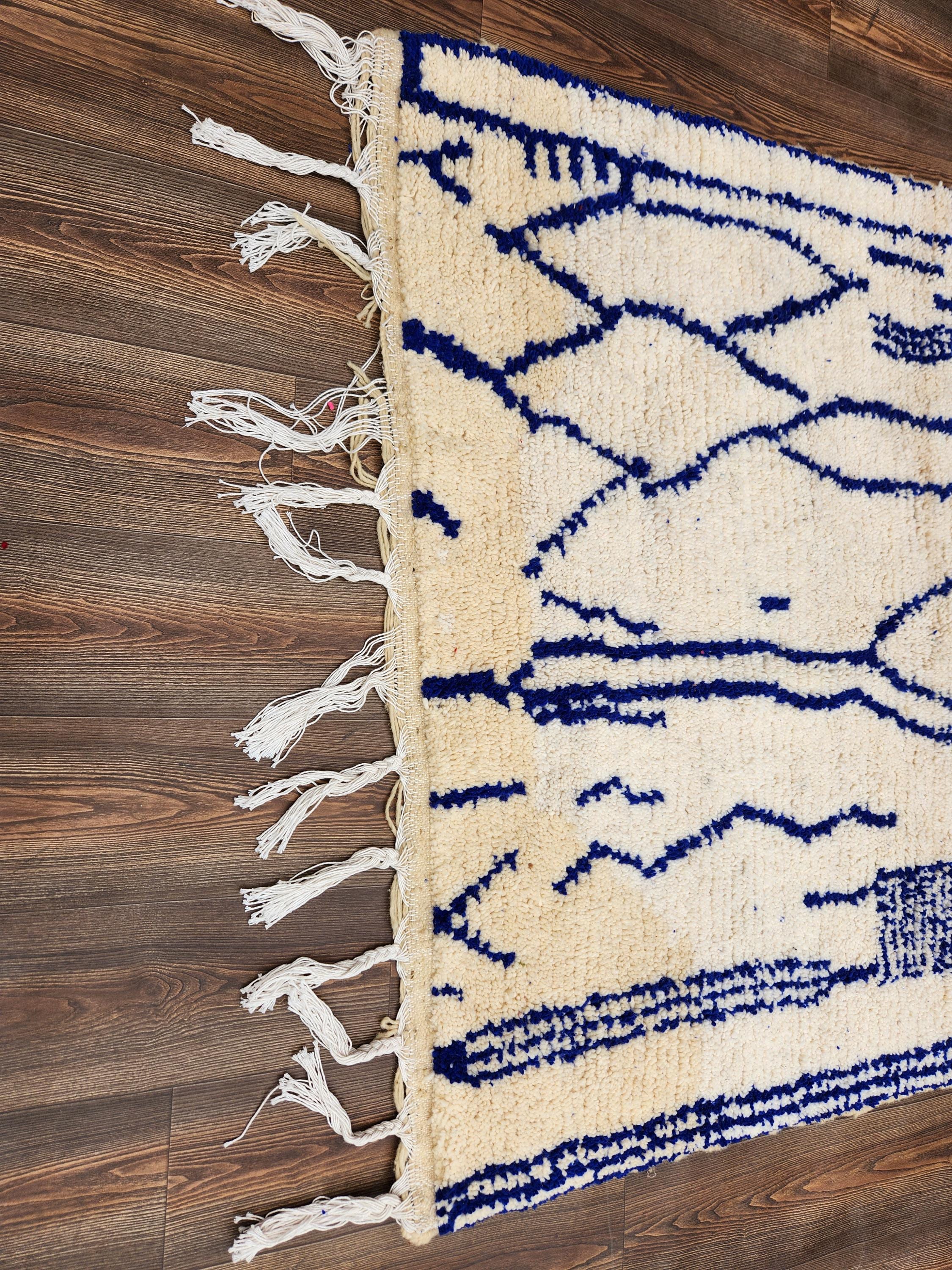 Discover the beauty of our Handwoven Moroccan Rug in Blue & white – a stunning blend of tradition and modern style. This exquisite piece reflects timeless artisan elegance, adding a bold touch to any space. Crafted with care, it infuses warmth and character into your home decor. Perfect for living rooms, bedrooms, or entryways, this rug is more than just a floor covering; it’s a statement piece that celebrates Moroccan craftsmanship. Elevate your interiors with this unique, vibrant addition!